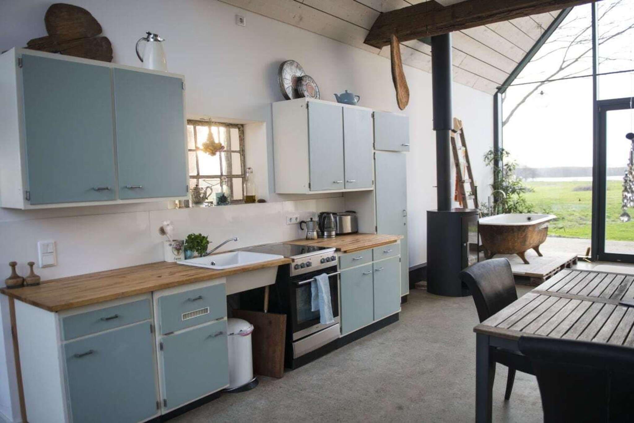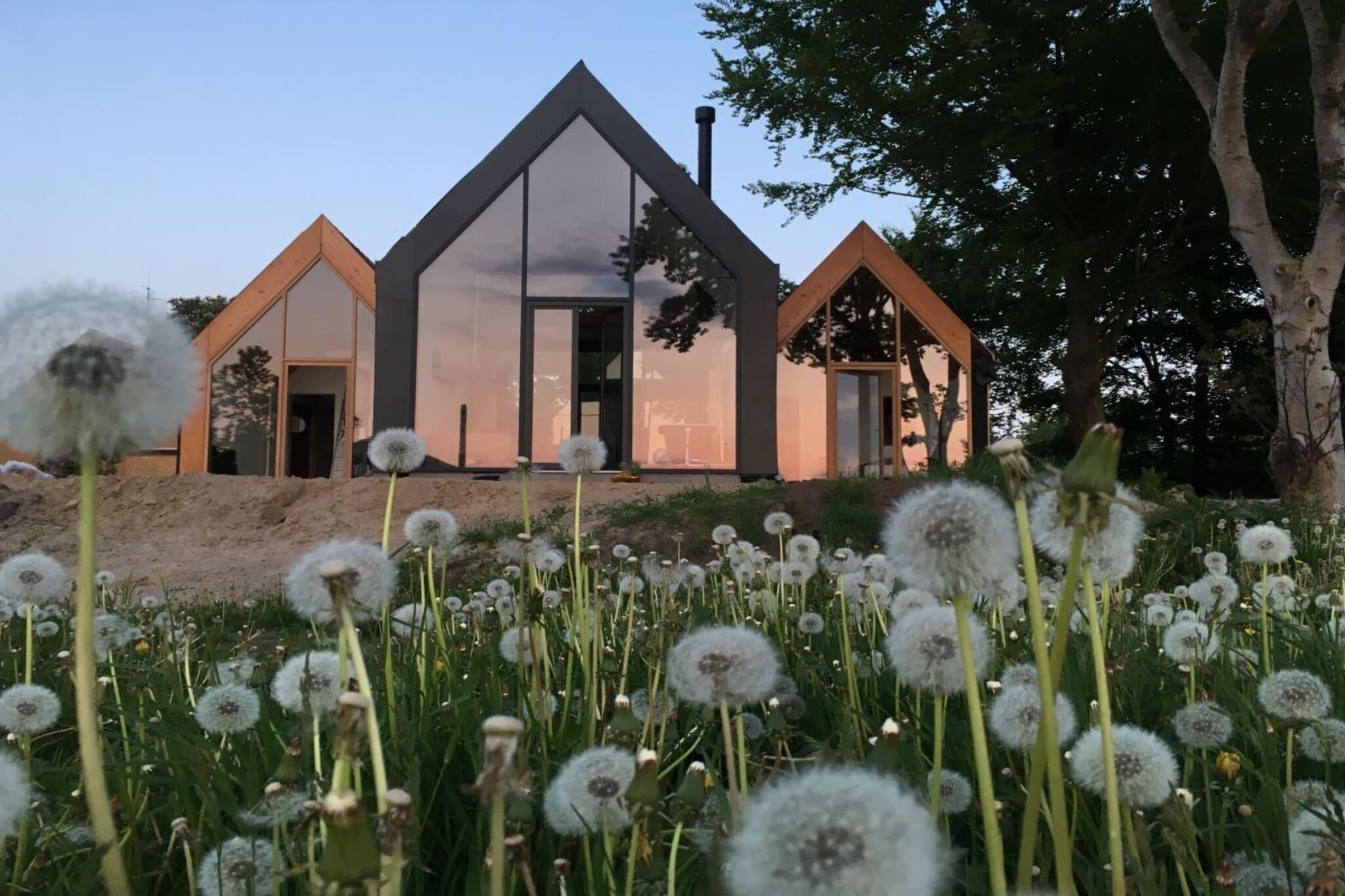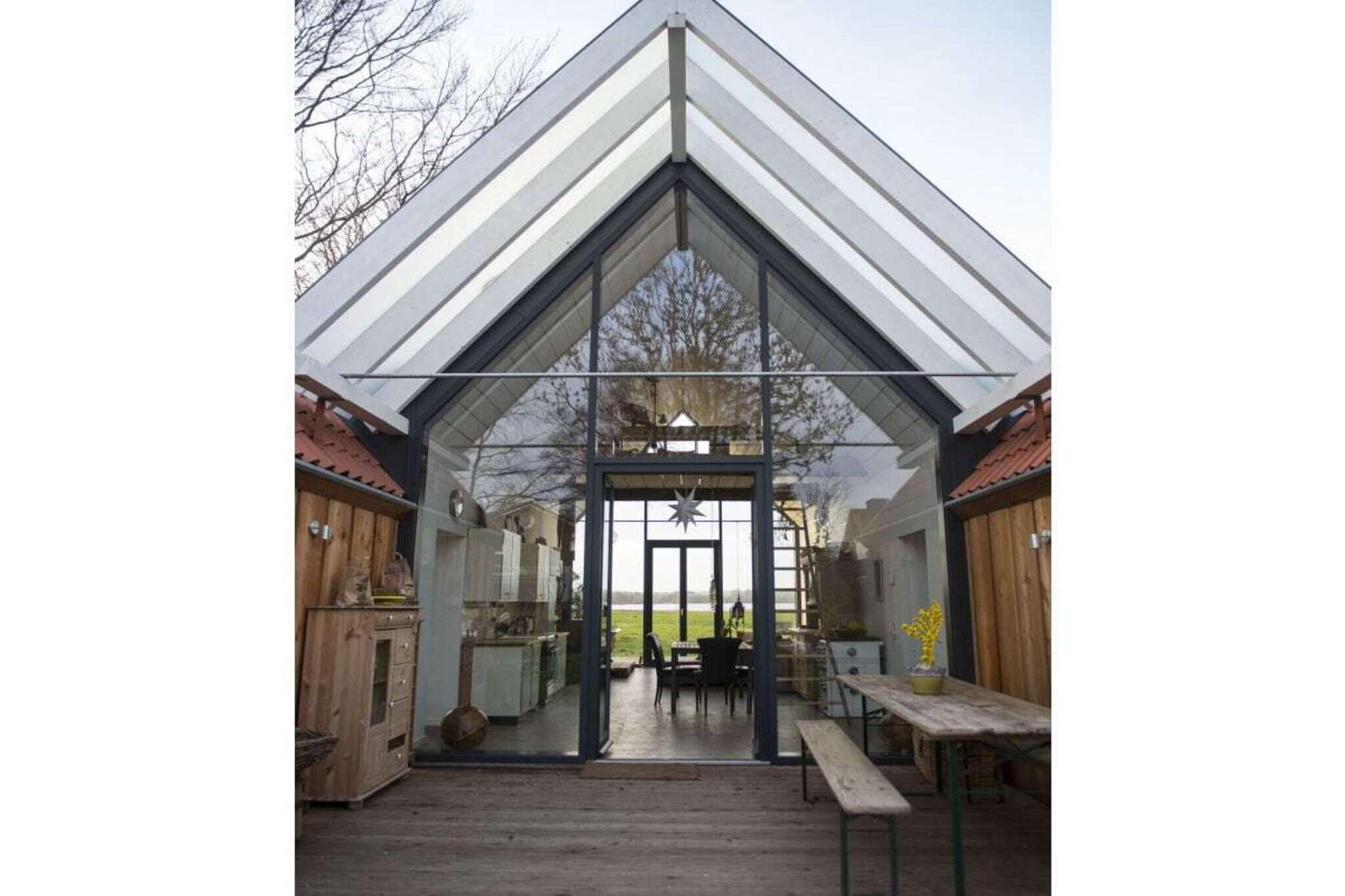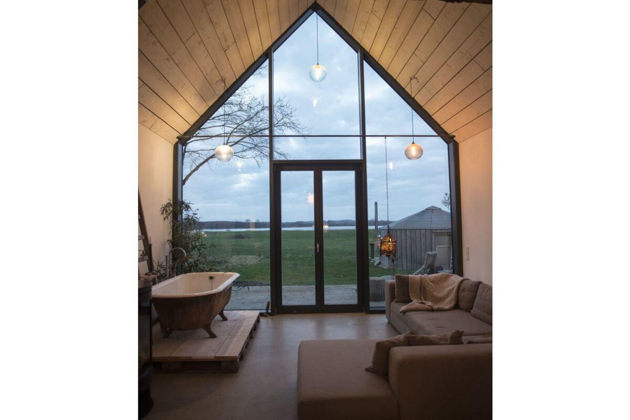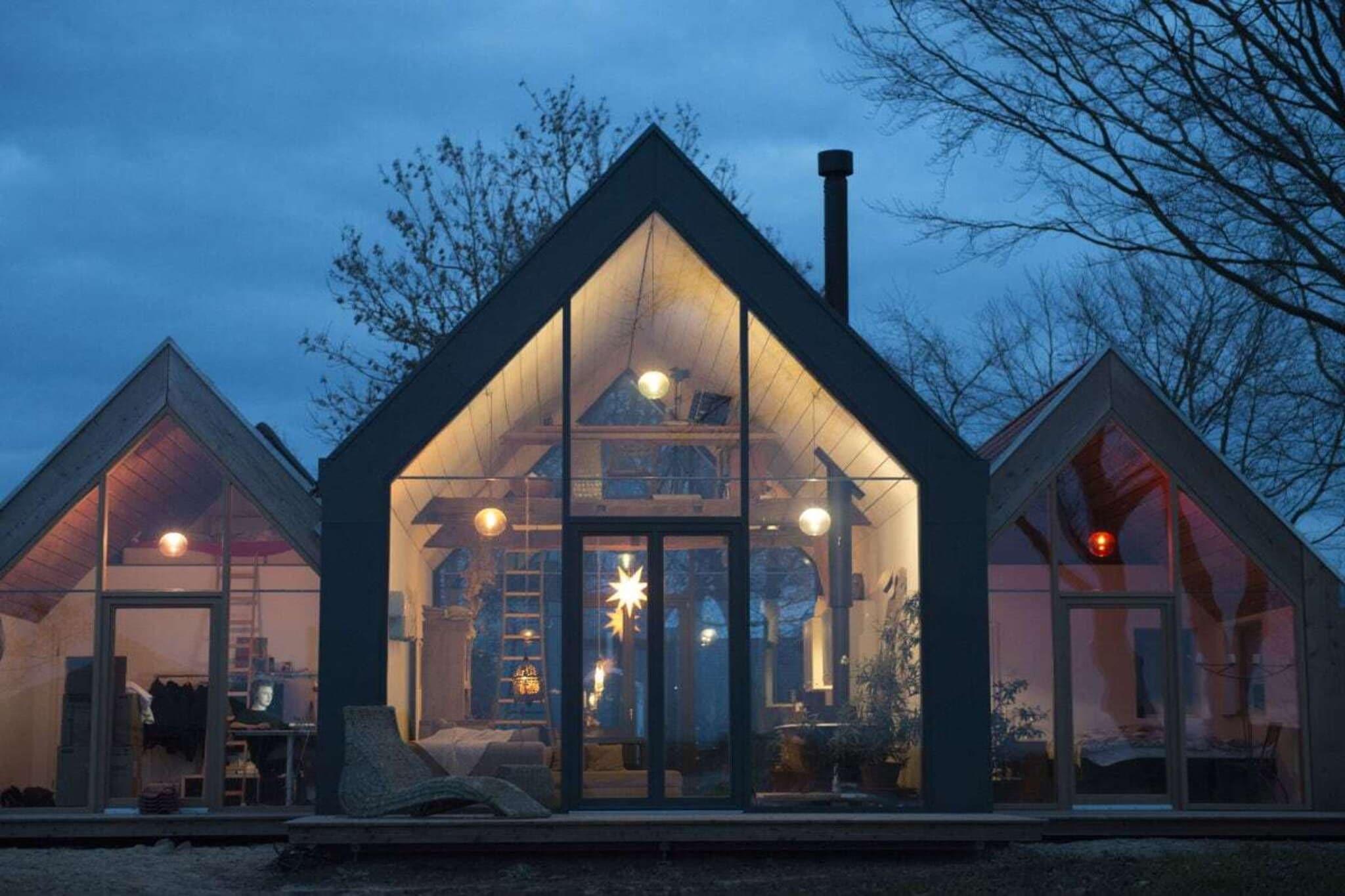 Vores arkitekttegnede lyshus er moderne, rummeligt og samtidig yderst hyggeligt. Det byder på 75 kvadratmeter plads til 2 personer + et lille barn. Det nye hus byder på al komfort med gulvvarme, opvaskemaskine, vaskemaskine og tørretumbler. 3 terrasser giver dig mulighed for at spise og bo udenfor. Huset ligger i udkanten af landsbyen, med udsigt over søen og naturlige enge. Det er næsten, som om du bor ude i naturen. Men du kan tænde pejsen eller se stormen over søen eller fasanen på terrassen fra din seng. Alle værelser er oversvømmet med lys og behageligt oplyst om aftenen. Der er et dejligt brusebad. Badekarret med udsigt over søen er i opholdsstuen. Den venstre, adskilte, lille del af huset er ikke udlejet