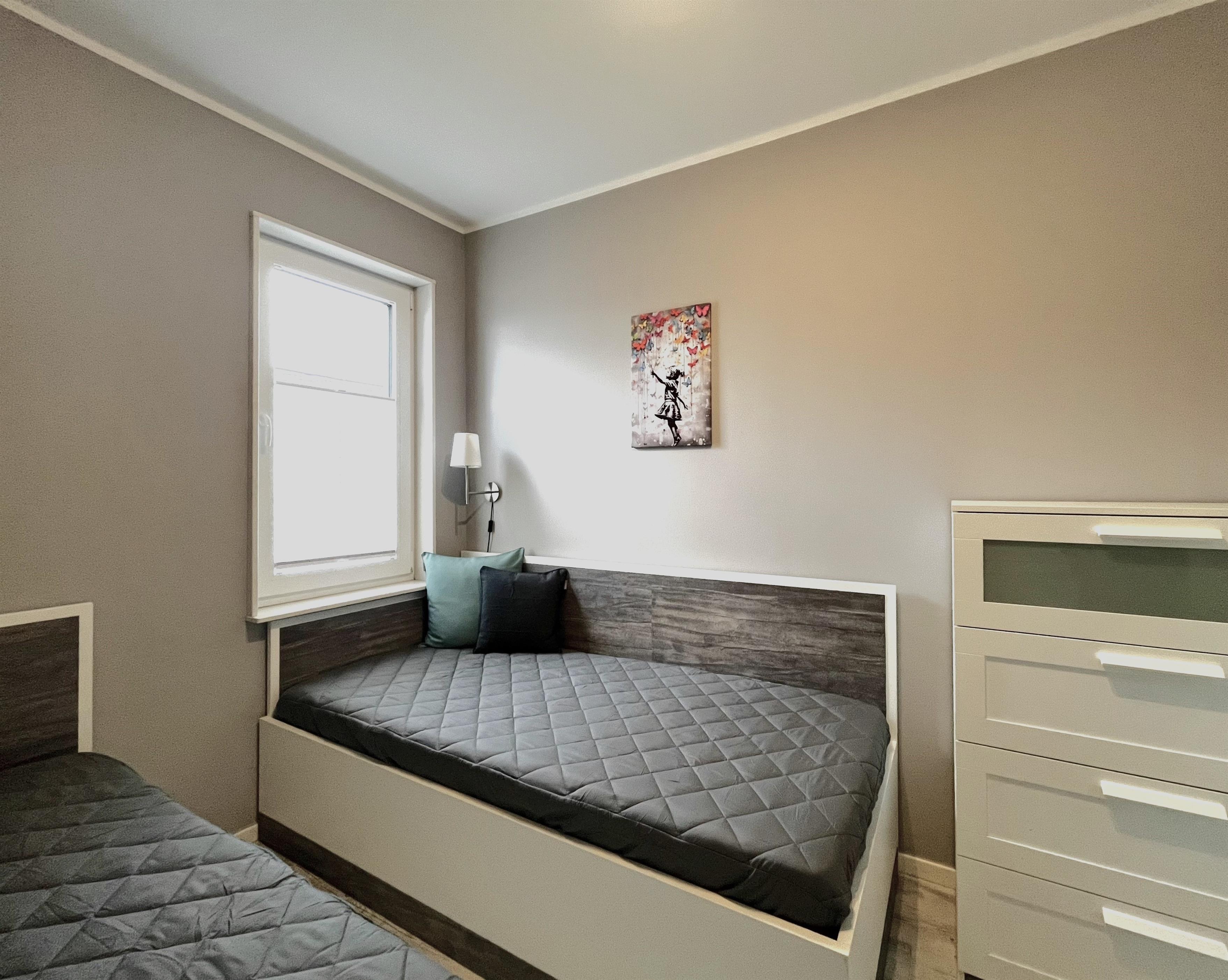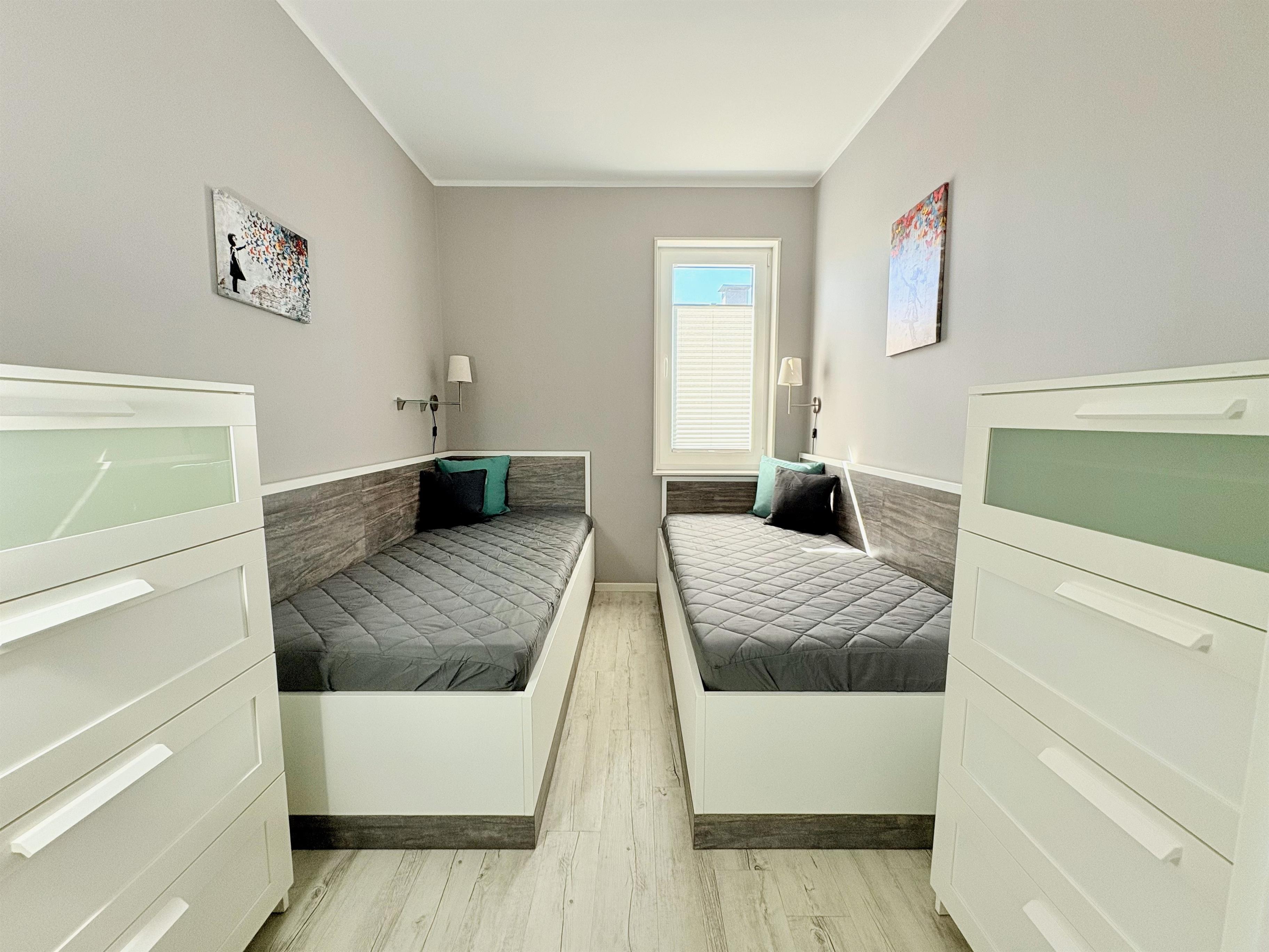 Auf Wunsch kann bei einer Buchung von 2 Personen das zweite Schlafzimmer mit zwei Einzelbetten gegen einen einmaligen Aufpreis von 35,00 EUR hinzugebucht werden. Bitte beim Buchungsvorgang bitte mit anwählen.