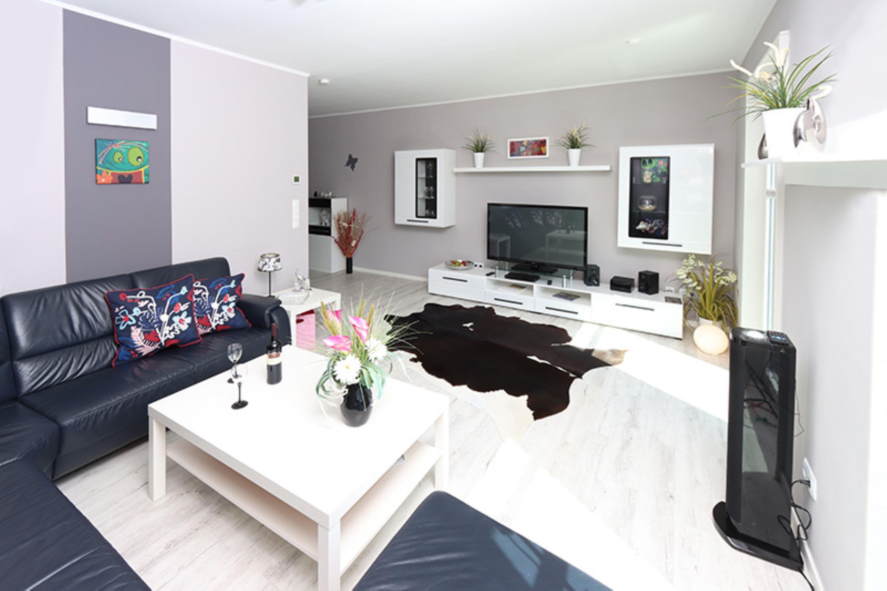 Es gibt zwei Schlafzimmer, ein großes mit einem Doppelbett (180x200) und einen Schlafraum mit zwei Einzelbetten (90x200). Für die Kleinsten stellen wir kostenlos ein Reisebett zur Verfügung. Die Küche ist mit einer EBK, Geschirrspüler, Kühl/Gefrierkombination, Mikrowelle, dem Essbereich und einer kleinen Sofaecke ausgestattet. An Küchenzubehör und Utensil findet man alles, was man zum täglichen Leben benötigt. Der kleine Südbalkon verfügt über einen kleinen Tisch und Gestühl. Vom Balkon aus sieht man den "Holm", den Stadthafen und die Schlei. Das großzügige Wohnzimmer, mit dem Blick in Richtung Stadthafen, verfügt über eine Wohnlandschaft, TV, DVD, Tower, einer Leseecke und viel Platz zum Entspannen. Des Weiteren sind ein Badezimmer mit Duschbad, Fön, Handtücher, eine Waschmaschine im separaten HWR, kleiner HWR, Fußbodenheizung in allen Räumen, Fußbodenplanken mit Anti-Allergie-Siegel und Wlan. Die Größe der Ferienwohnung ist ca. 100 qm. Das Baujahr ist 2014. Für Ihre Fahrräder steht Ihnen ein abschließbarer Schuppen zur Verfügung. Für die Kleinen sind Spiele und Bücher zur Beschäftigung vorhanden. Die Babyausstattung umfasst ein Reisebett mit Matratze (Bettwäsche muss selbst mitgebracht werden), Hochstuhl und Badewanne. Haustiere sind in der Ferienwohnung nicht erlaubt. Das Rauchen ist in der Ferienwohnung nicht erlaubt.
