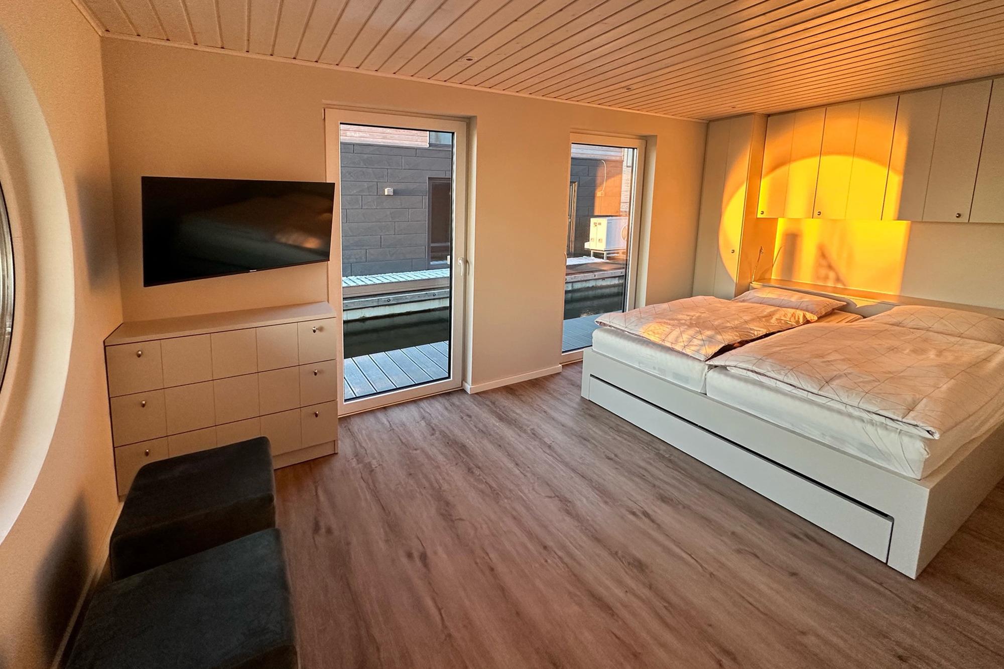 Auf unserem liebevoll eingerichteten, schwimmenden Feriendomizil erwartet Sie Wasserblick in der ersten Reihe.