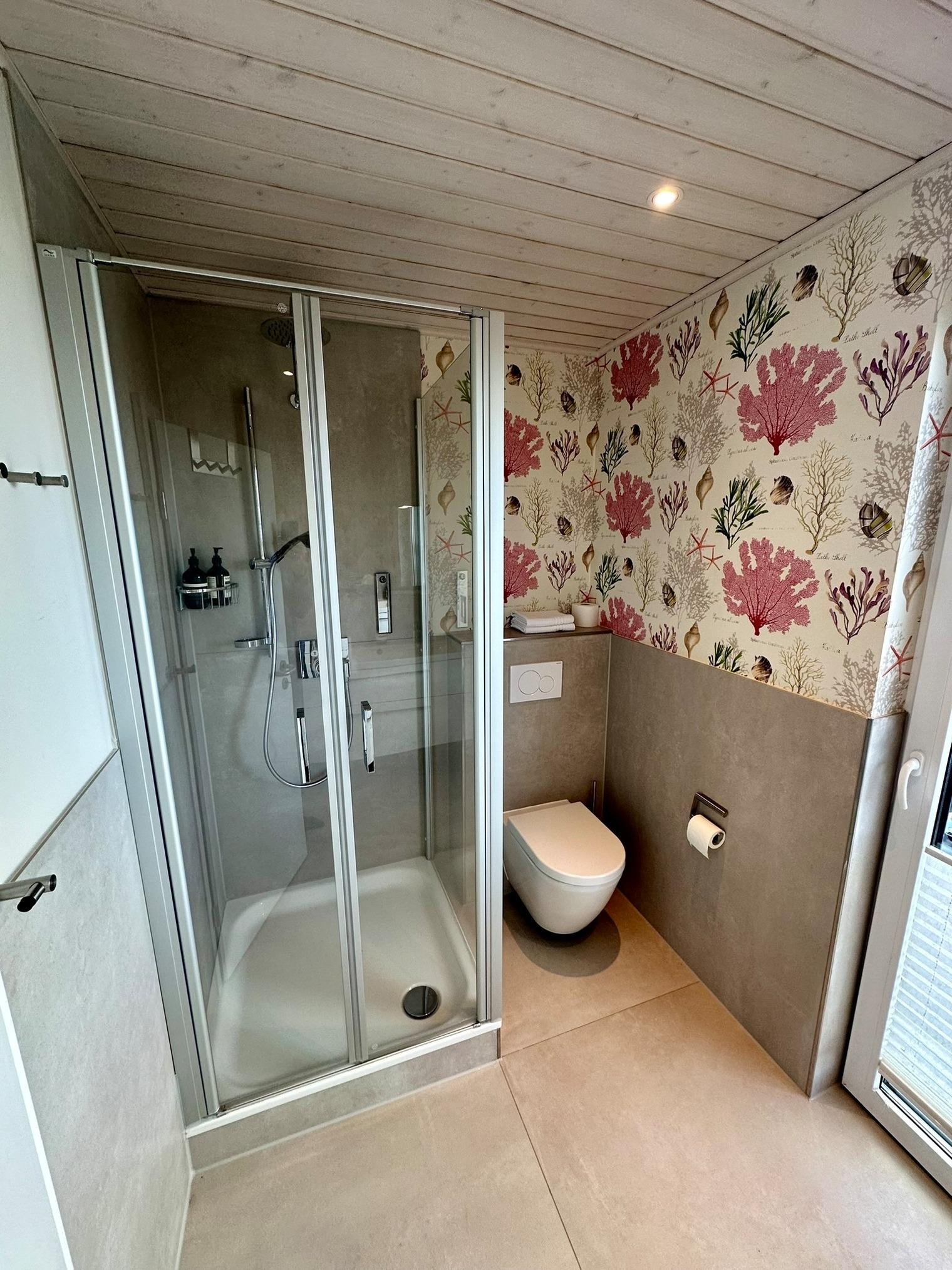 Auf einer Fläche von ca. 150 qm bietet unser Wasserhaus außergewöhnlichen Urlaubskomfort für bis zu 6 Personen. Im Erdgeschoss befinden sich die 3 Schlafzimmer und ein Badezimmer mit Dusche. Im Obergeschoss ist der großzügige Wohn- und Essbereich mit offener Küche untergebracht.