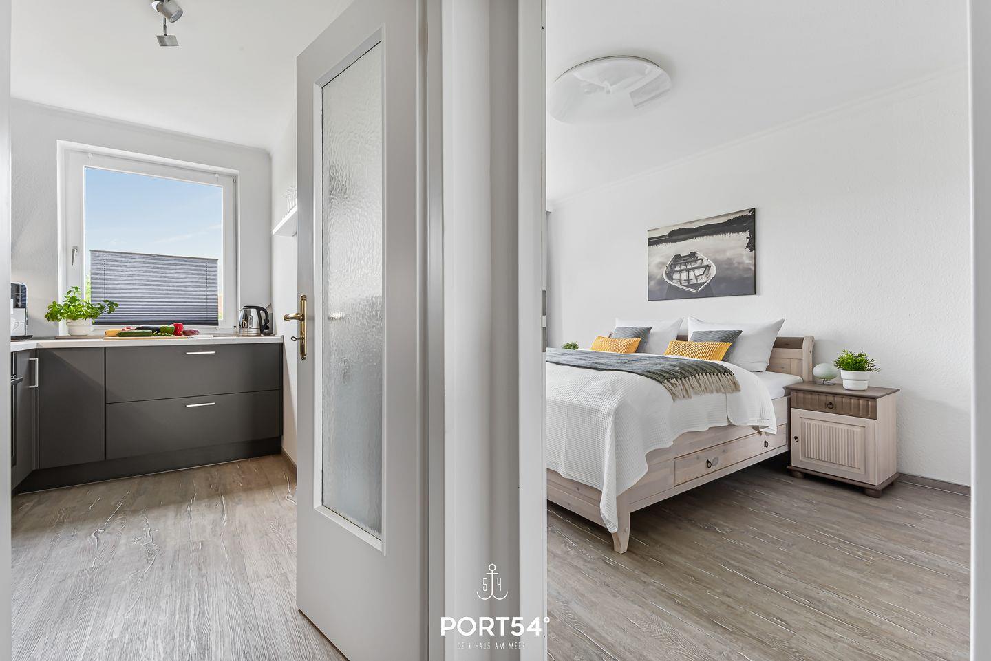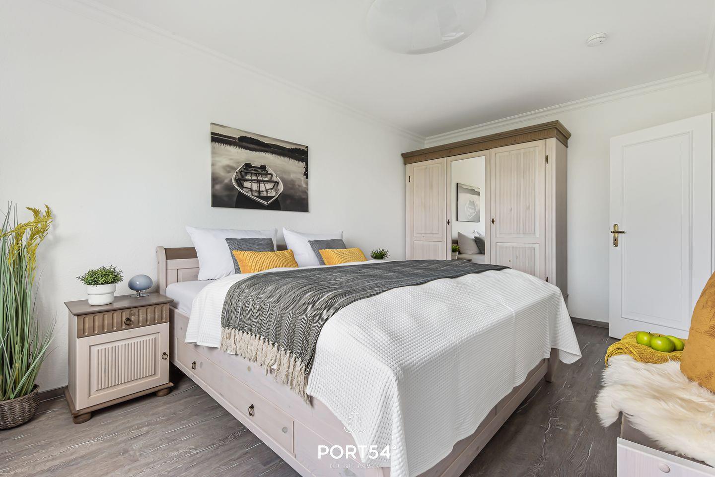 Diese charmante Ferienwohnung befindet sich direkt über dem Wiking Yachthafen Schleswig – im Herzen der Schlei. Über das außenliegende Treppenhaus gelangen sie in das Gebäude über der Garage, wo sich die Wohnung befindet. Die Wohnung verfügt über einen großen Wohn-/Essbereich mit Zugang zur Terrasse mit einzigartigem Schleiblick, Esstisch und Sofa, einem großen Flachbild-Sat-TV sowie kostenfreiem WLAN. Im Schlafzimmer befindet sich ein großes Doppelbett sowie ein Kleiderschrank. Für unsere kleinen Gäste stehen ein Reisebett und ein Kinderhochstuhl zur Verfügung. Das Badezimmer ist modern ausgestattet mit einer Walk-in Dusche und einem Aufsatzwaschbecken. Die komplett eingerichtete Küche, inkl. Spülmaschine und Kaffee-Vollautomat, lässt (fast) keine Wünsche offen. Zu der Unterkunft gehört ein Parkplatz in der dazugehörigen Garage. Dort befinden sich auch extra Abstellplätze für Fahrräder.