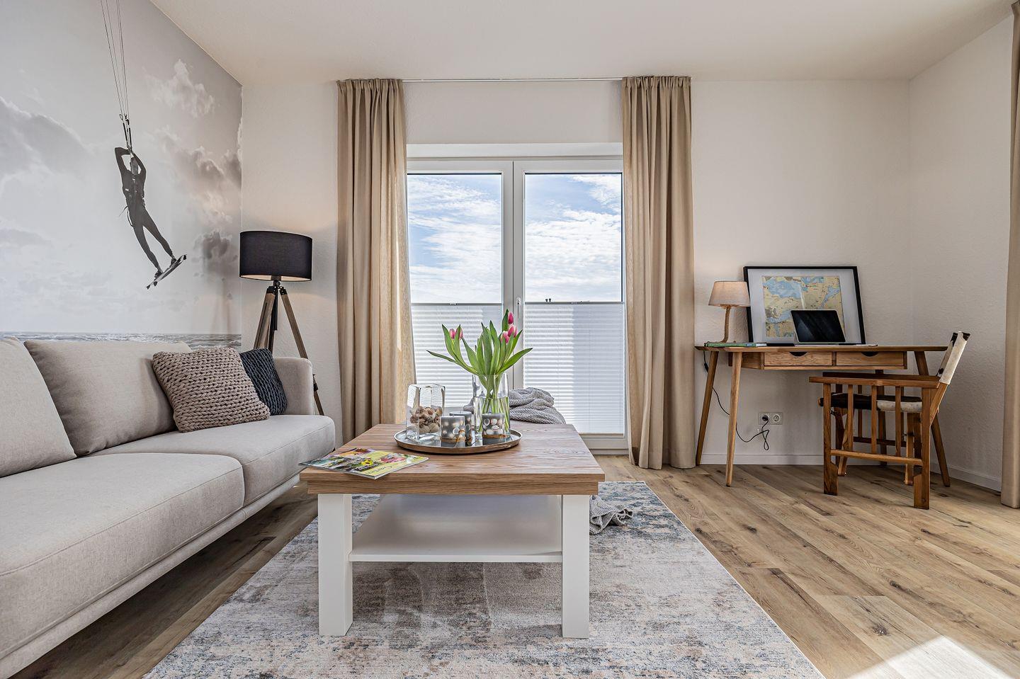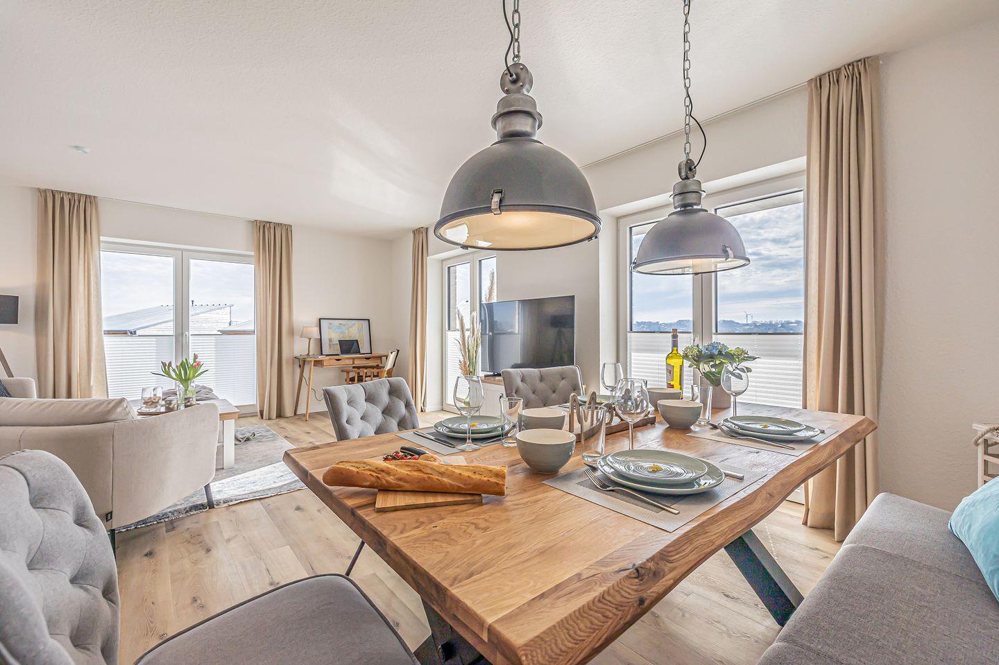 Mit direktem Wasserblick und in einzigartiger Lage direkt an der Schlei bietet die „Schlei-Koje 5“ am Pionierhafen Schleswig den perfekten Ort für Ihren Urlaub. Die Ferienwohnung bietet auf 74m² im 1. OG. Einen offenen Wohn- und Essbereich mit Küche, zwei Schlafzimmer, ein Badezimmer und einen Balkon. Die vollausgestattete Küche lässt keine Wünsche offen und im Wohnzimmer können Sie Ihre Urlaubstage auf dem Sofa vor dem Smart-TV ausklingen lassen. Das eine Schlafzimmer bietet ein gemütliches Doppelbett (180x200cm) sowie Verdunklungsmöglichkeiten für erholsame Nächte. Das andere Schlafzimmer verfügt über zwei Einzelbetten (je 90x200cm) und Verdunklungsmöglichkeiten. In dem Badezimmer finden Sie einen Föhn und eine Dusche vor sowie WC und Waschbecken. Auf dem Balkon können Sie sich entspannen und an lauen Abenden Ihre Urlaubstage ausklingen lassen. Ein eigener Parkplatz steht Ihnen direkt vor dem Haus zur Verfügung. Ihre Fahrräder können Sie im offenen gemeinschaftlich genutzten Fahrradraum unterstellen. Im Erdgeschoss steht eine Waschmaschine zur gemeinschaftlichen Nutzung kostenfrei für Sie zur Verfügung. Am Pionierhafen wird Wert auf Nachhaltigkeit gelegt, daher wird 77 % der Energie durch Erdwärme bezogen. Durch die einzigartige Lage am Ostseefjord Schlei kann auch ein Boot mitgebracht und auf einem Liegeplatz gegen Gebühr direkt am Pionierhafen angelegt werden. Bitte sprechen Sie uns hierfür an.