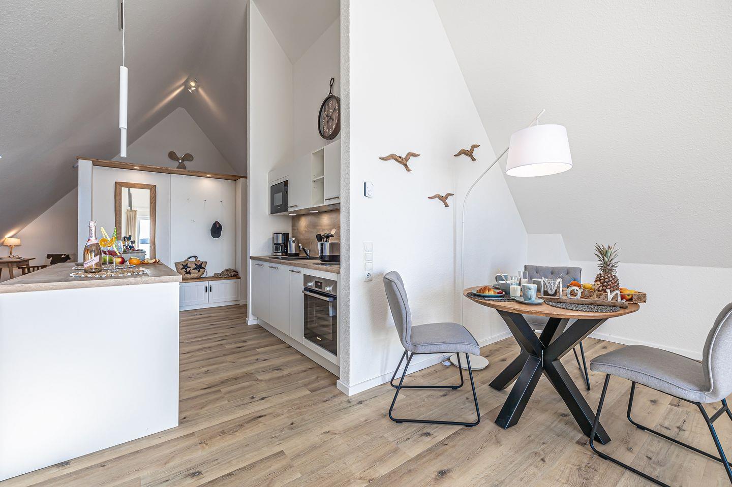 Mit direktem Wasserblick und in einzigartiger Lage, direkt an der Schlei, bietet die Schlei-Koje 8 den perfekten Ort für Ihren Urlaub. Die Ferienwohnung bietet im DG einen offenen Wohn- & Essbereich mit vollausgestatteter Küche, ein Schlafzimmer mit Doppelbett, ein Badezimmer und einen Balkon. Ein eigener Parkplatz steht Ihnen direkt vor dem Haus zur Verfügung. Ihre Fahrräder können Sie im Fahrradraum unterstellen.