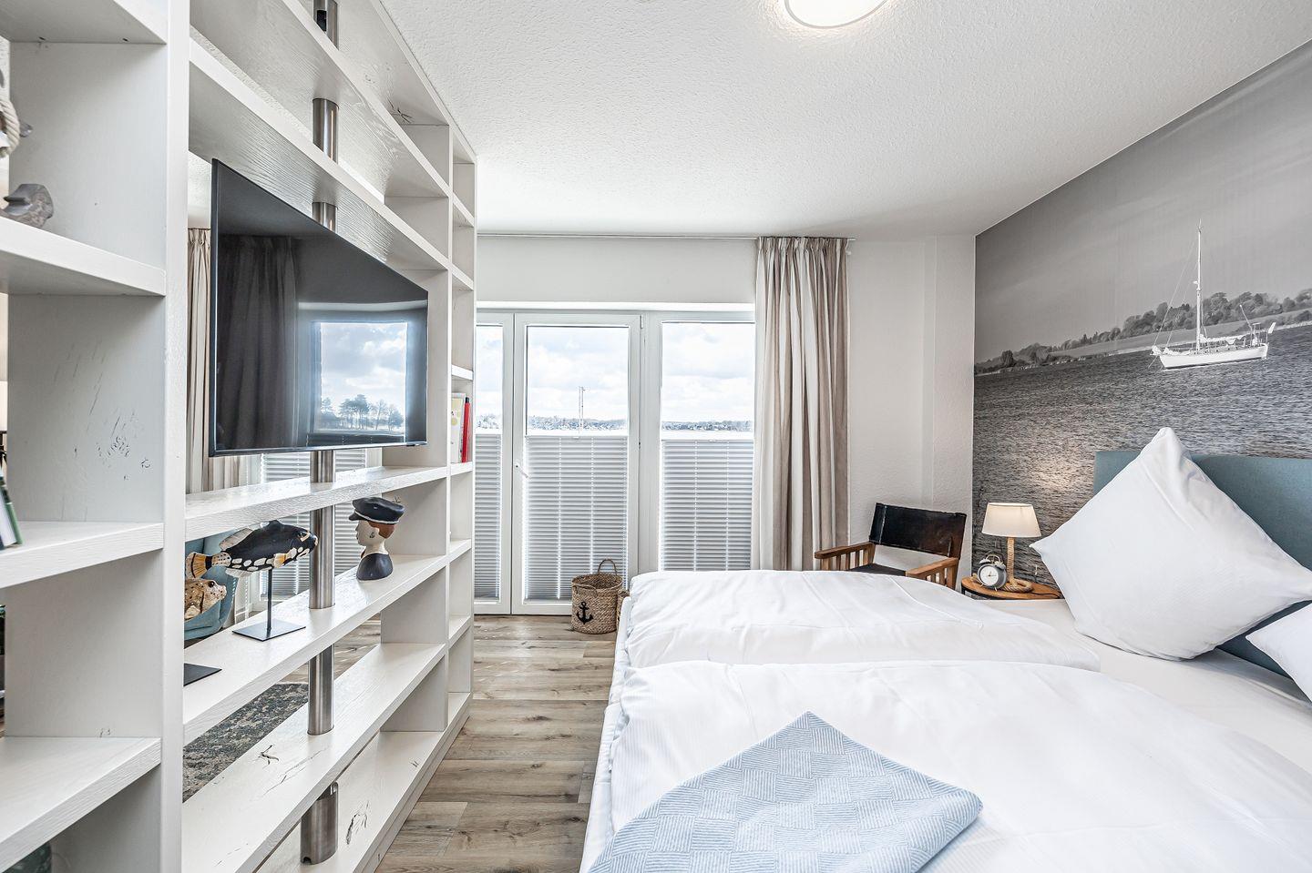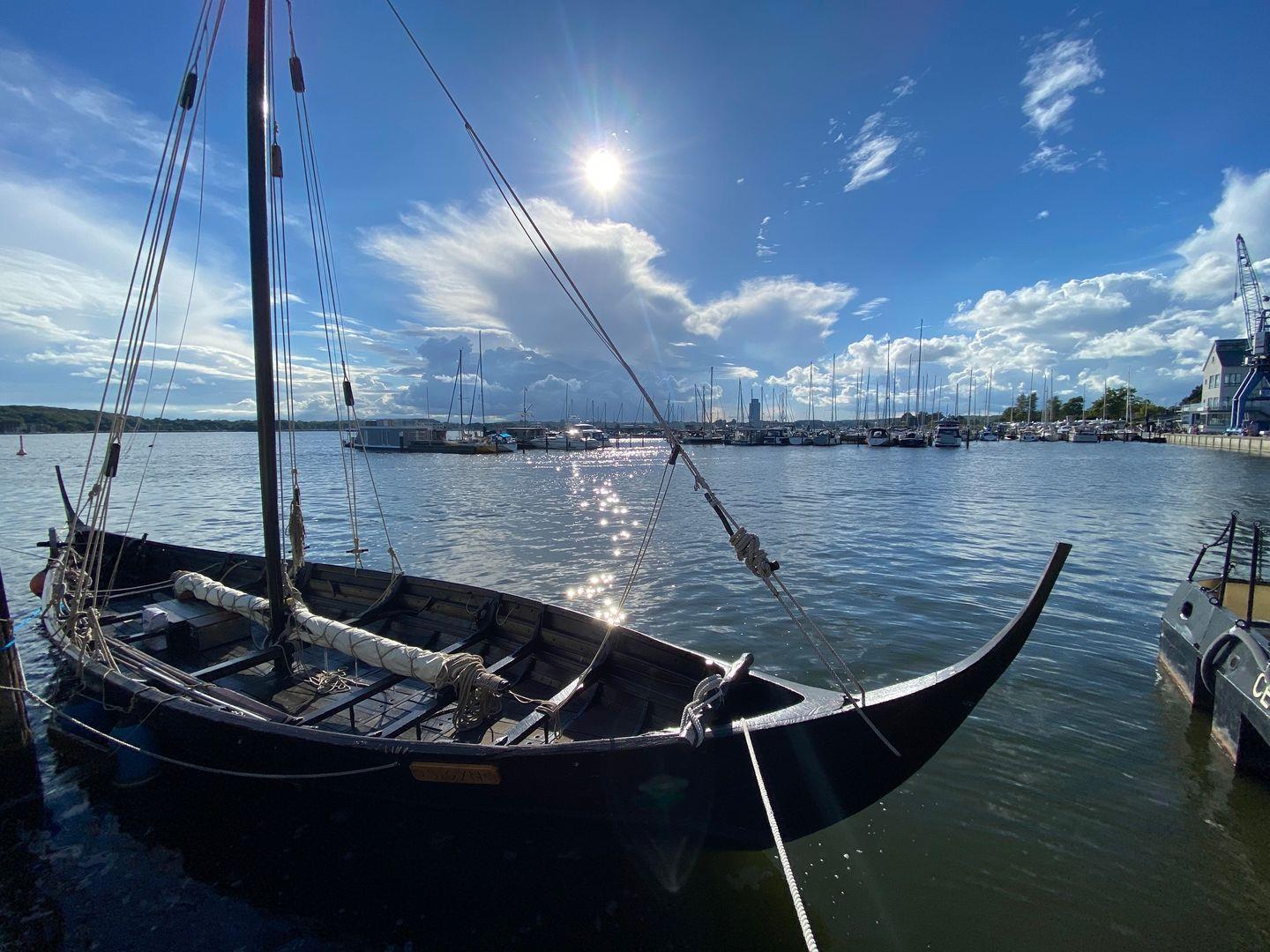 Mit direktem Wasserblick und in einzigartiger Lage direkt an der Schlei bietet die „Fjord-Koje 4“ am Pionierhafen Schleswig den perfekten Ort für Ihren Urlaub. Die Ferienwohnung bietet auf ca. 45m² einen offenen Wohn- und Essbereich mit Küche und Schlafbereich, ein Badezimmer und einen Balkon. Die vollausgestattete Küche lässt keine Wünsche offen und im Wohnzimmer können Sie Ihre Urlaubstage auf dem Sofa vor dem Smart-TV ausklingen lassen. Diesen können Sie bei Bedarf so drehen, dass Sie vom Bett aus fernsehen können. Der Schlafbereich bietet ein gemütliches Doppelbett (180x200cm) sowie Verdunklungsmöglichkeiten für erholsame Nächte. In dem Badezimmer finden Sie einen Föhn und eine Dusche vor. Auf dem Balkon können Sie sich entspannen und an lauen Abenden Ihre Urlaubstage ausklingen lassen. Ein eigener Parkplatz steht Ihnen direkt vor dem Haus zur Verfügung. Ihre Fahrräder können Sie im offenen gemeinschaftlich genutzten Fahrradraum unterstellen. Im Erdgeschoss steht eine Waschmaschine zur gemeinschaftlichen Nutzung kostenfrei für Sie zur Verfügung. Am Pionierhafen wird Wert auf Nachhaltigkeit gelegt, daher wird 77 % der Energie durch Erdwärme bezogen. Durch die einzigartige Lage am Ostseefjord Schlei kann auch ein Boot mitgebracht und auf einem Liegeplatz gegen Gebühr direkt am Pionierhafen angelegt werden. Bitte sprechen Sie uns hierfür an.