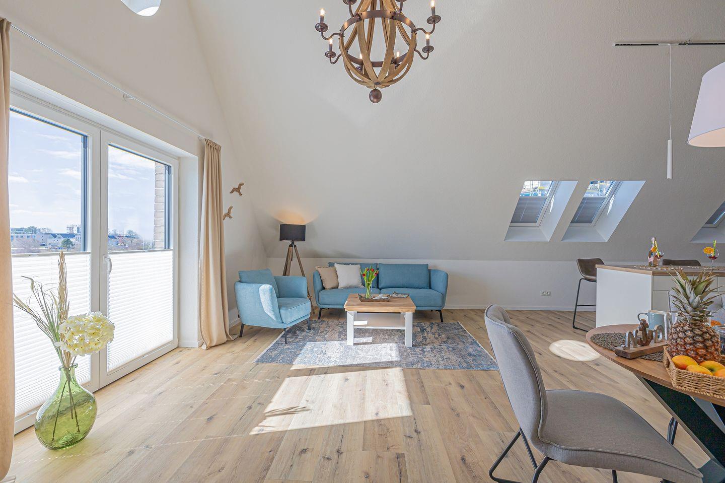 Mit direktem Wasserblick und in einzigartiger Lage direkt an der Schlei bietet die „Fjord-Koje 8“ am Pionierhafen Schleswig den perfekten Ort für Ihren Urlaub. Die Ferienwohnung bietet auf ca. 66m² einen offenen Wohn- und Essbereich mit Küche und Schlafbereich, ein Badezimmer und einen Balkon. Die vollausgestattete Küche lässt keine Wünsche offen und im Wohnzimmer können Sie Ihre Urlaubstage auf dem Sofa vor dem Smart-TV ausklingen lassen. Der offene Schlafbereich bietet ein gemütliches Doppelbett (180x200cm) sowie Verdunklungsmöglichkeiten für erholsame Nächte. In dem Badezimmer finden Sie einen Föhn und eine fast ebenerdige Dusche vor. Auf dem Balkon können Sie sich entspannen und an lauen Abenden Ihre Urlaubstage ausklingen lassen. Ein eigener Parkplatz steht Ihnen direkt vor dem Haus zur Verfügung. Ihre Fahrräder können Sie im offenen gemeinschaftlich genutzten Fahrradraum unterstellen. Im Erdgeschoss steht eine Waschmaschine zur gemeinschaftlichen Nutzung kostenfrei für Sie zur Verfügung. Am Pionierhafen wird Wert auf Nachhaltigkeit gelegt, daher wird 77 % der Energie durch Erdwärme bezogen. Durch die einzigartige Lage am Ostseefjord Schlei kann auch ein Boot mitgebracht und auf einem Liegeplatz gegen Gebühr direkt am Pionierhafen angelegt werden. Bitte sprechen Sie uns hierfür an.