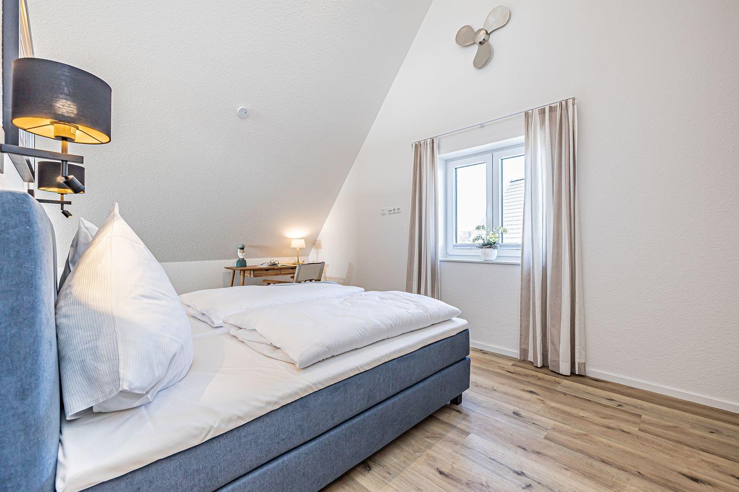 Mit Wasserblick direkt an der Schlei bietet die Fjord-Koje 8 den perfekten Ort für Ihren Urlaub. Die Ferienwohnung bietet im DG einen offenen Wohn- & Essbereich mit vollausgestatteter Küche, ein Schlafzimmer mit Doppelbett sowie Verdunklungsmöglichkeiten, ein Badezimmer und einen Balkon. Ein eigener Parkplatz steht Ihnen direkt vor dem Haus zur Verfügung. Ihre Fahrräder können Sie im Fahrradraum unterstellen.