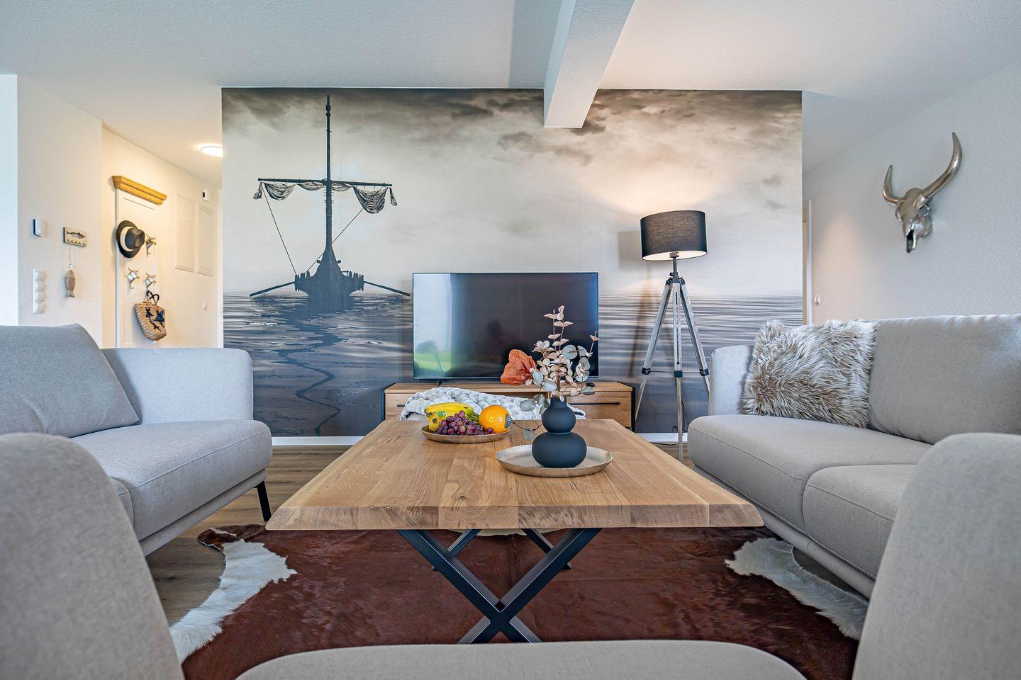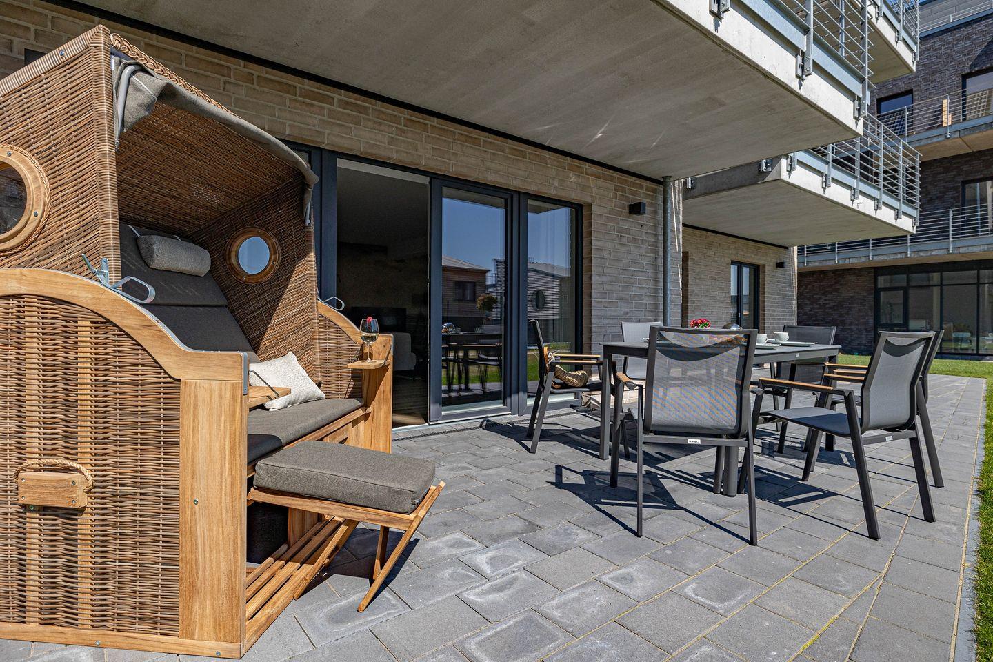 Wiking-Koje 1 - Erdgeschoss, Sauna, Terrasse, Strandkorb, PKW-Stellplatz