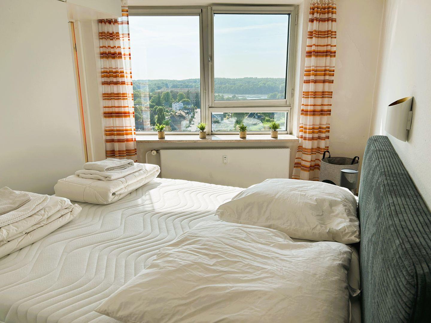 Die Ferienwohnung Wikinger Nest 13.10 im Wikingturm ist Ihr ideales Zuhause für einen unvergesslichen Urlaub an der Ostseeküste. Mit einer großzügigen Wohnfläche von 62 m² bietet diese Unterkunft Platz für bis zu drei Personen und ist perfekt für alle Reisenden die eine entspannte Atmosphäre suchen. Die Wohnung befindet sich im 13. Stock, von wo aus Sie einen außergewöhnlich guten Blick auf die umliegende Landschaft und das Meer genießen können. Das helle Wohnzimmer ist der perfekte Ort, um nach einem aufregenden Tag am Strand zu entspannen. Hier steht Ihnen ein Sofa zur Verfügung, auf dem Sie die Abende beim Fernsehen verbringen können. Angrenzend an das Wohnzimmer befindet sich die offene Küche, die mit allen notwendigen Küchengeräten ausgestattet ist, darunter ein Herd, eine Mikrowelle und eine Espressomaschine, die für den perfekten Kaffeegenuss sorgt. Der Essbereich lädt zu gemeinsamen Mahlzeiten und fröhlichen Abenden ein. Die Loggia lädt zu entspannten Stunden an der frischen Luft ein. Die Badezimmerausstattung der Ferienwohnung ist funktional und komplett. Sie finden hier eine Badewanne sowie Waschbecken und WC, die Ihnen zusätzlichen Komfort bieten. Zudem Gebrauch von einer Waschmaschine zur Eigennutzung, um Ihre Kleidung während Ihres Aufenthalts frisch zu halten. Zur weiteren Ausstattung gehören ein Kühlschrank mit Gefrierfach, Wasserkocher und die notwendigen Küchenutensilien, sodass Sie sich problemlos selbst verpflegen können. Ihr vierbeiniger Freund kann ebenfalls gerne mitreisen und ist herzlich willkommen. Die Lage der Ferienwohnung ist unschlagbar. Innerhalb von nur 50 Metern erreichen Sie das Meer, ideal für einen erfrischenden Badetag oder entspannte Strandspaziergänge. Restaurants sind ebenfalls in unmittelbarer Nähe verfügbar, wobei Sie schon nach 50 Metern dort einkehren können. Ein Supermarkt befindet sich nur 1.200 Meter entfernt und auch andere Einkaufsmöglichkeiten sind in der Nähe, sodass Sie mit Leichtigkeit alles finden, was Sie für Ihren Aufenthalt benötigen. Für weitere Besorgungen stehen Ihnen Geldautomaten und Banken in der Umgebung zur Verfügung, ebenso wie Apotheken und ein Krankenhaus. Die Ferienwohnung Wikinger Nest 13.10 im Wikingturm ist somit nicht nur der perfekte Ort für einen erholsamen Urlaub, sondern bietet auch die Möglichkeit, aktiv zu sein und die Umgebung zu erkunden. Denken Sie nicht nur an Entspannung, sondern auch an Erlebnisse, die den Aufenthalt unvergesslich machen. Sichern Sie sich Ihren Aufenthalt und genießen Sie alles, was dieser einzigartige Ort zu bieten hat – für einen unvergesslichen Urlaub an der Nordsee.