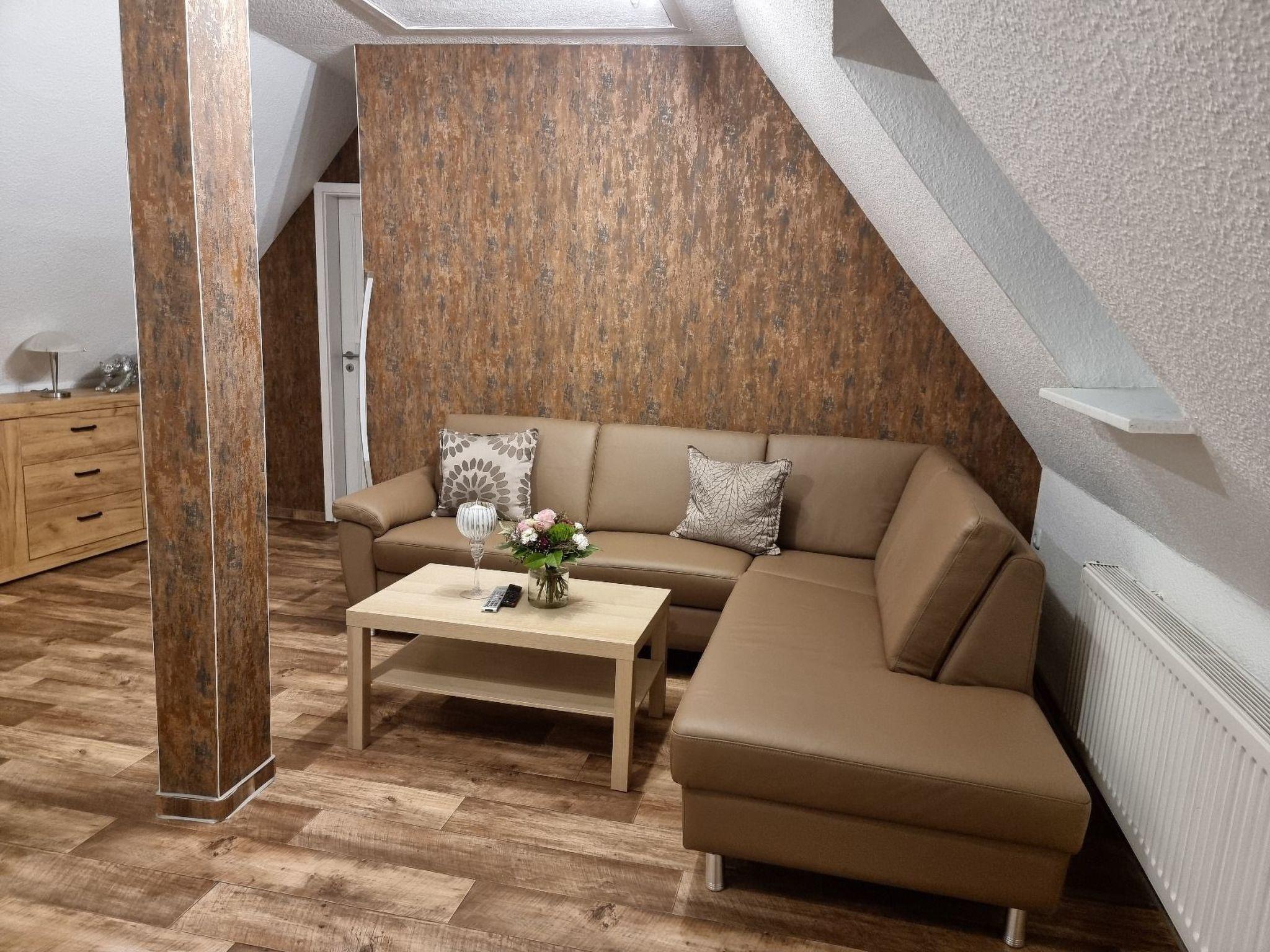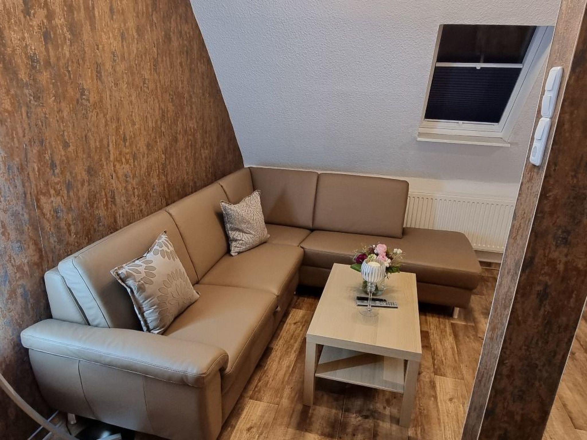 Living room with pull-out leather corner couch and additional sofa bed with Sat/TV and free W-Lan,