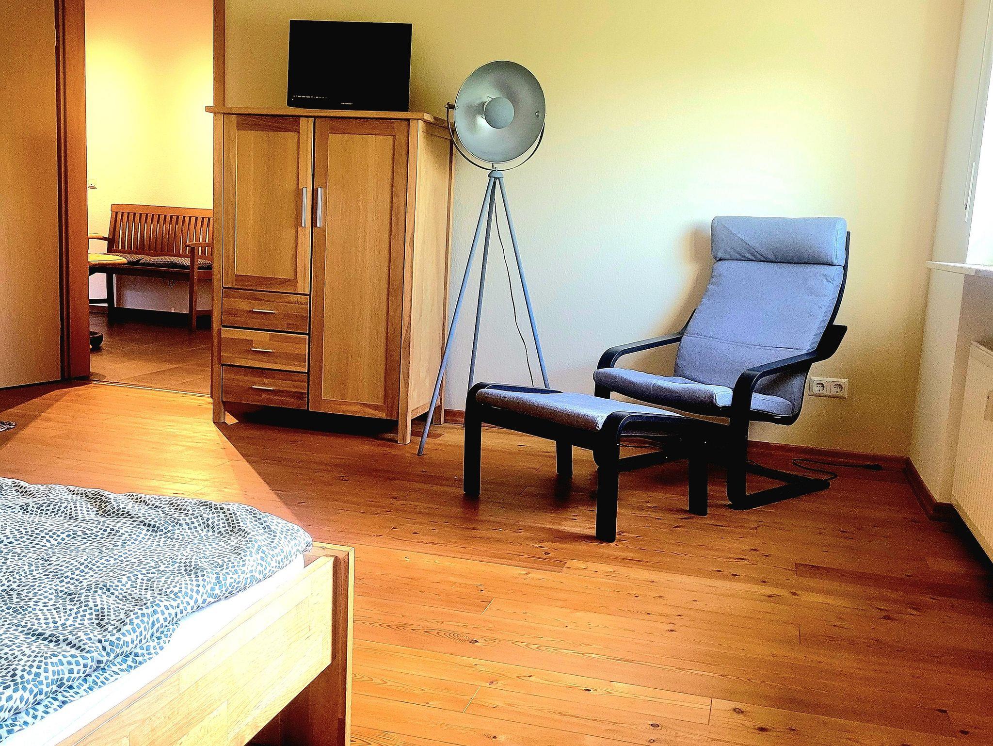 Die Ferienwohnung Storchennest, mit einem Balkon und Gartenblick, verfügt über ein Schlafzimmer Doppelzimmer oder Zweibettzimmer), ein großes Wohnzimmer mit Flachbild-TV, ein Badezimmer (Badewanne/Dusche/WC) sowie über eine gut ausgestattete Küche mit Kühlschrank, Gefrierschrank, Geschirrspüler, Kaffeemaschine, Wasserkocher usw. Kaffee, Tee und Gewürze sind ebenso vorhanden.