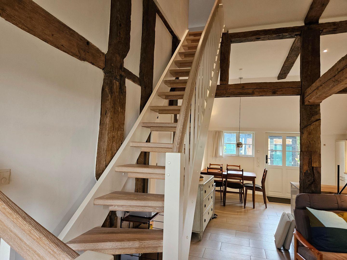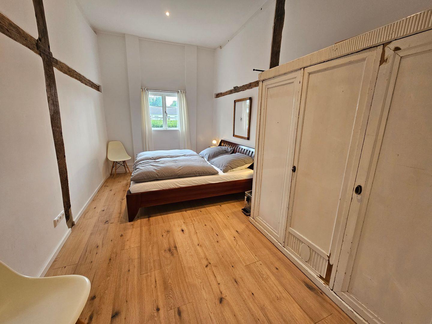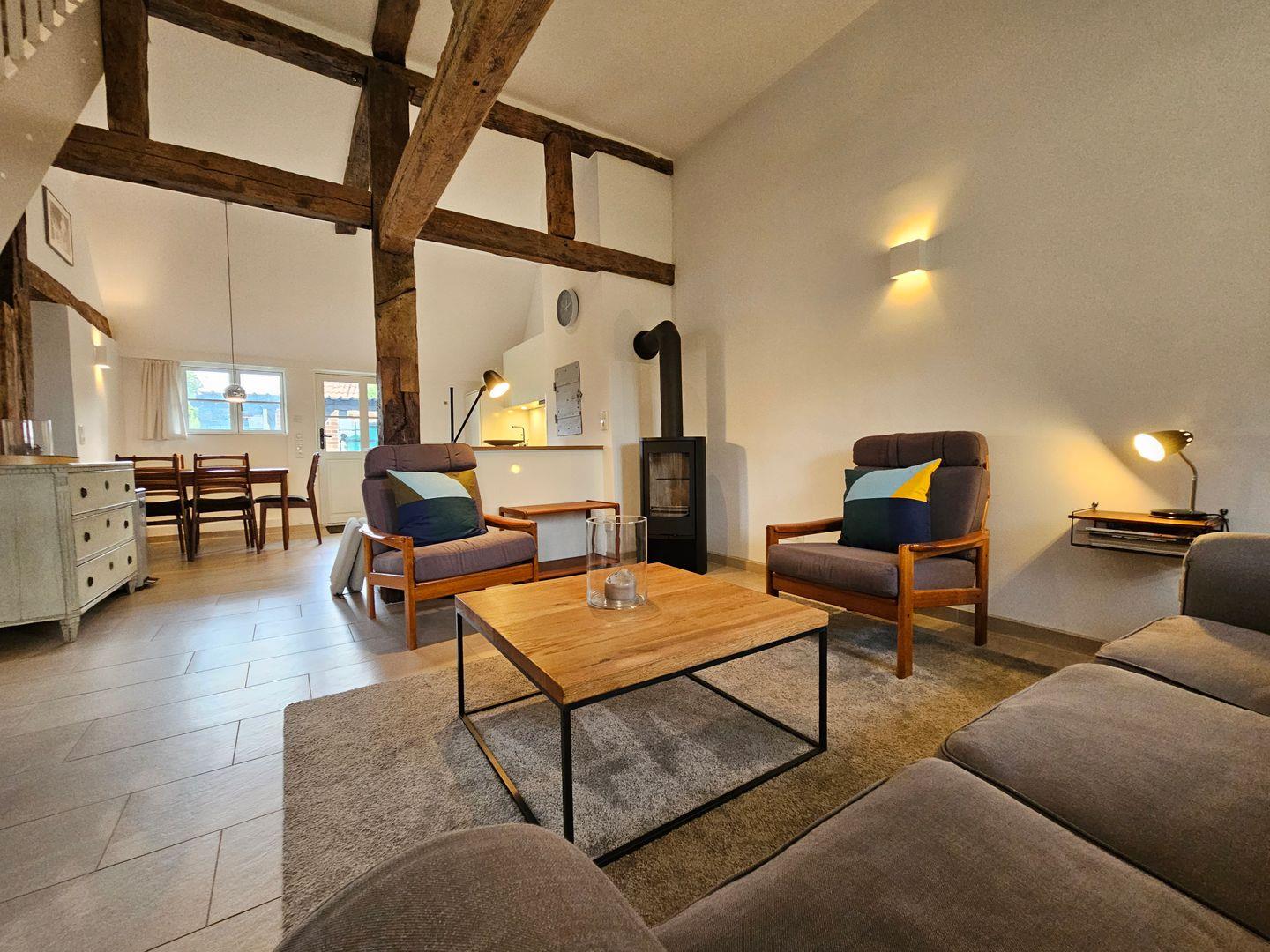 Hohe Decken in den Haupträumen, ein offener Wohn- und Küchenbereich mit Kamin und die Ausstattung nach modernsten Ansprüchen laden zum Verweilen ein. Die alten Fachwerkbalken sind innen sichtbar und geben dem Objekt einen besonderen Charme. Das Erdgeschoß verfügt über eine Fußbodenheizung. Die unteren Schlafzimer sind mit Dielenparkett ausgelegt.