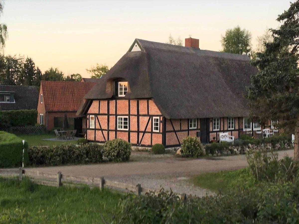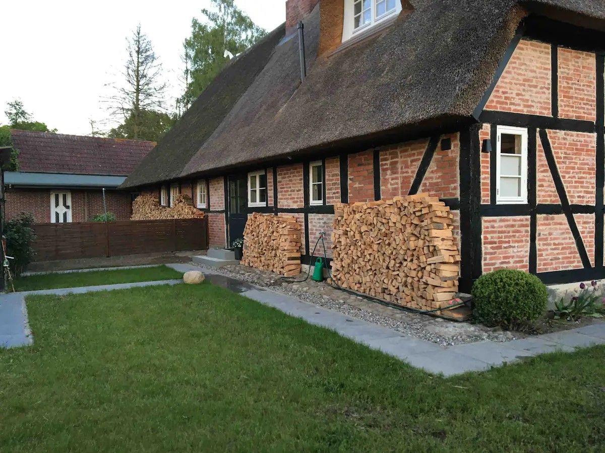 Reetgedecktes Fachwerkhaus von 1840, liebevoll saniert, 100 qm, 430 qm Grundstück, bis 6 Personen. Offener Wohn-Küchenbereich mit Kamin, hohe Decken, moderne Ausstattung, sichtbare Balken. Fußbodenheizung, Dielenparkett in Schlafzimmern. Helles Bad mit großer bodengleicher Dusche. Obergeschoss mit offenem Wohn-Schlafbereich, dänische Holzfenster. Streaming-TV, Haustiere erlaubt. In Holsteinischen Schweiz.