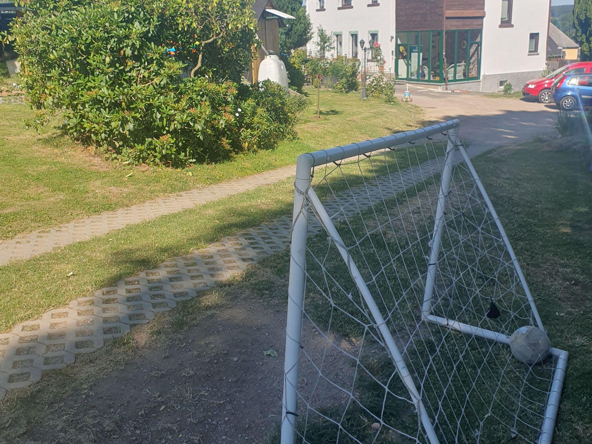 Auf dem Grundstück haben wir viel Platz für Kinder. Einen Sandkasten, Schaukel, Matschküche, Fahrgeräte, Trampolin, Basketball, Tischtennis, Tischkicker usw.