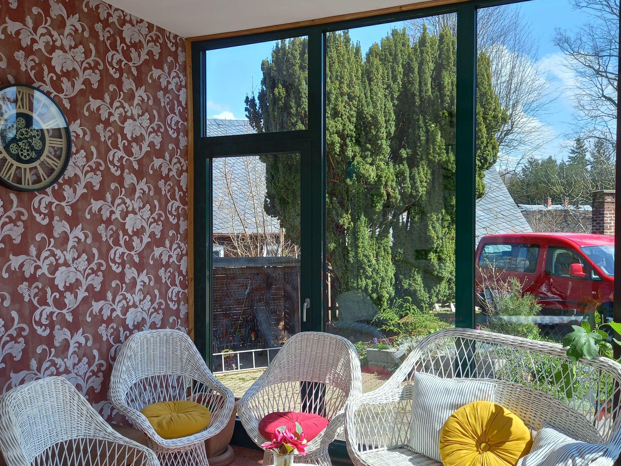 Der Wintergarten lädt zum Verweilen ein und eine Tasse Tee oder Kaffee wird hier mit Blick auf den Garten besonders bei Sonne im Winter zum Wohlfühlort.