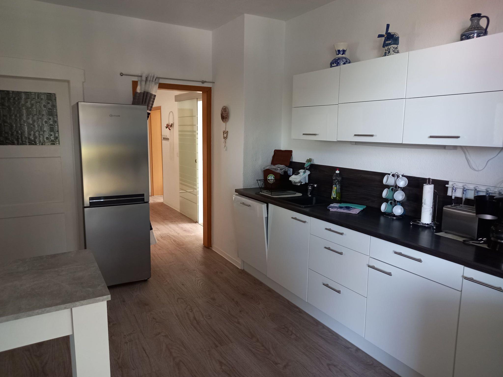 Die Wohnung ist 89m2 groß und hat Küche mit Bartisch und 2 Barhockern, 1Schlafzimmer, Flur und großer Wohn /Essbereich, sowie großes Bad mit ebenerdiger Dusche.