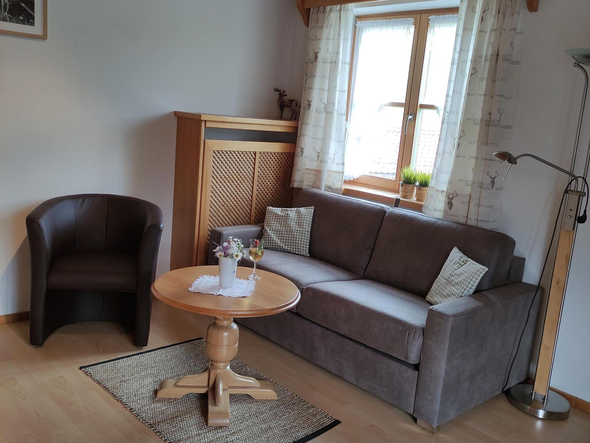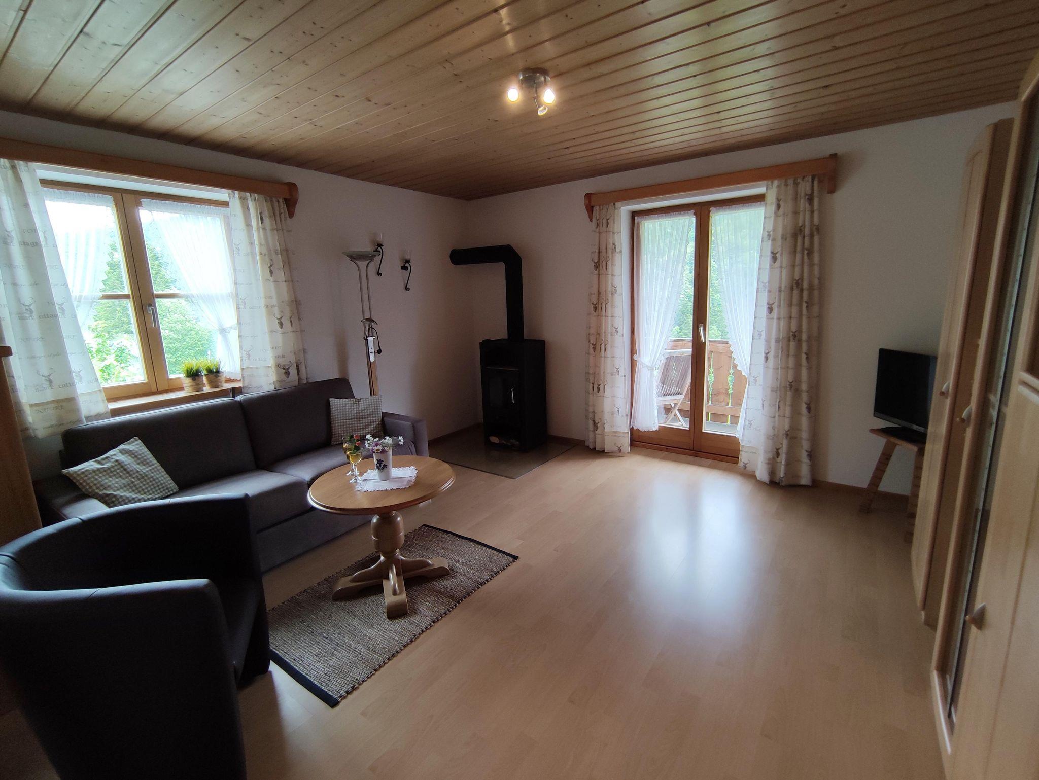 Helle, freundliche und gemütliche eingerichtete Fereinwohnung für zwei bis vier Personen im Zuhaus im 1. Stock. Die Wohnung ist komplett mit Holz- und Laminatböden ausgestattet. Unsere Ferienwohnung Blick Hochstaufen verfügt über ein sep. Wohnzimmer mit neuer und hochwertiger Schlafcouch sowie einem Kaminofen, Schlafzimmer mit Doppelbett und ein neu renoviertes Badezimmer mit Dusche/WC. An kalten Tagen, sowie im Winter, können Sie den Kaminofen beheizen, das Holz stellen wir gerne kostenfrei zur Verfügung! Der schöne, sonnige Südbalkon lädt zum Verweilen ein. Freitags und samstags beliefern wir Sie gerne mit frischen Semmeln. Keine Haustiere.