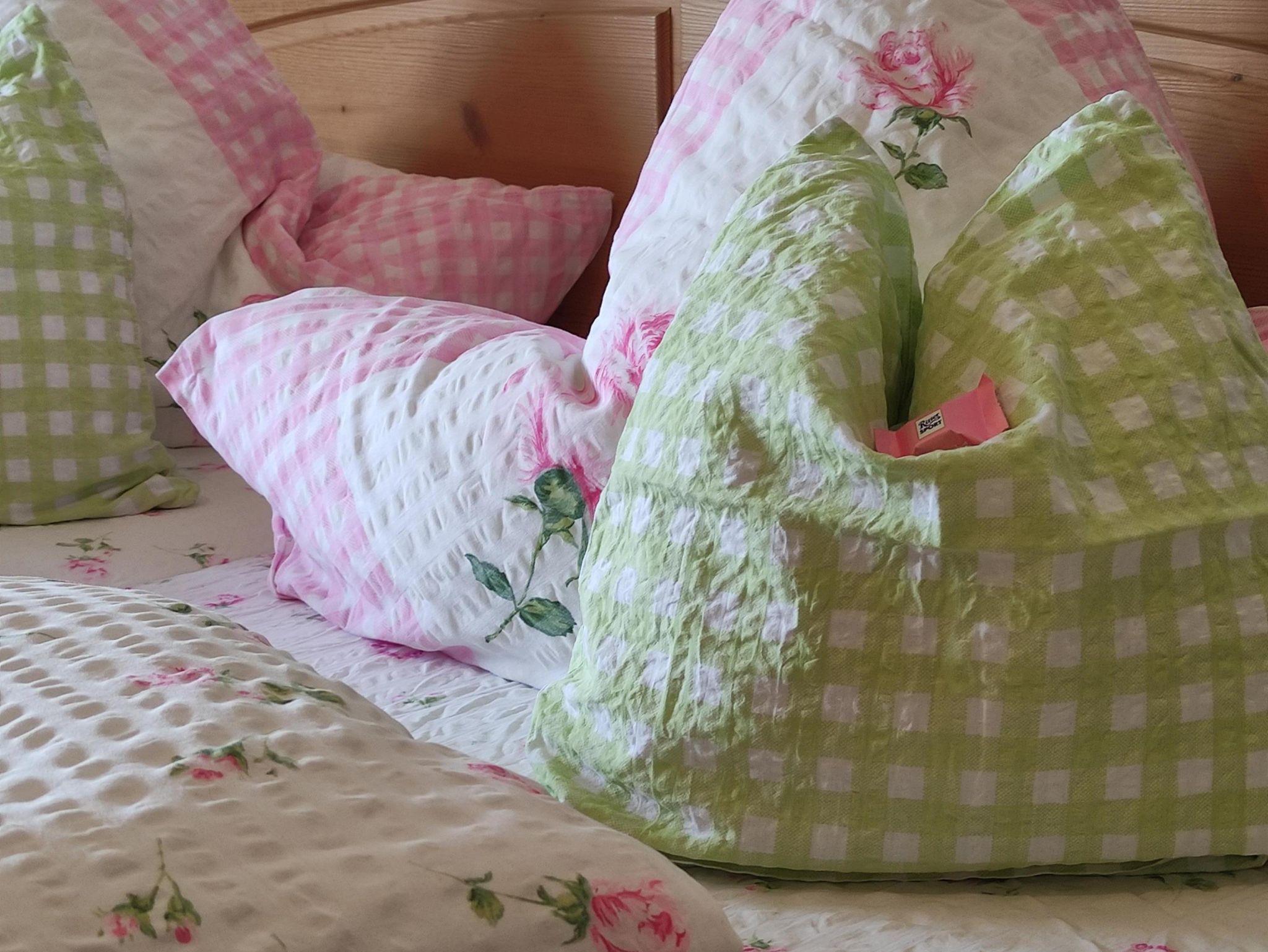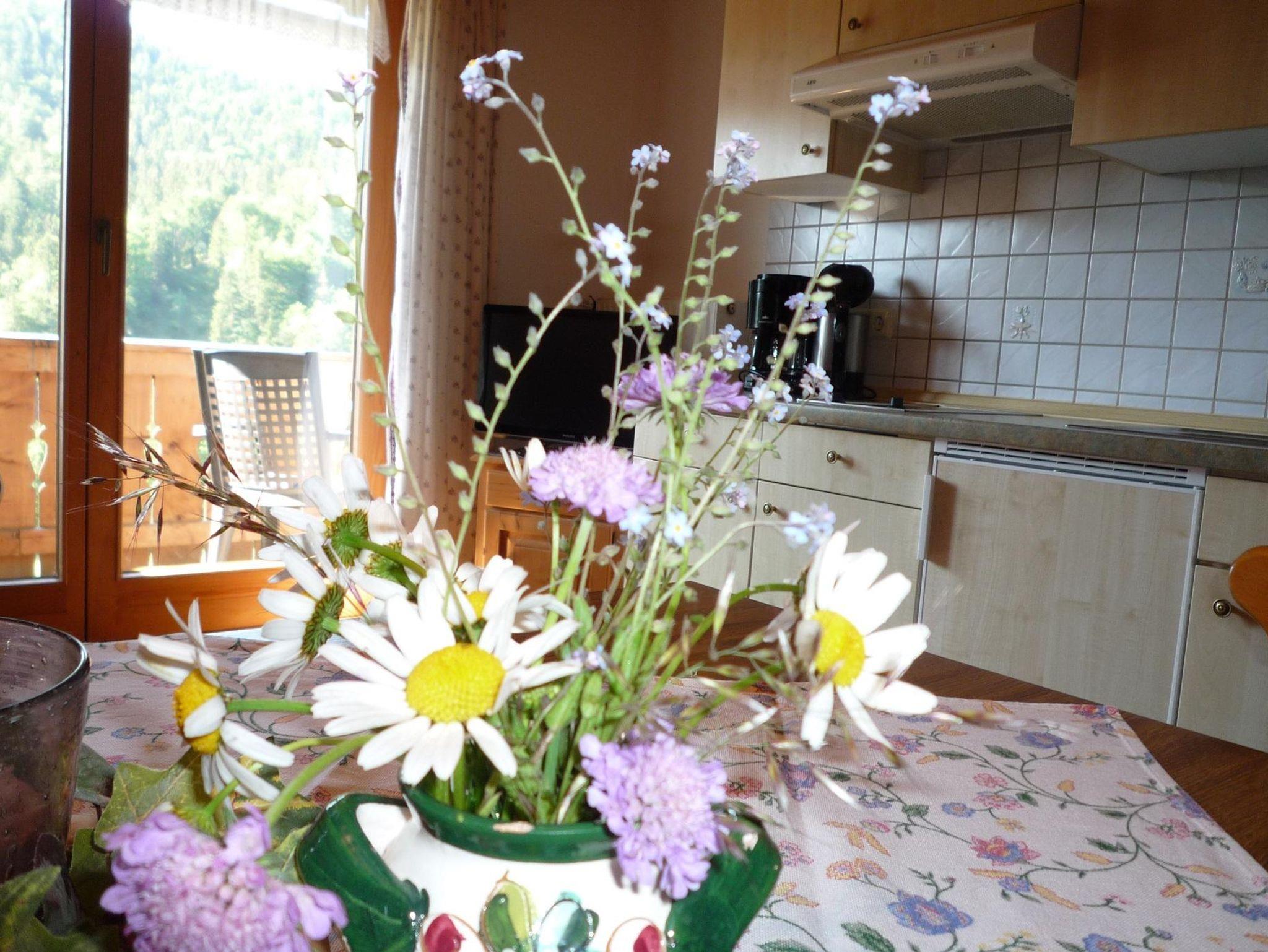 Helle, freundliche und gemütliche eingerichtete Ferienwohnung für zwei bis vier Personen im Zuhaus im 1. Stock. Die Wohnung ist komplett mit Holz- und Laminatböden ausgestattet. Unsere Ferienwohnung Blick Sonntagshorn verfügt über eine Wohnküche mit Essecke und neuer, hochwertiger Schlafcouch, Schlafzimmer mit Doppelbett und ein neu renoviertes Badezimmer mit Dusche/WC. Der große, sonnige Südbalkon ist sowohl von der Wohnküche, als auch vom Schlafzimmer zugänglich. Freitags und samstags liefern wir Ihnen gerne frische Semmeln. Keine Haustiere.