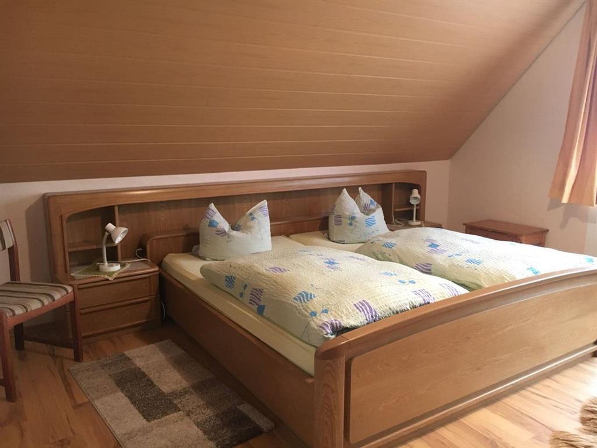 Gemütliche 82 m² große Wohnung im Obergeschoss. Die Ferienwohnung verfügt über ein Wohnzimmer, eine separate Küche mit Essgelegenheit, zwei Schlafzimmer mit Doppelbetten sowie ein Bad mit Dusche und WC.