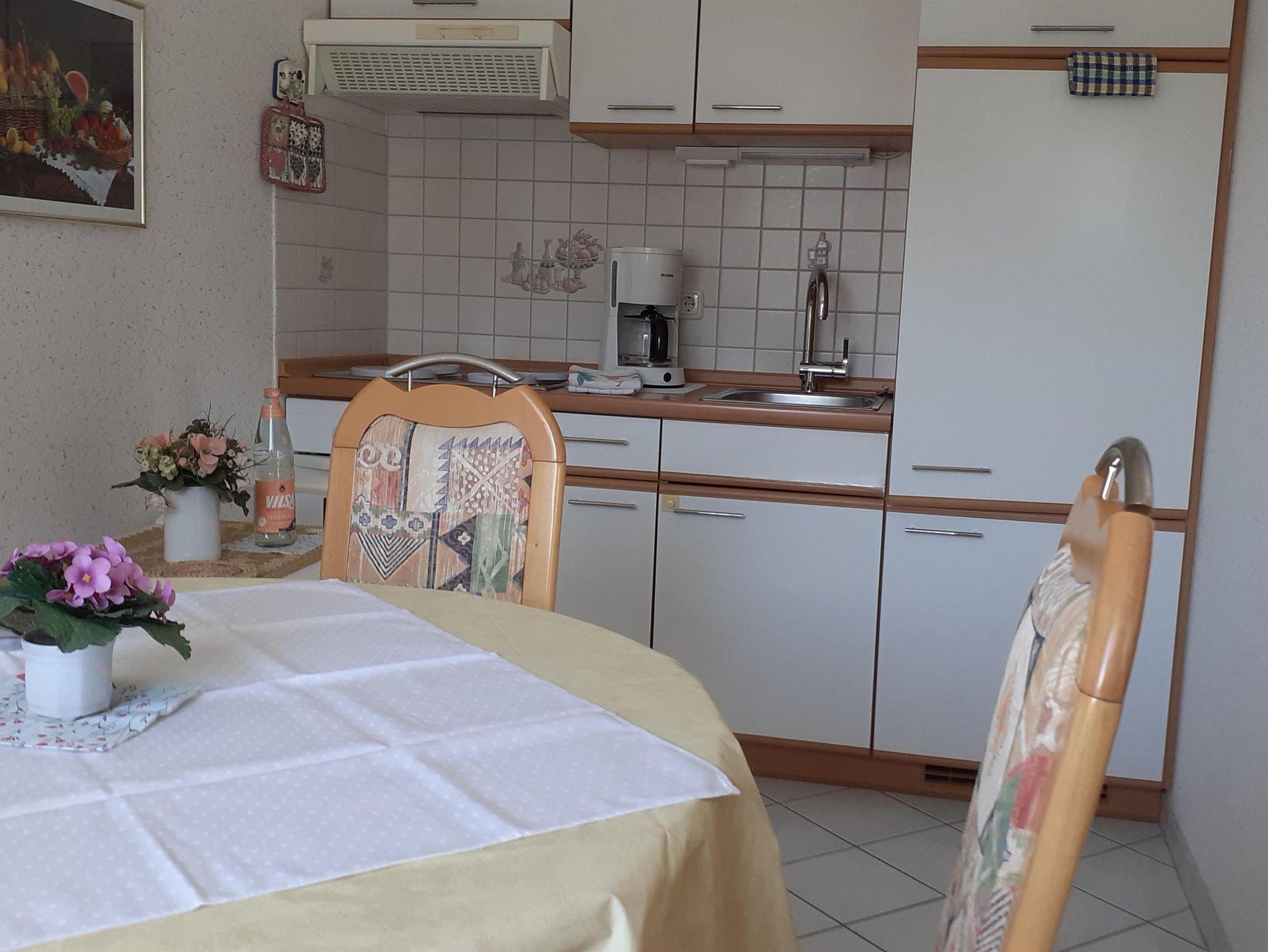 Hell und freundlich eingerichtete Ferienwohnung für zwei Personen im Erdgeschoss.