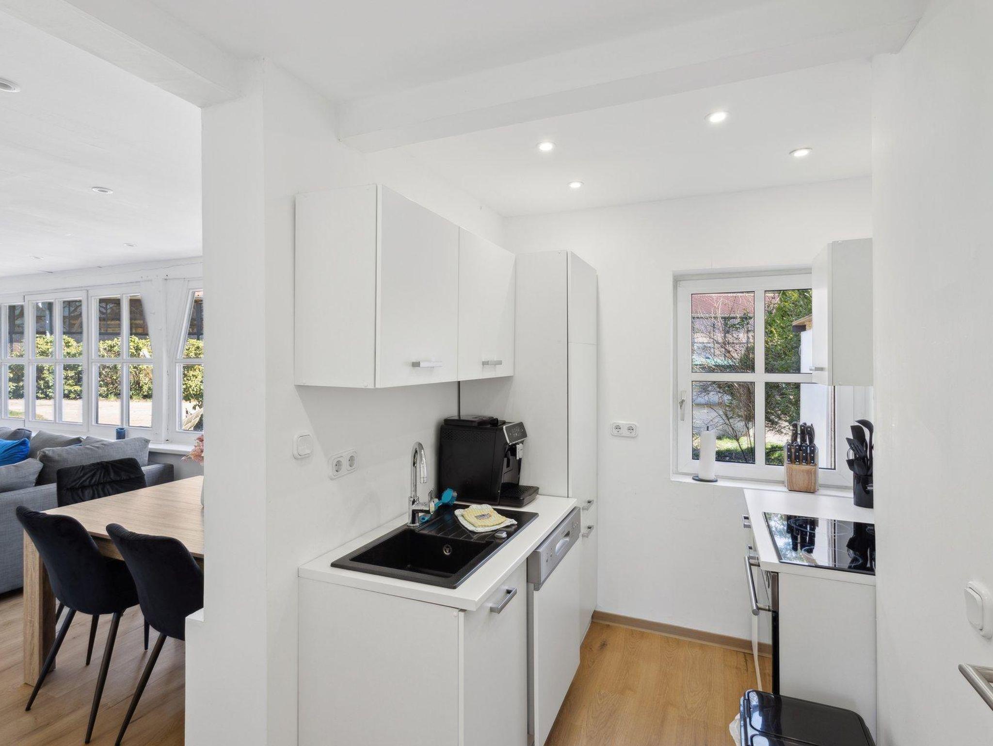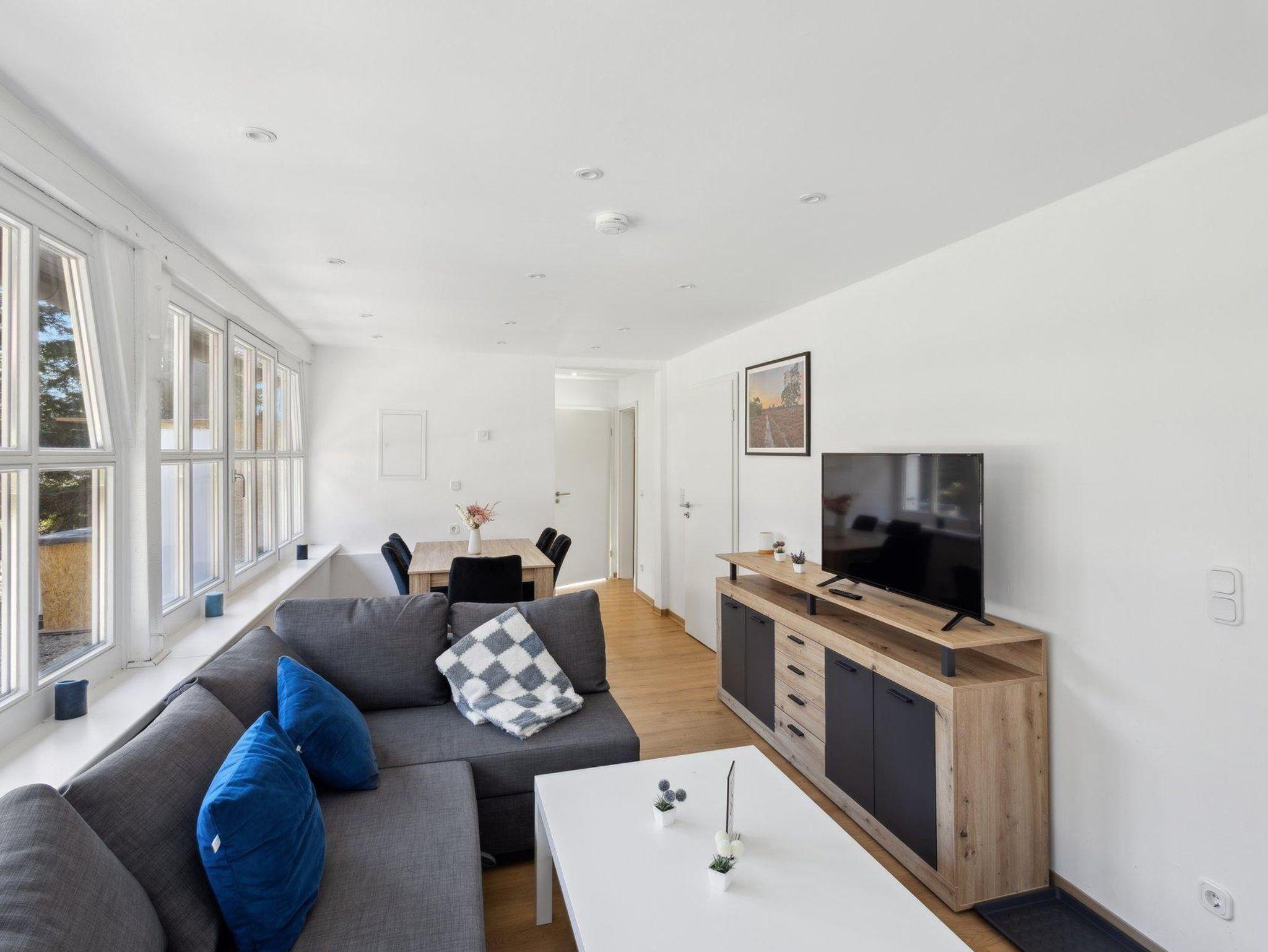 Diese Ferienwohnung bietet Komfort für bis zu 6 Personen. Sie verfügt über eine komplett ausgestattete Küche mit Geschirrspülmaschine und Kaffevollautomat, ein Wohnzimmer mit Flachbildschirm und Essgelegenheit, ein Schlafzimmer mit einen Doppelbett, ein Schlafzimmer mit zwi Einzelbetten sowie ein Bad mit Dusche und WC. Das ausziehbare Sofa im Wohnzimmer dient als Schlafgelegenheit für die 5. und 6. Person.