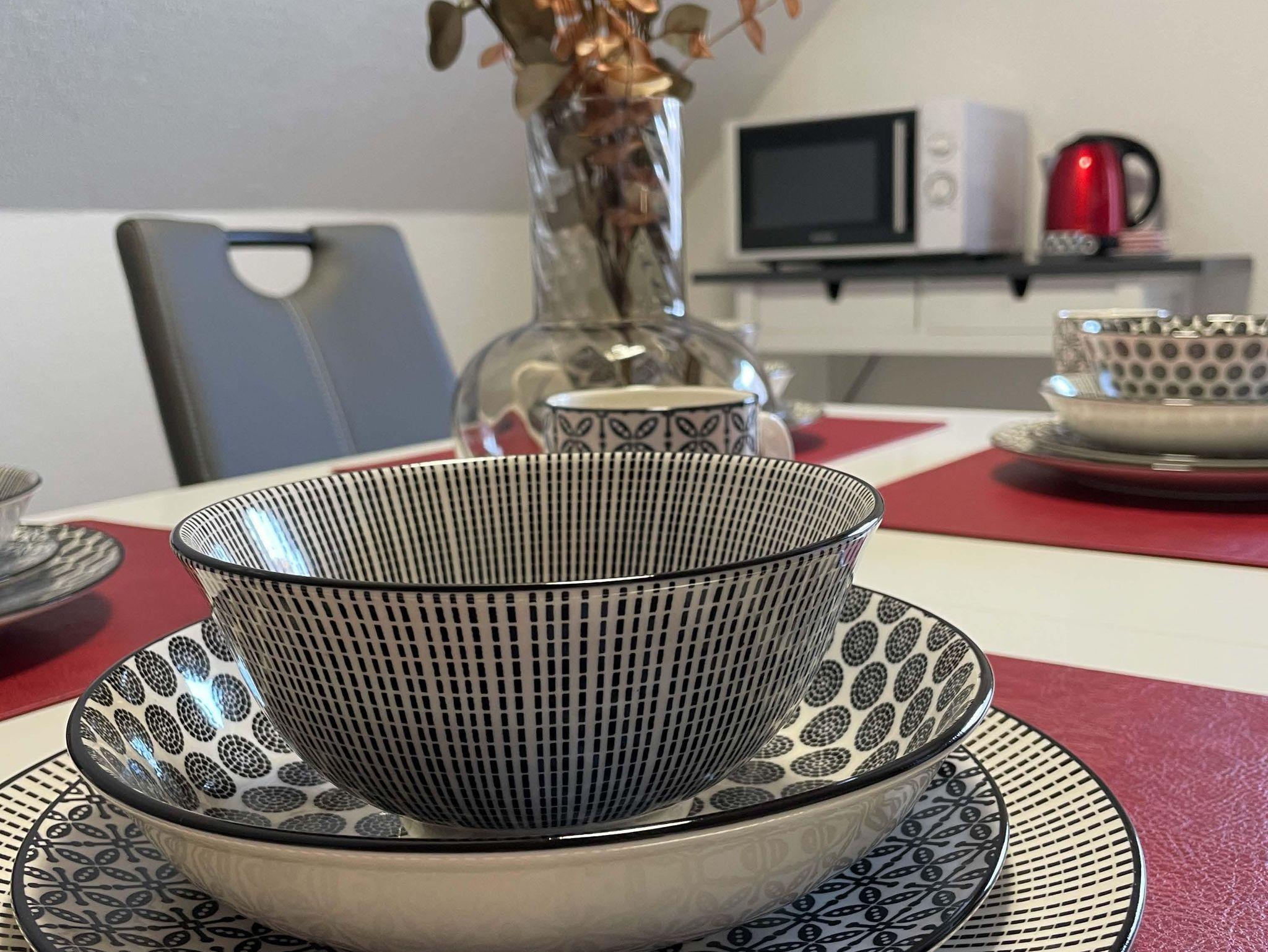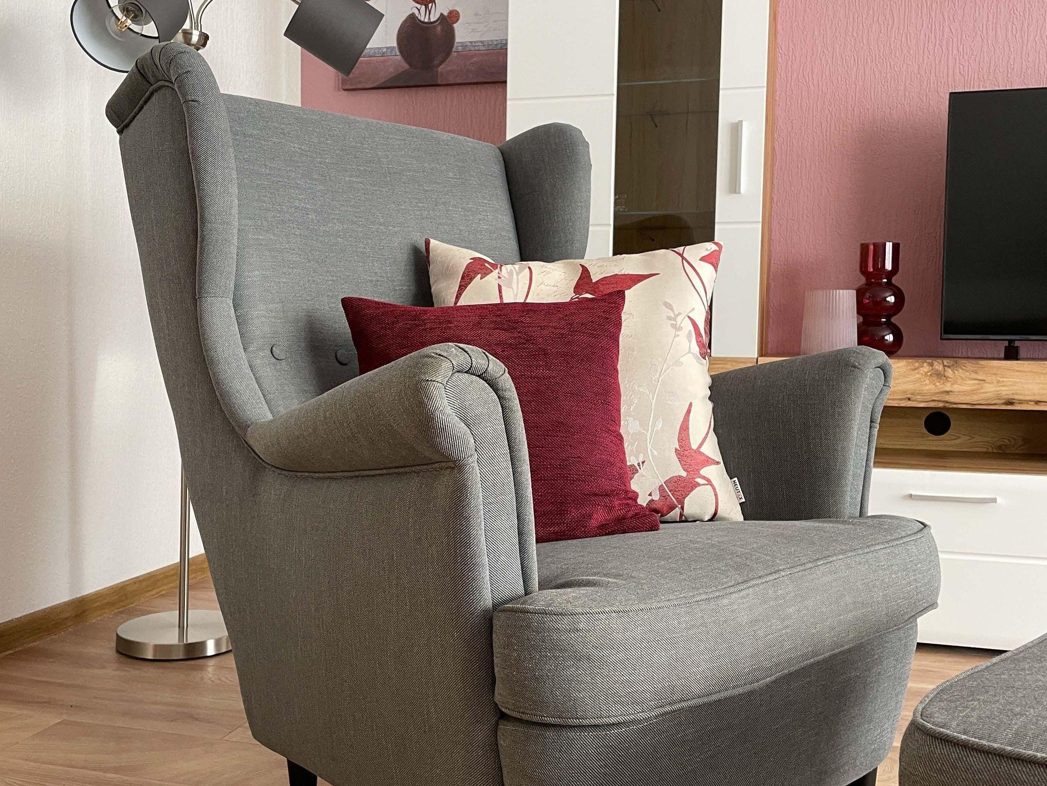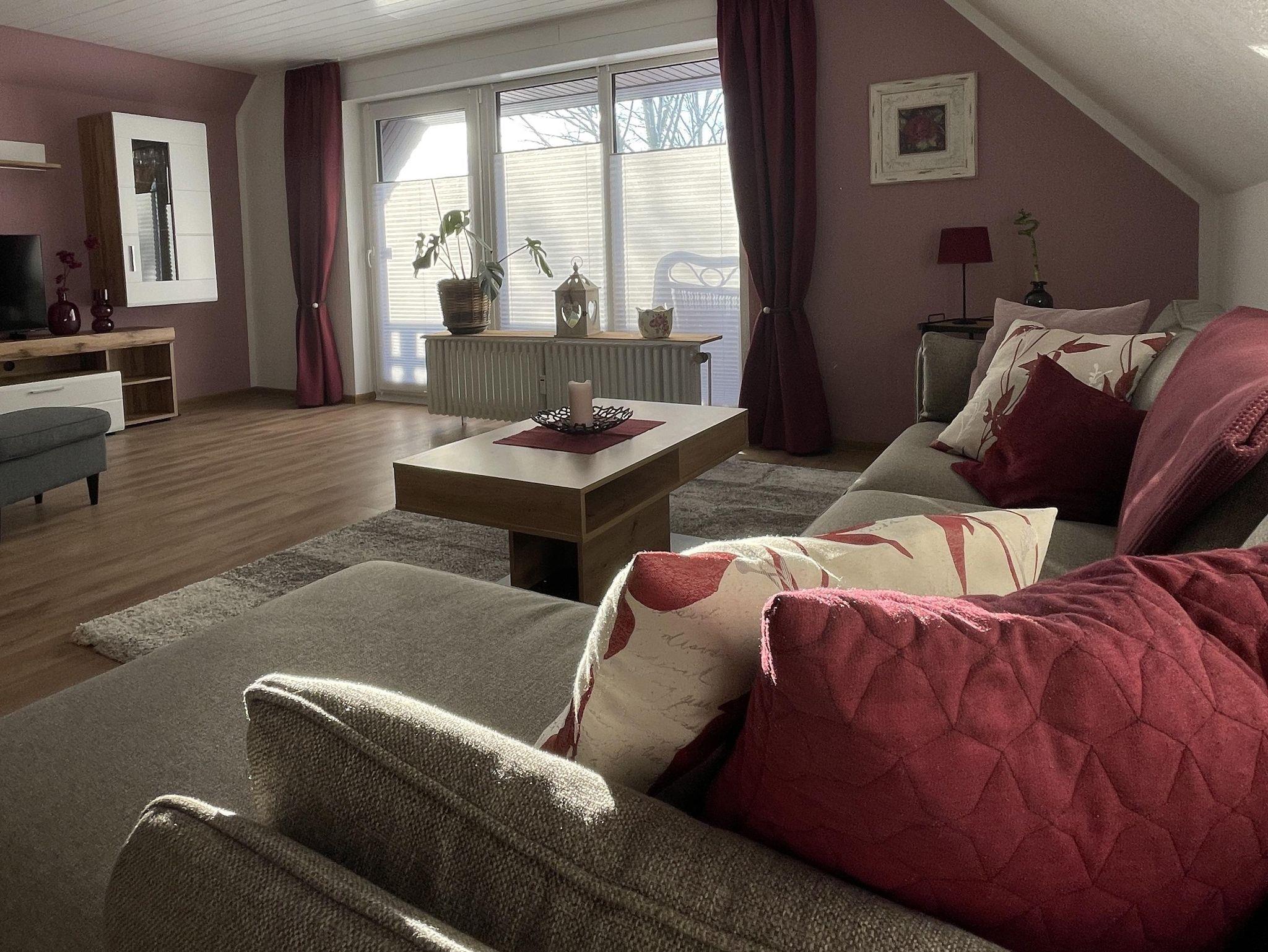Die modern und mit viel Liebe zum Detail eingerichtete Ferienwohnung verfügt über eine komplett ausgestattete Küche mit Geschrirrspüler, ein gemütliches Wohnzimmer mit Zugang zur moblierten Loggia, 2 Schlafzimmer mit Doppelbetten (180x200 cm), eine Bad mit Dusche und WC, ein separates Gäste WC eine gemütliche Leseecke sowie einen Abstellraum.