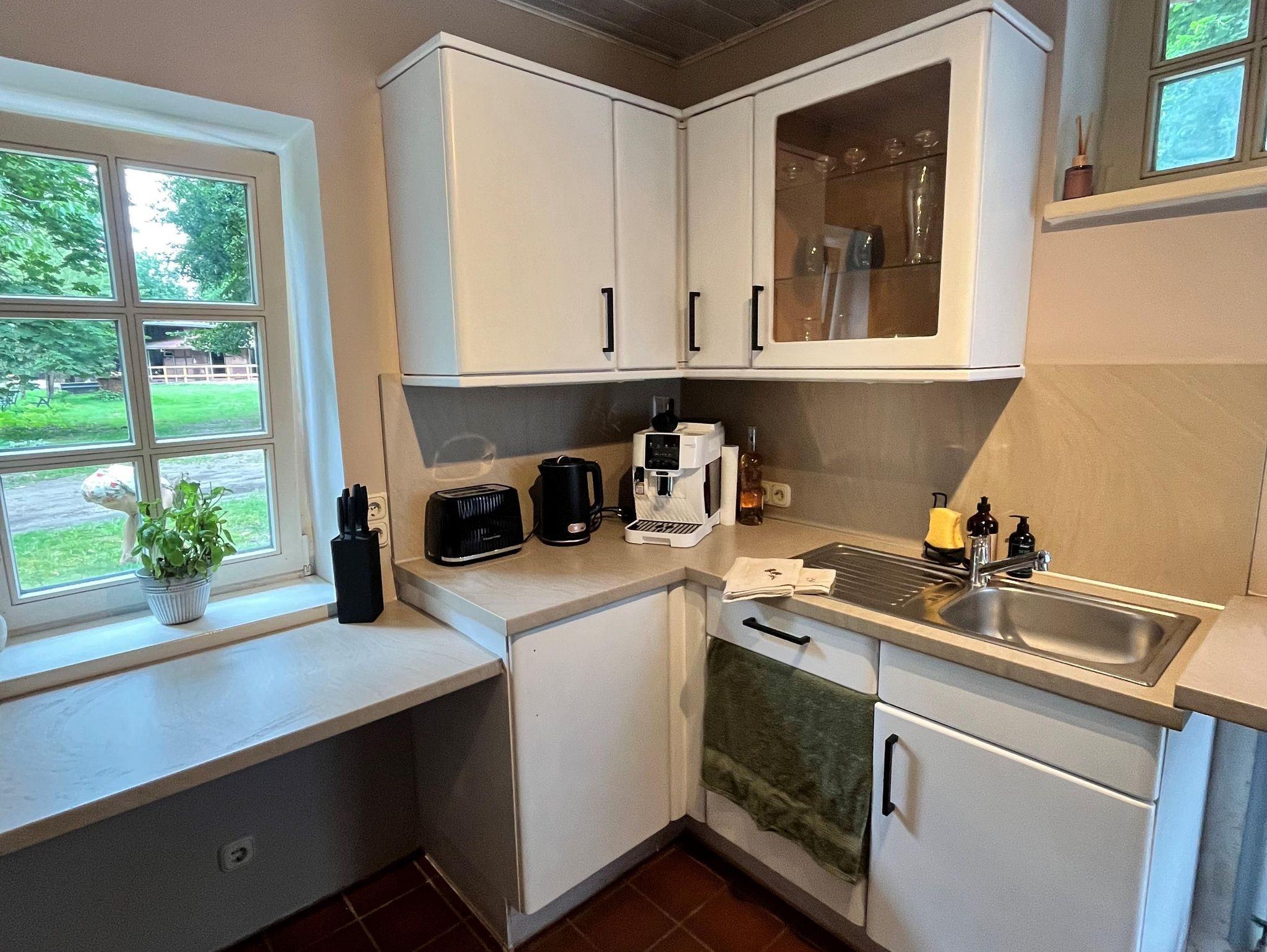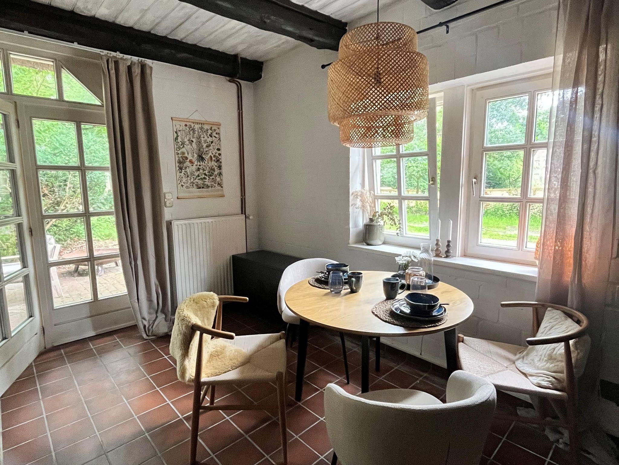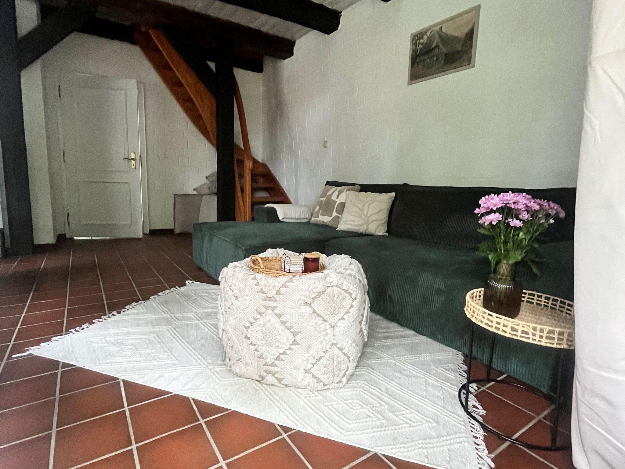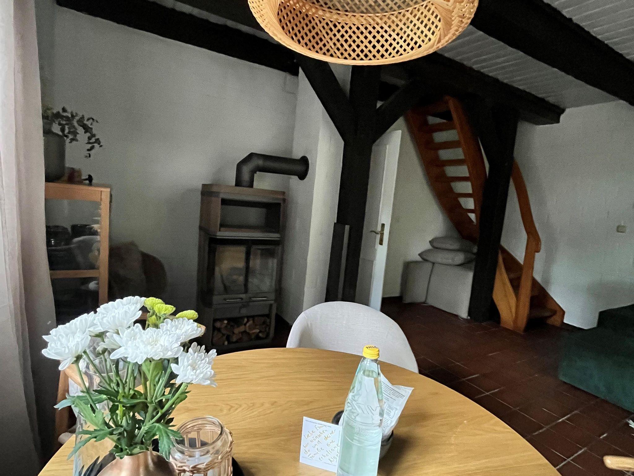 Liebevoll eingerichtetes Ferienhaus mit reetgedecktem Dach. Es verfügt über eine Küche mit Elektogeräten, ein Wohnzimmer mit Essgelegenheit und Zugang zur Terrasse und ein Bad mit Dusche und WC.