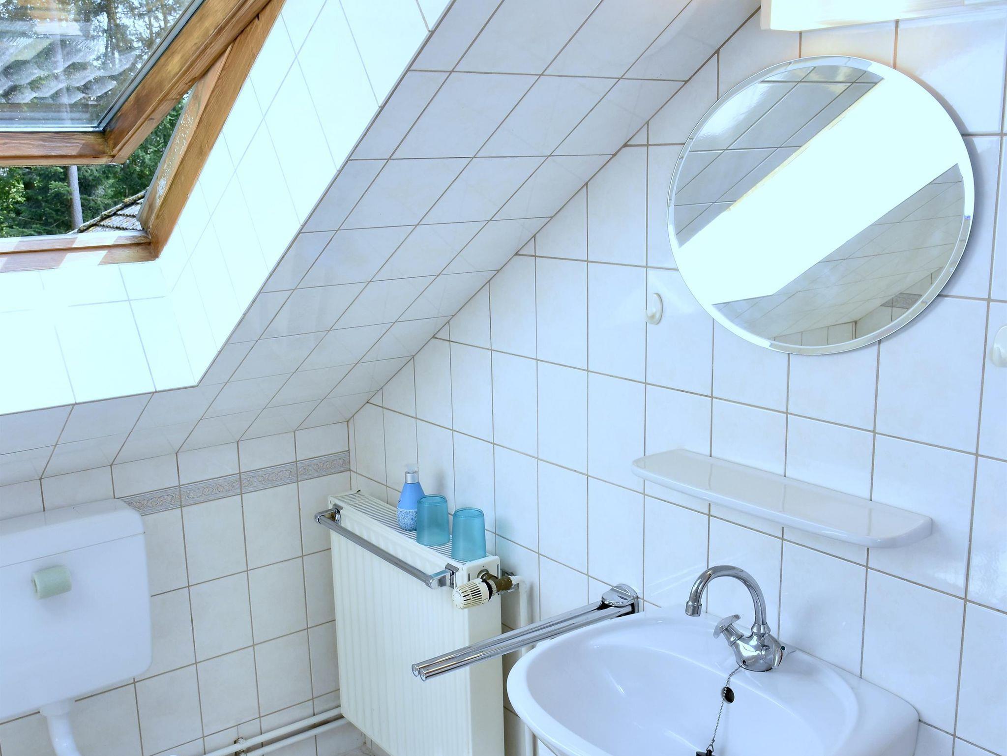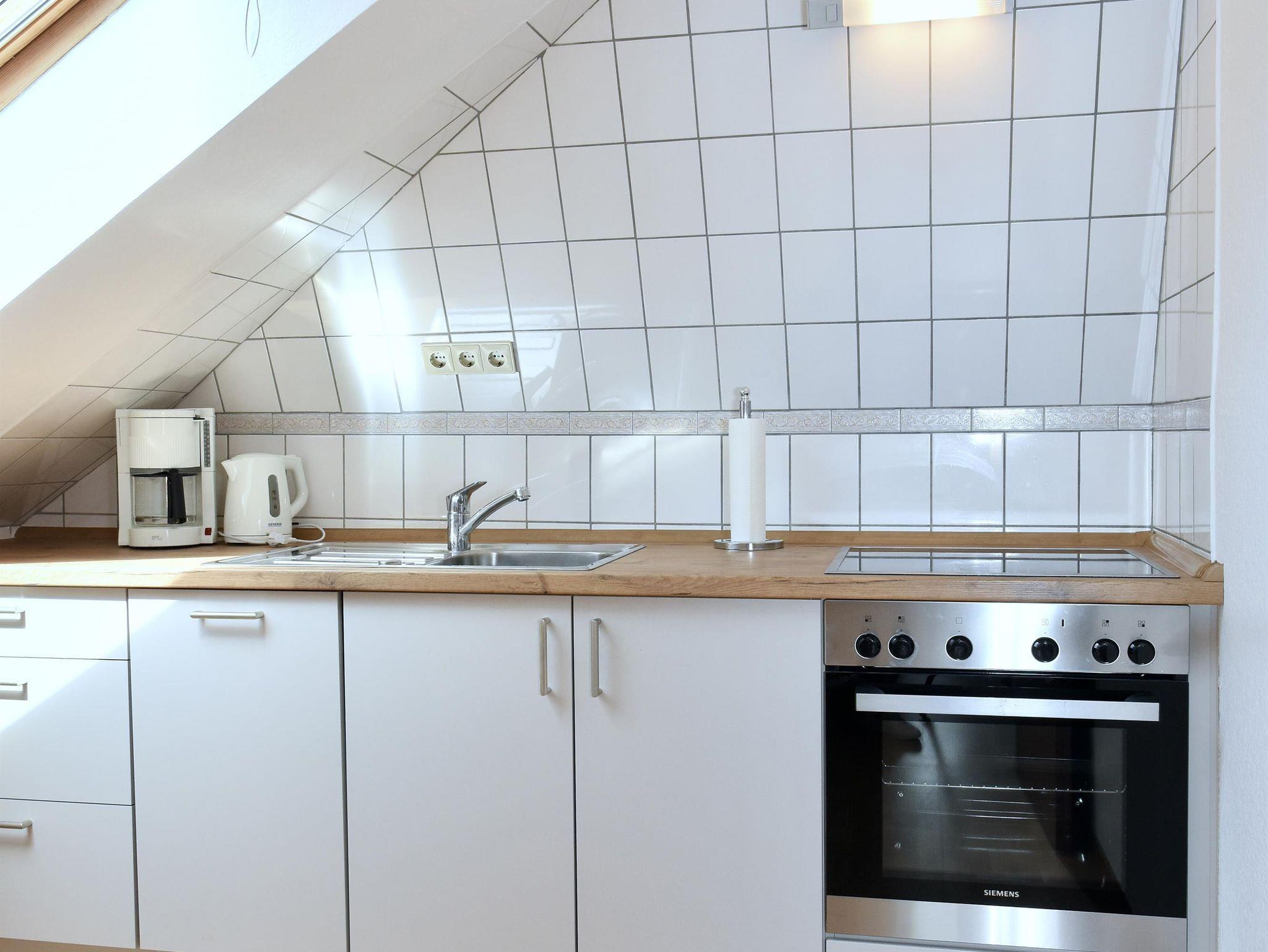 Die 55 m² große Ferienwohnungbefindet sich im Obergeschoss. Sie verfügt über einen Wohn - und Schlafraum, eine Küche sowie ein Bad mit Dusche und WC.