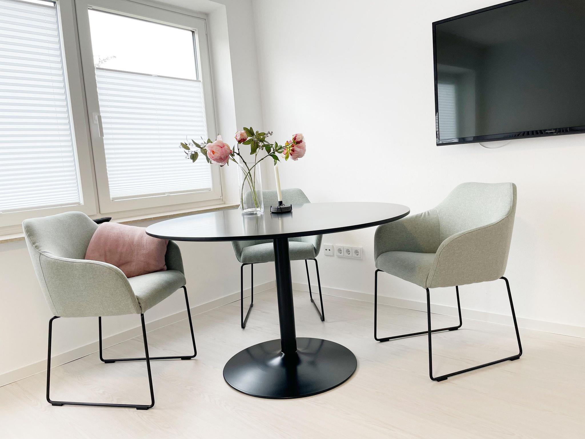 Die 80 m² große Ferienwohnung ist hell und modern eingerichtet und für bis zu 3 Personen ausgestattet.