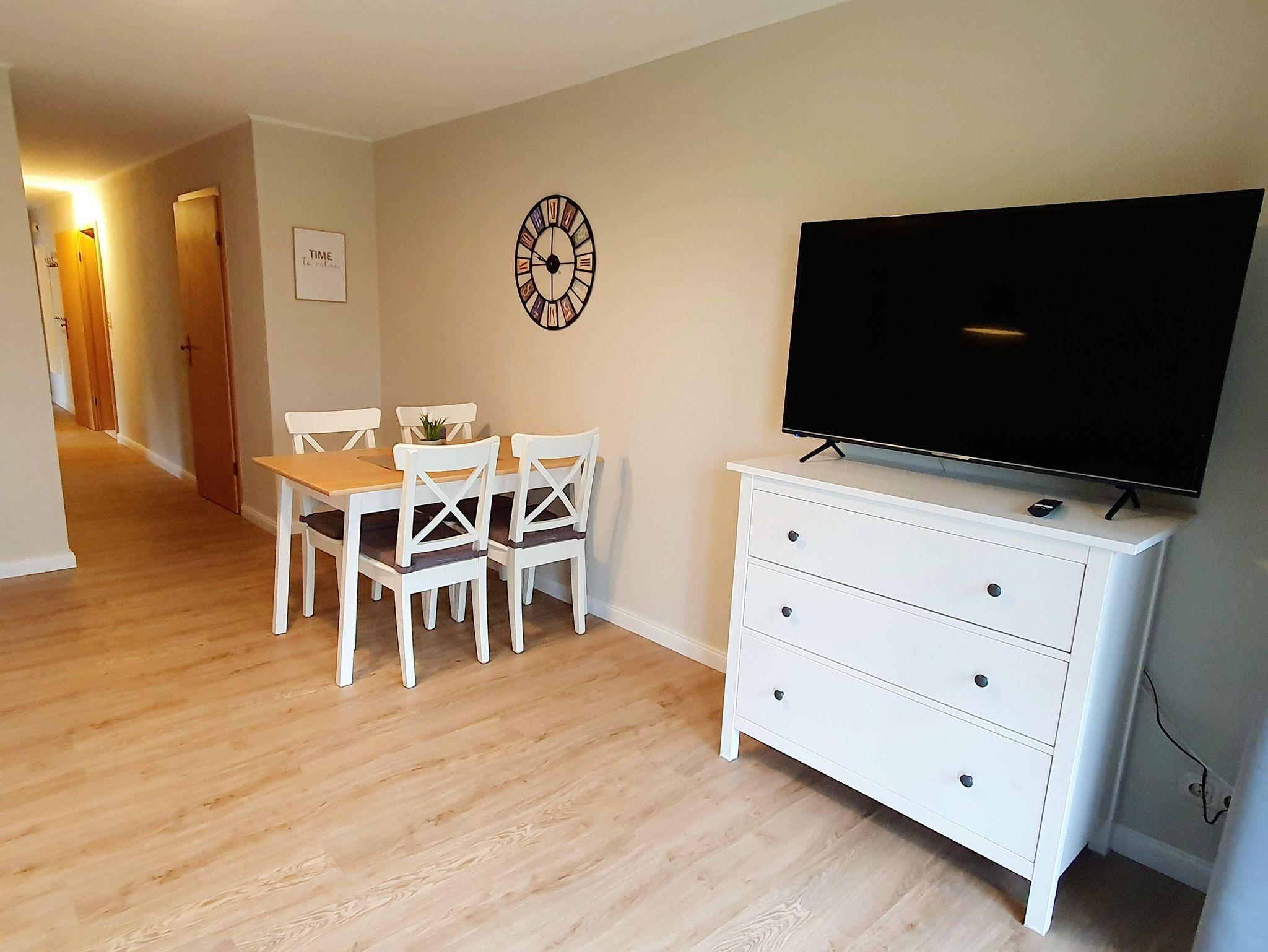 • Wohnzimmer mit gemütlicher Sitzecke, Smart TV und Bluetooth Radio