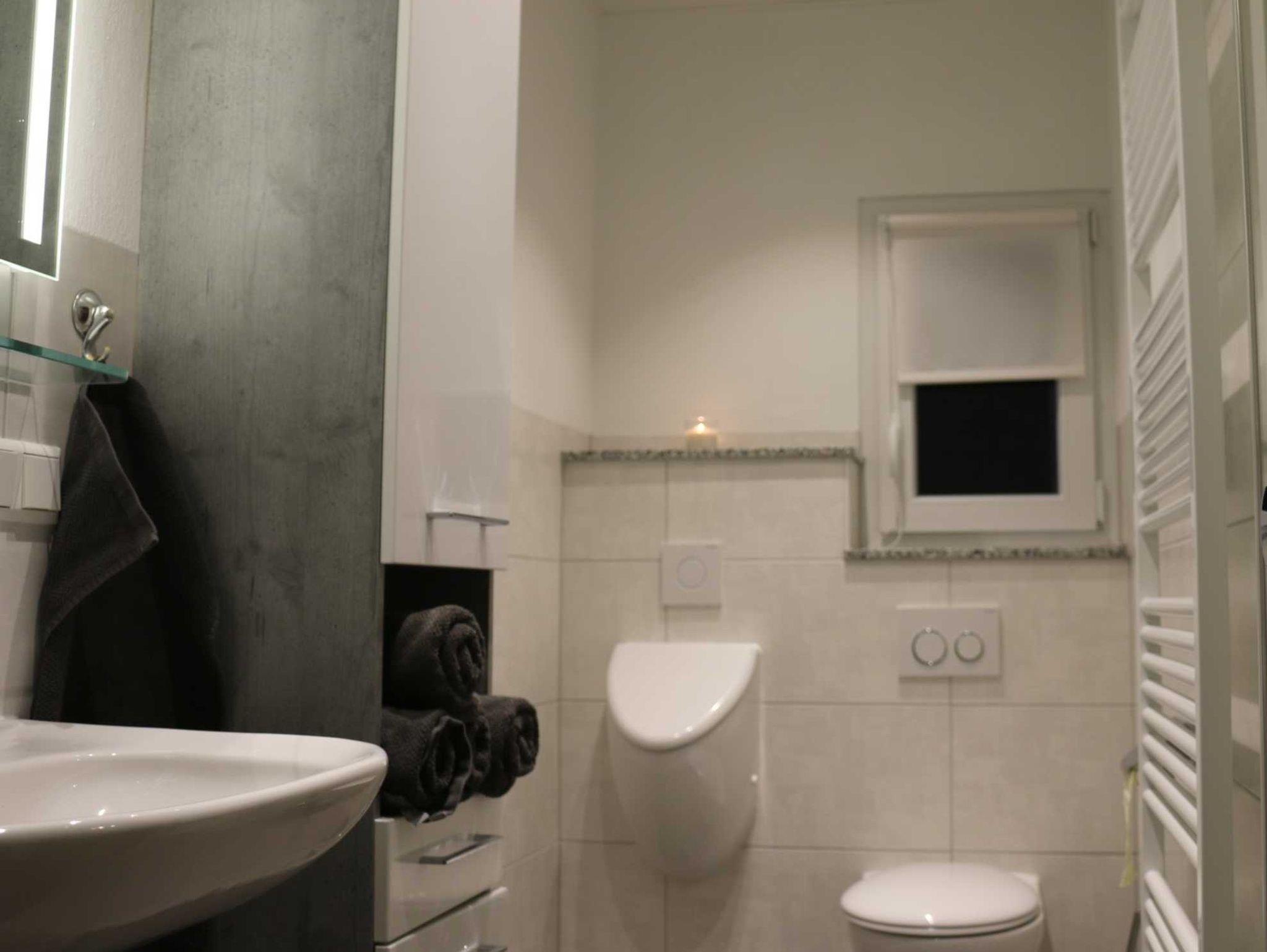 Die Ferienwohnung mit 70qm für 2-5 Personen ist komplett und stilvoll eingerichtet und umfasst 2 Schlafzimmer, 1 Wohnzimmer mit gemütlichem Kachelofen und zusätzlicher Schlafcouch, 1 Küche sowie Dusche, Bad und WC. Zur Ausstatung gehören auch ein SAT-Fernsehgerät, eine Waschmaschine, Geschirr und Bettwäsche. In unmittelbarer Nähe zur Wohnung stehen eine Tischtennisplatte, ein Grill sowie eine Liegewiese zur Verfügung. Vor Ort fällt eine Kurtaxe in Höhe von 0,50 EUR pro Person pro Tag an. Kinder von 0-13 Jahren zahlen keine Kurtaxe.