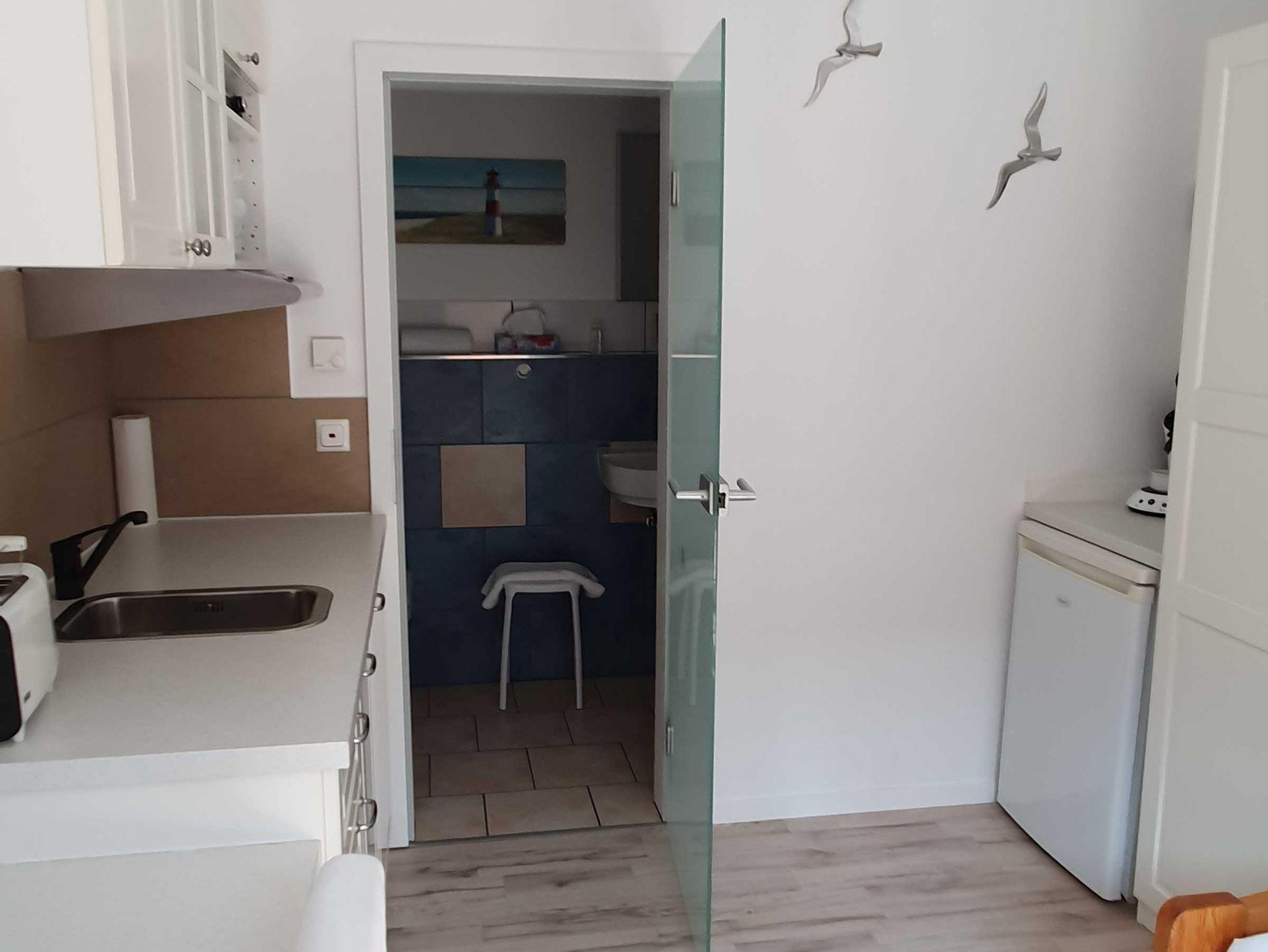 Apartment für 1 Person , mit Sitzgelegenheit/Schreibtisch, Küchenzeile , Flat TV, WLAN in einem Raum, separates Bad mit großer Dusche. Eigener Eingang mit Zutritt in den Garten