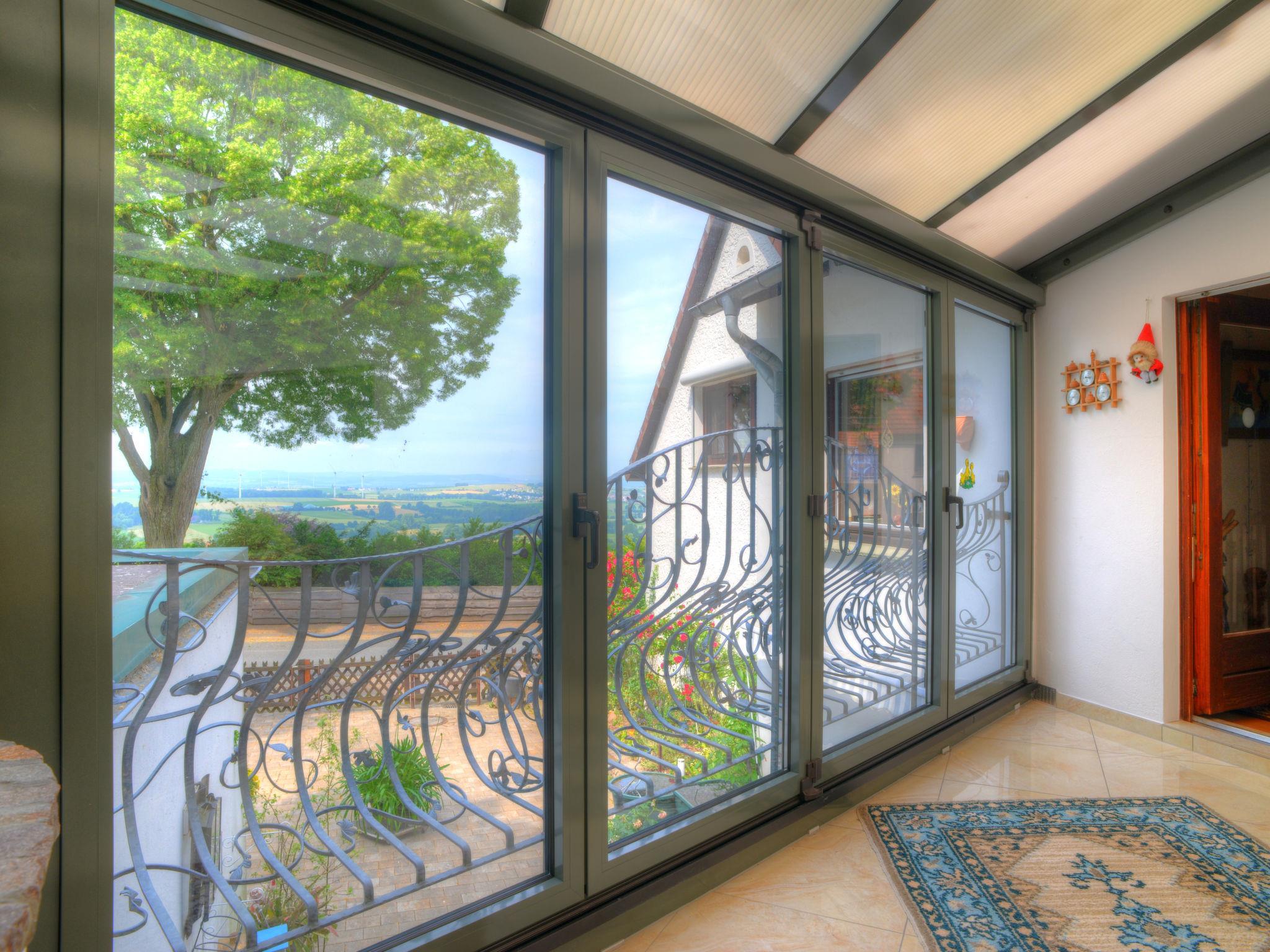 "Am Dohlenberg + Steintisch", 3-room apartment 127 m2 on 2 levels. Cosy and wooden furniture furnishings: living/sleeping room 27 m2 with 1 double bed (200 cm, length 200 cm), satellite TV (flat screen). Exit to the terrace. Kitchen 9 m2 (4 hot plates, oven, microwave, electric coffee machine) with dining table. Shower/WC. Upper floor: living/dining room with satellite TV (flat screen). 1 room with 1 double bed (200 cm, length 200 cm). Open kitchen (oven, dishwasher, 4 ceramic glass hob hotplates, electric coffee machine) with tiled stove. Bath/shower/WC. Large terrace 70 m2. Terrace furniture, barbecue (portable), deck chairs (2), conservatory. Facilities: iron, hair dryer, logs (free). Internet (WiFi, free). Please note: non-smokers only. Maximum 1 pet/ dog allowed. Private entrance, smoke alarm, fire extinguisher. No internal connecting door between the floors.