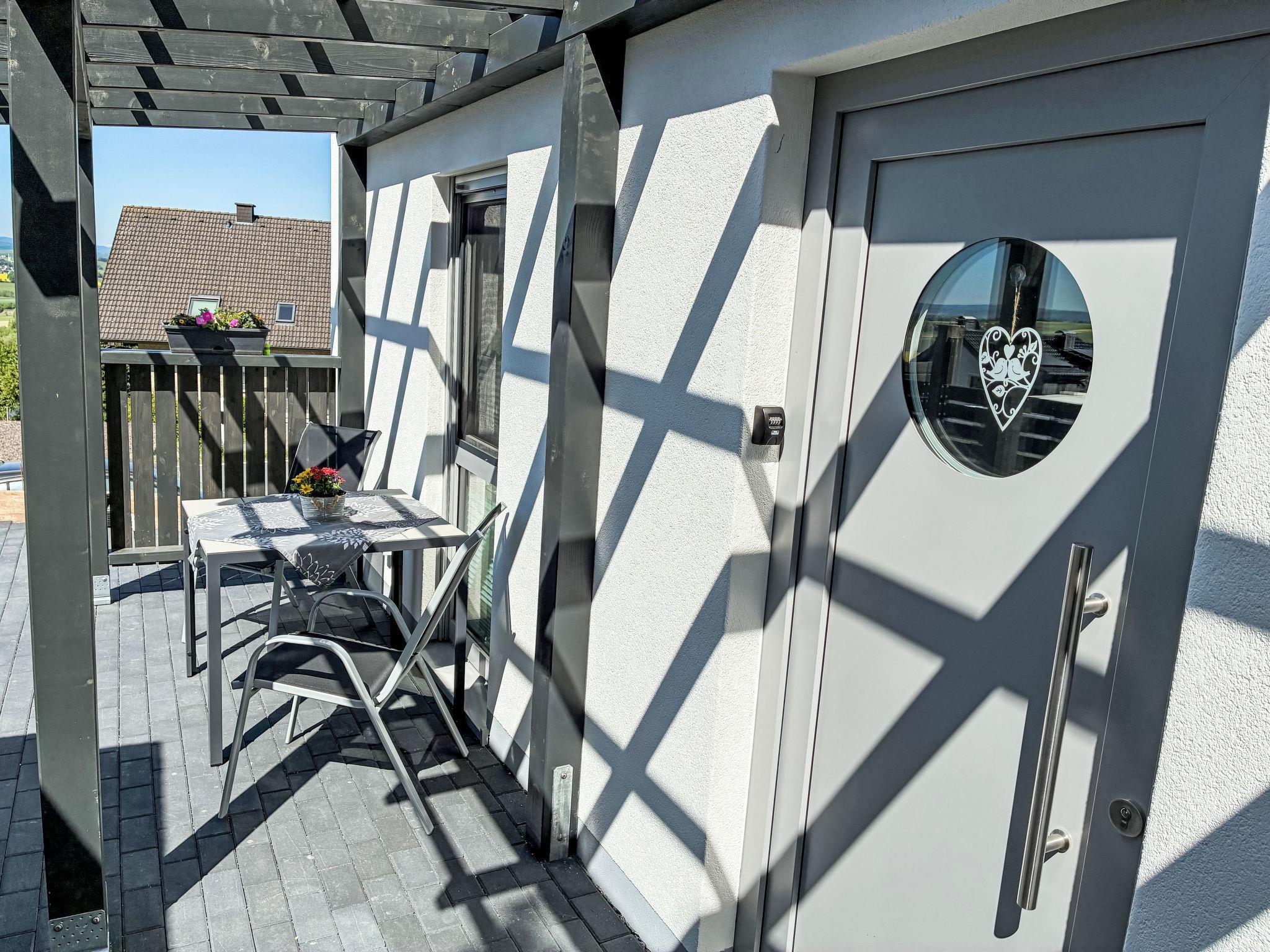 Modern 2-family house "Engel-Landeplatz", built in 2025. On the outskirts, 500 m from the centre of Schwalenberg, in a sunny, elevated position on a slope, in the residential district. Parking at the house. E-charging station. Supermarket 400 m, restaurant 500 m, bus stop 400 m, railway station "Schieder-Schwalenberg" 5 km, outdoor swimming pool 5 km, indoor swimming pool 10 km. Golf course (18 hole) 12 km, children's playground 400 m, fishing possibilities 5 km. Please note: the owner lives in the same residence.