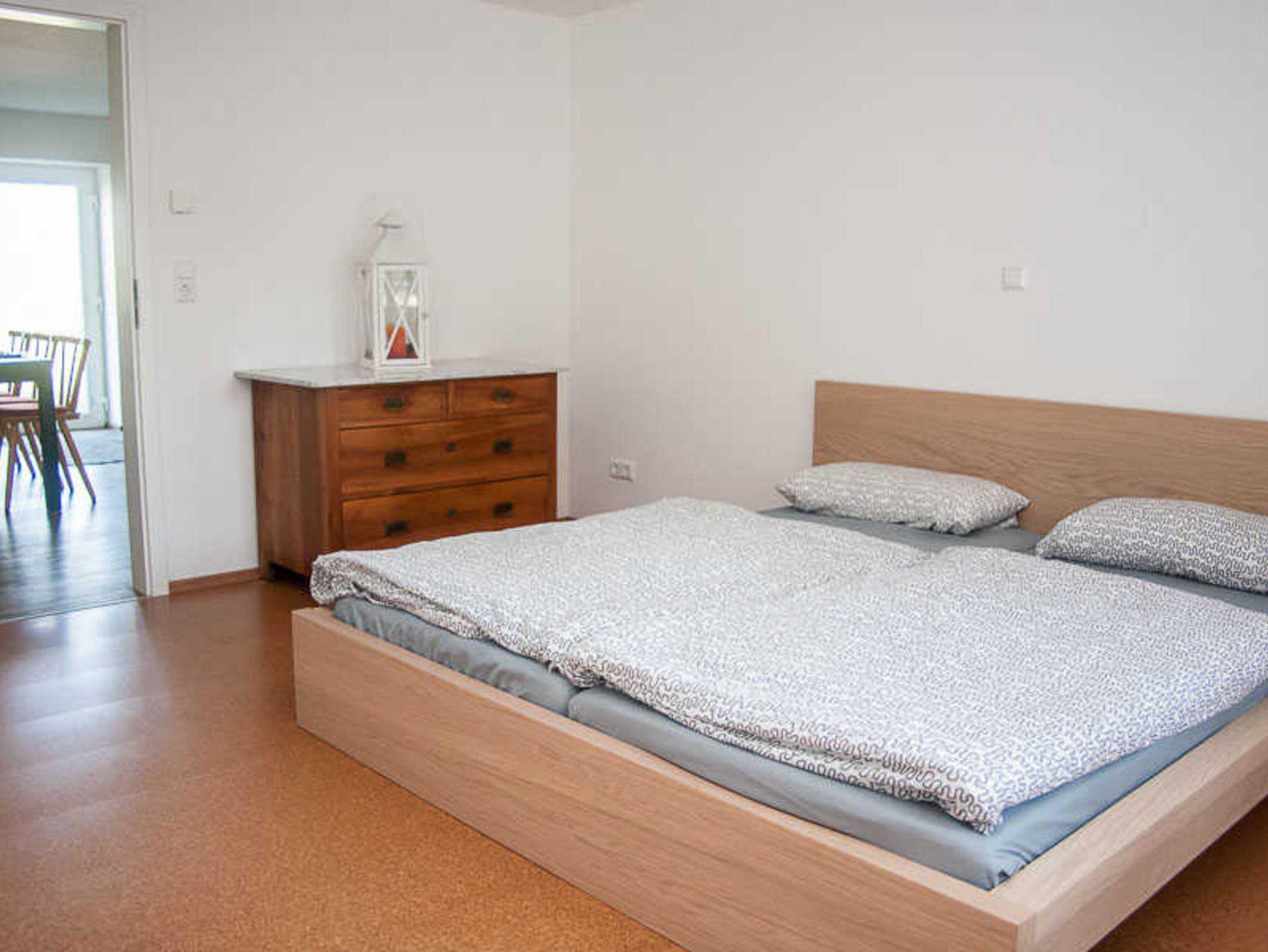Helle Ferienwohnung barrierefrei mit Außensitzplatz und direktem Blick in die Natur. 3 helle, großzügige Zimmer bieten insgesamt 7 Personen Schlafmöglichkeit.