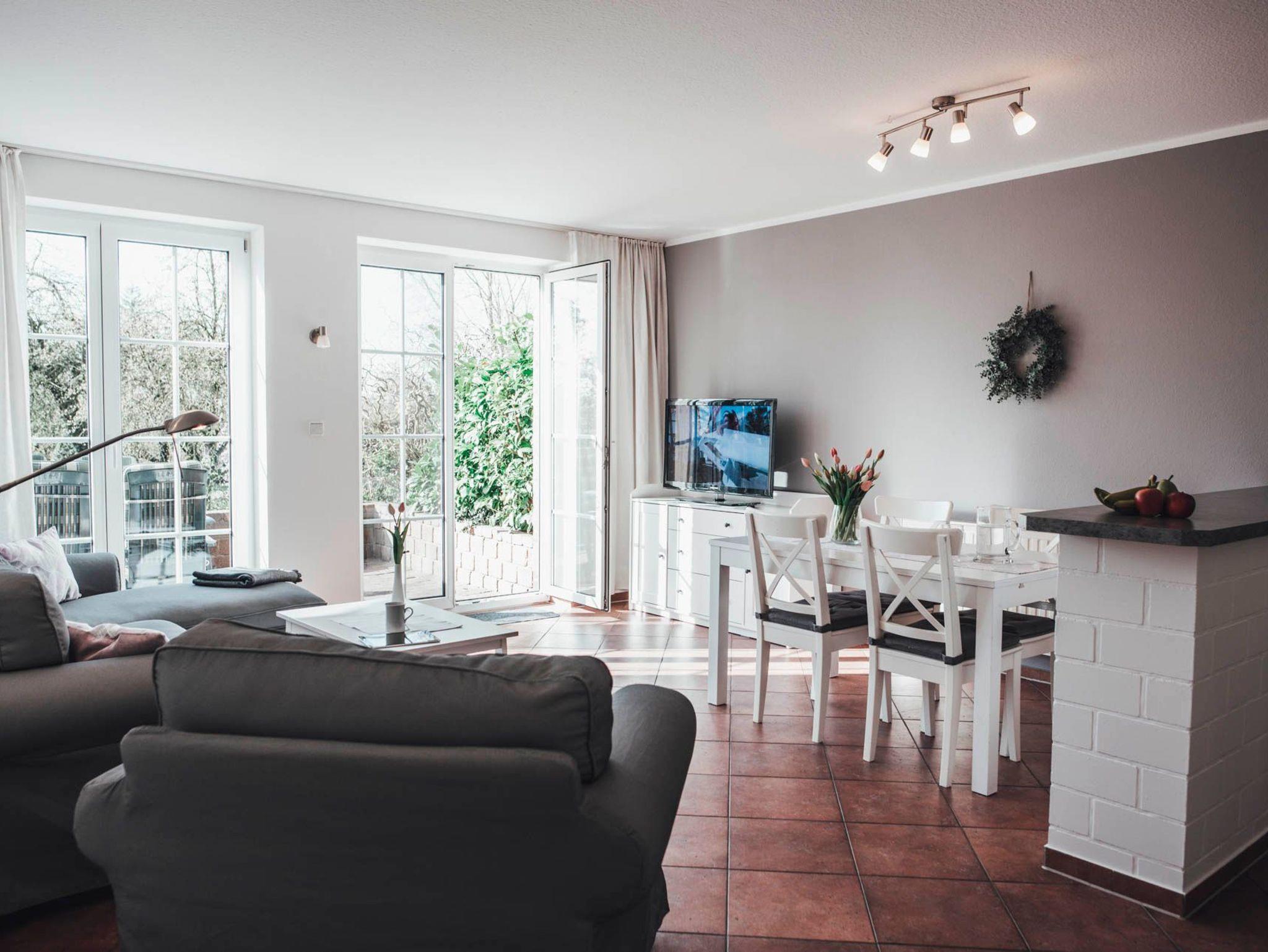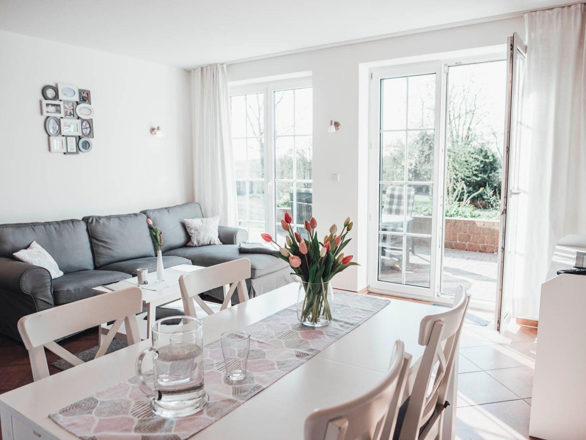 Die 68m² große Lilienwohnung befindet sich im Erdgeschoss und ist barrierefrei. Über die Terrasse kann man direkt in den großen Bauerngarten gelangen. Die Wohnung hat einen großen Wohnbereich mit voll ausgestatteter Küche. Es gibt zwei Schlafzimmer mit jeweils zwei Betten. Bettwäsche, Handtücher und Endreinigung sind im Preis enthalten. WLAN steht kostenfrei zur Verfügung. Alle Wohnungen sind Nichtraucherwohnungen. Gerne stellen wir bei Bedarf Babybett und Hochstuhl bereit. Haustiere sind auf Anfrage möglich. Im Februar 2022 haben wir die Wohnung renoviert und mit neuen Möbeln ausgestattet.
