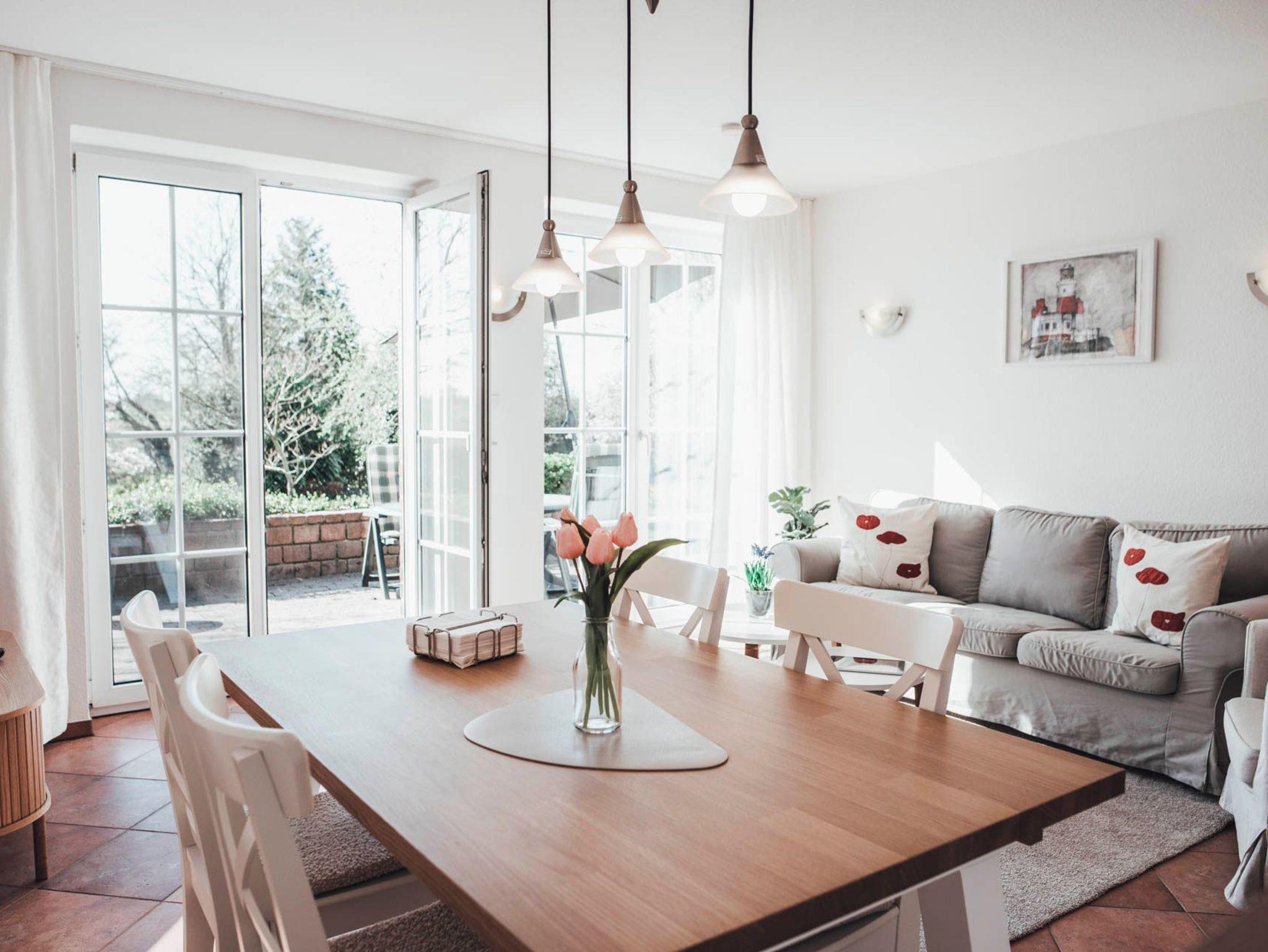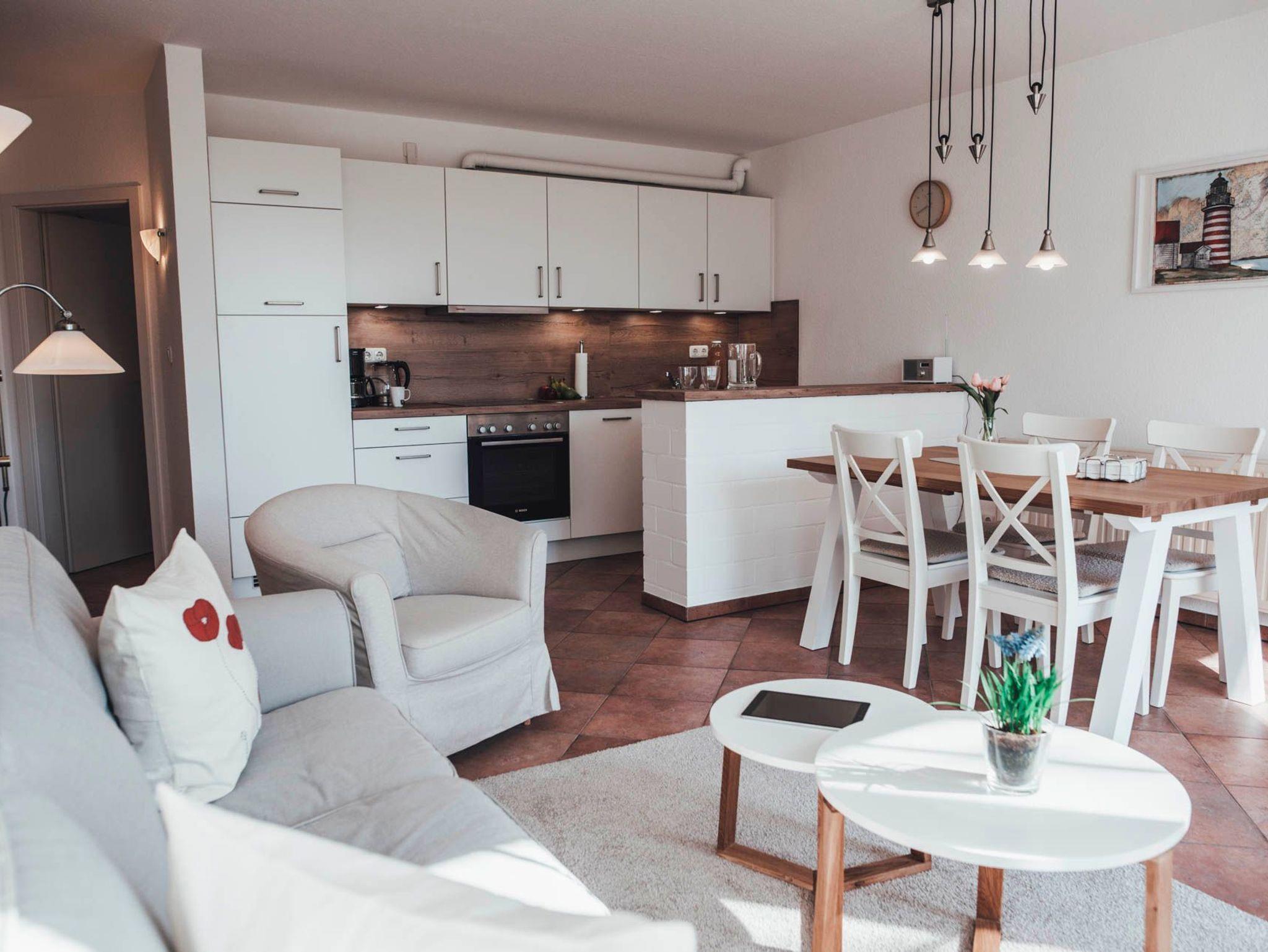 Die 68m² große Mohnwohnung wurde 2025 renoviert und neu möbliert. Es wurde auch eine neue Küche eingebaut. Die Mohnwohnung befindet sich im Erdgeschoss und ist barrierefrei. Über die Terrasse kann man direkt in den großen Bauerngarten gelangen. Die Wohnung hat einen großen Wohn- und Essbereich mit voll ausgestatteter Küche. Es gibt zwei Schlafzimmer mit jeweils zwei Betten. Bettwäsche, Handtücher und Endreinigung sind im Preis enthalten. WLAN steht kostenfrei zur Verfügung. Alle Wohnungen sind Nichtraucherwohnungen. Gerne stellen wir bei Bedarf Babybett und Hochstuhl bereit. Haustiere sind auf Anfrage möglich.