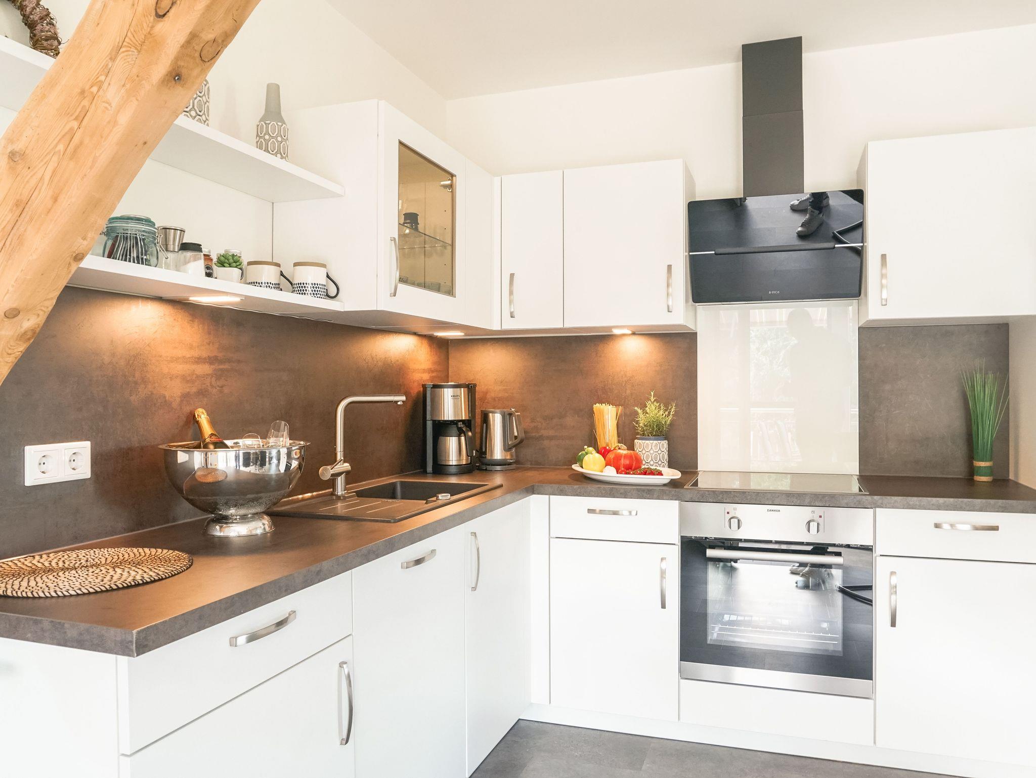 Modern und komfortabel. So präsentiert sich Wohnung Nr. 5 im Obergeschoss. Auch hier genießen Sie alle Vorzüge unserer großzügigen Wohnungen. Auf insgesamt 70m² finden Sie hier Ruhe und Entspannung. Der 40m² große Wohn- und Essbereich lädt mit gemütlichen Möbeln und der vollausgestatteten Küche zum Kochen und verweilen ein.