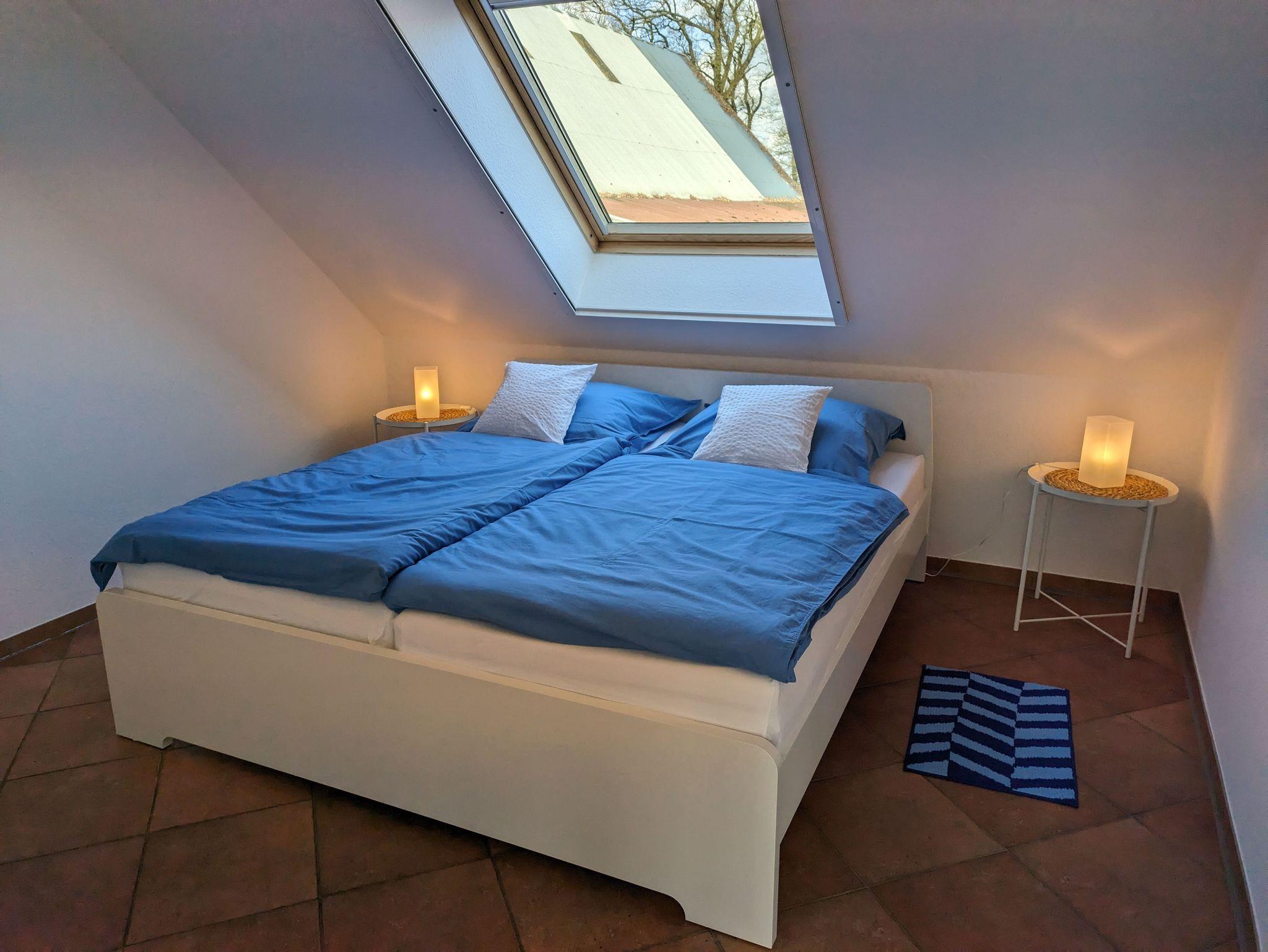 Die 76m² große Kastanienwohnung ist in der ersten Etage und bietet einen tollen Ausblick in den großen Bauerngarten und die Weiten der Marsch. Die Wohnung umfasst einen geräumigen Wohnbereich mit voll ausgestatteter Küche, 2 Schlafzimmer und ein großes Badezimmer mit Dusche. Im Schlafzimmer 1 gibt es ein Ehebett (180x200). Im Schalfzimmer 2 stehen 2 Einzelbetten (90x200) und ein Schlafsofa (130x190), so dass die Wohnung mit bis zu 6 Personen bewohnt werden kann. Im Schalfzimmer 2 haben wir auch einen kleinen Arbeitsplatz geschaffen. Die Kastanienwohnung wurde im März 2024 komplett renoviert und neu eingerichtet.