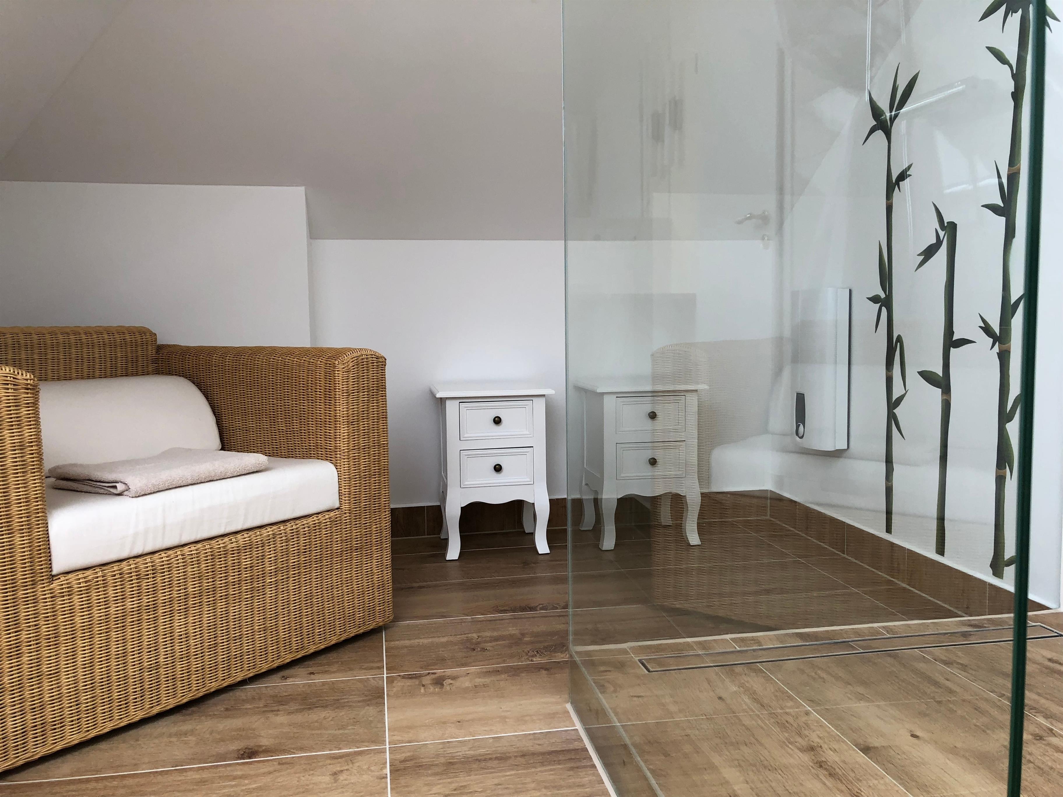Bei Belegung der FeWo mit nur 2 Personen, kann das zweite Schlafzimmer mit separater Dusche & WC sowie Sitzgruppe gegen einen Aufpreis von 15.-Euro pro Nacht zugebucht werden (z. B. Schnarcher).