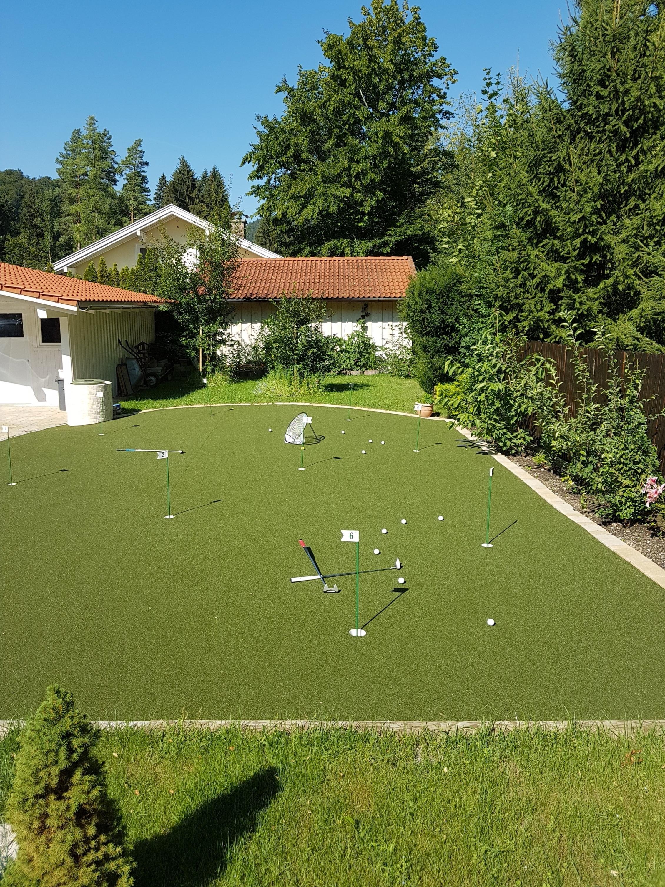 Das 70 m² 9-Loch Kunstrasen-Puttinggreen kann mit eigener Ausrüstung kostenfrei genutzt werden.