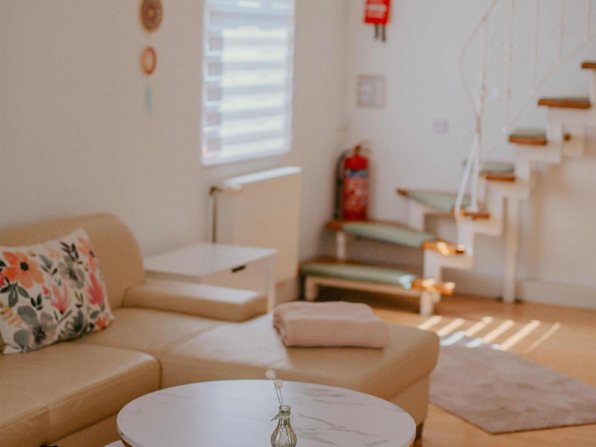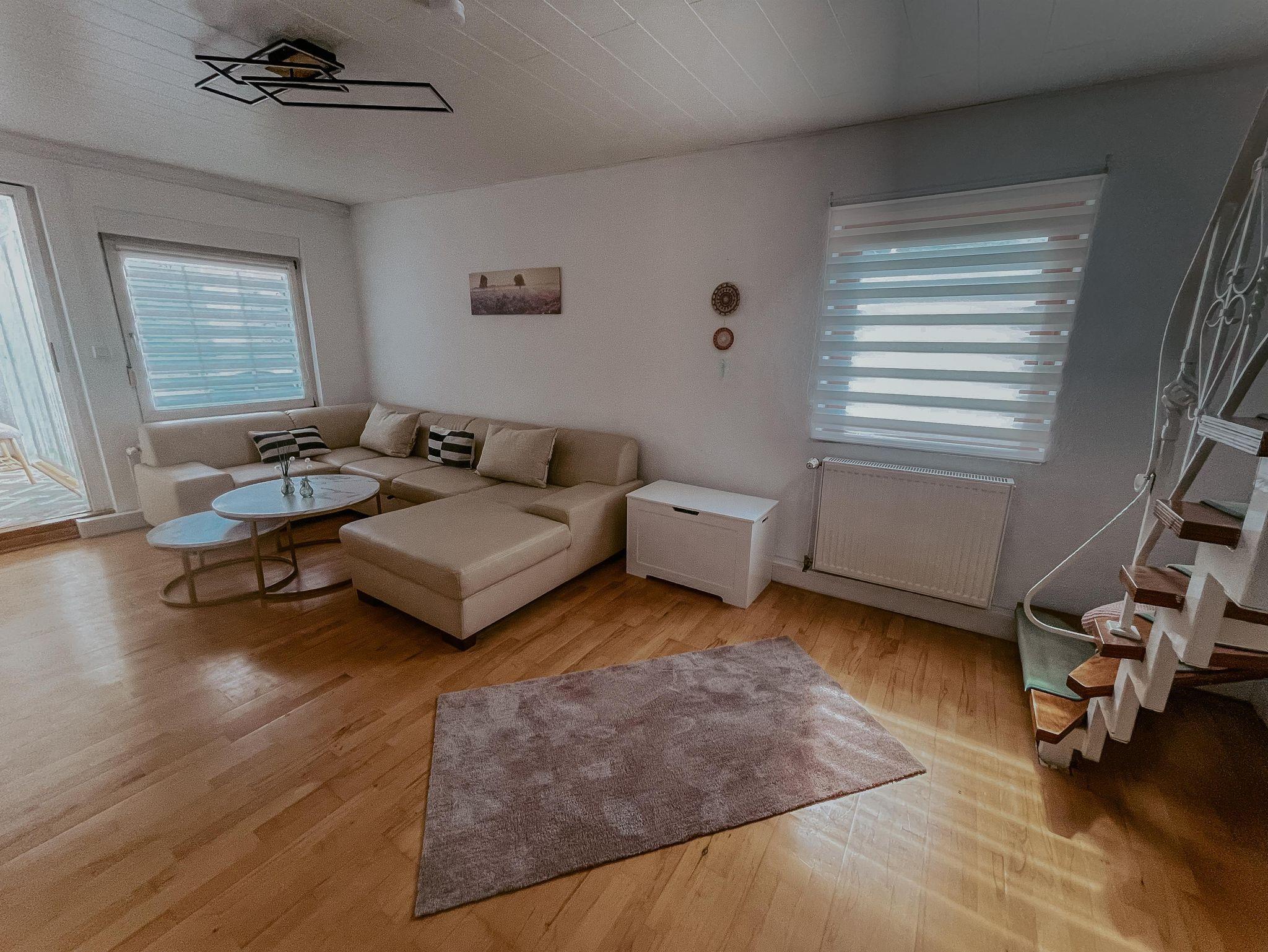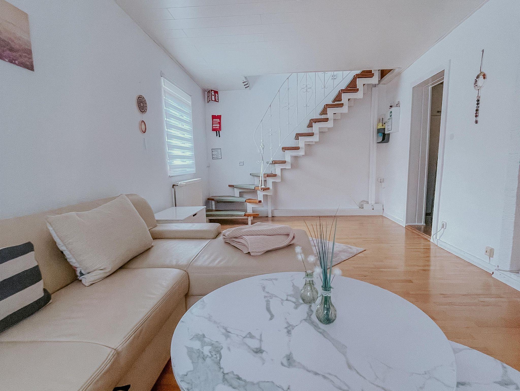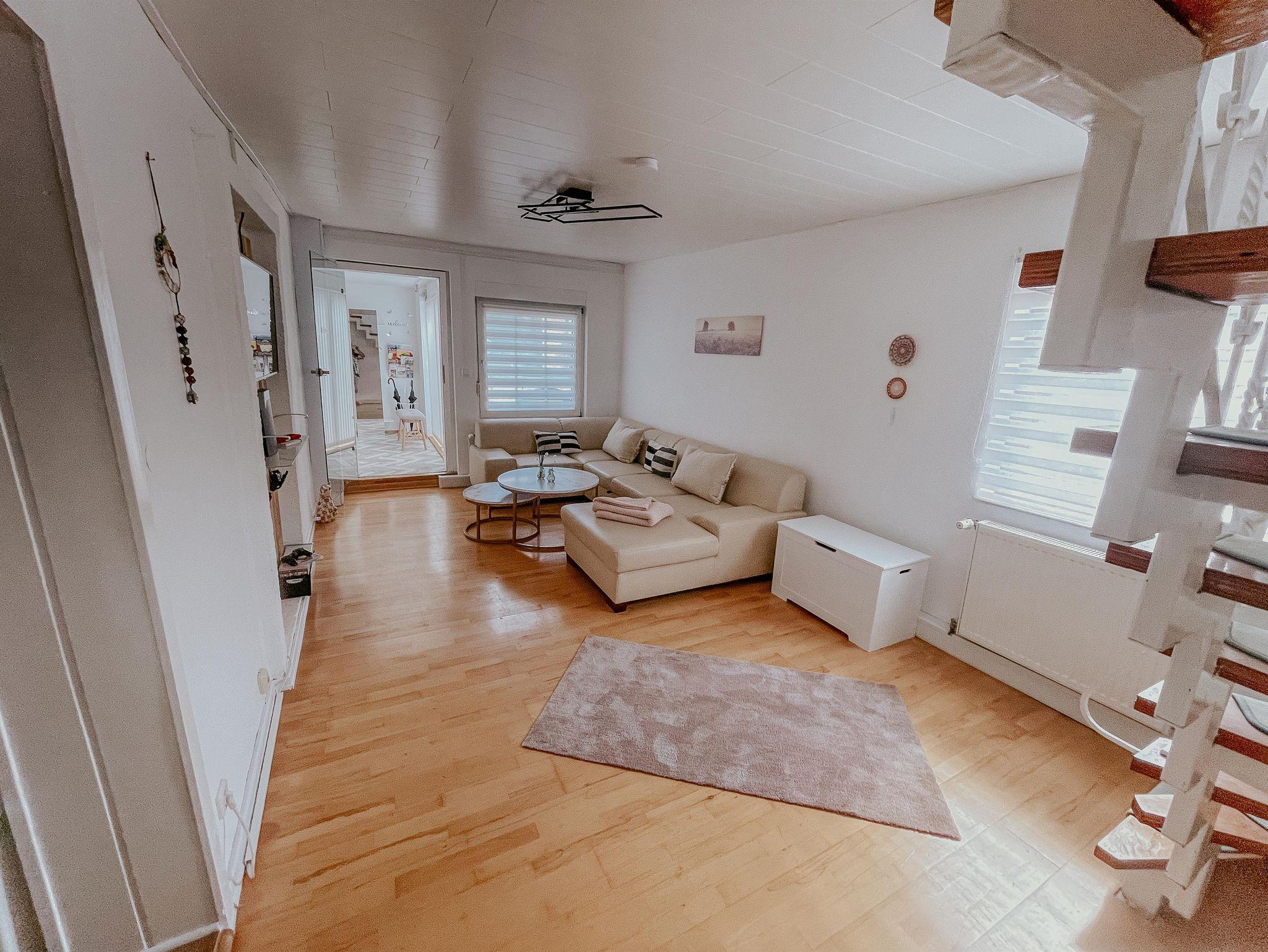 Durch die Glastür gelangt Ihr ins Wohnzimmer, welches mit Playstation und zahlreichen Spielen ausgestattet ist. Ebenfalls findet Ihr dort unsere große Spielbox für gemütliche gemeinsame Abende mit Ihren Freunden/Familie. Das Wohnzimmer verfügt über eine Schlafcouch. Sie kann mit wenigen Handgriffen in ein Bett umgebaut werden. Ebenfalls findet Ihr hier ein Gästebett vor. Kabelfernsehen, Netflix, & Disney dürfen für gemütliche Abende ebenso nicht fehlen.