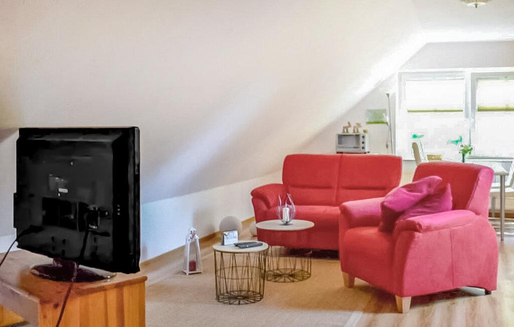 Ferielejligheden er beliggende på øverste etage i en beboelsesejendom på ejerens 3.000 kvadratmeter store velholdte boligejendom med rolig beliggenhed i udkanten af by og skov. Den er udstyret med: stue (polstrede møbler, opholdsområde, TV, radio/CD, WiFi), åbent tekøkken (keramisk kogeplade, køleskab med fryser, spisebord, elektrisk grill), soveværelse (dobbeltseng), bruser/toilet , insektnet, centralvarme. Til rådighed: møbleret pavillon, grill, cykelkælder, solbadeplads og parkeringsplads. Husdyr er ikke tilladt (ejeren, distriktsskovfogeden, har selv to (uddannede) jagthunde). Den samlede pris inkluderer sengelinned, håndklæder, vand, energi og slutrengøring Byen Schwarzenhof er pålagt turistskat fra juli 2022. Schwarzenhof er en lille by midt i Müritz Nationalpark, som er et af de vigtigste levesteder for sjældne dyr og planter takket være enorme skovkomplekser, mange små søer, enge og hede. Besøgende kan selv udforske området ved hjælp af det meget veludviklede netværk af cykel- og vandrestier. Guidede udflugter er tilgængelige for dyreliv og fuglevisning. Talrige observationstårne blev skabt til dette formål. Flere bade- og fiskesøer inden for 2 km. Turistcentret i Mecklenburg Lake District, klimakurstedet Waren an der Müritz, ligger cirka 10 km væk. Restaurant i byen, indkøb ca 3 km.