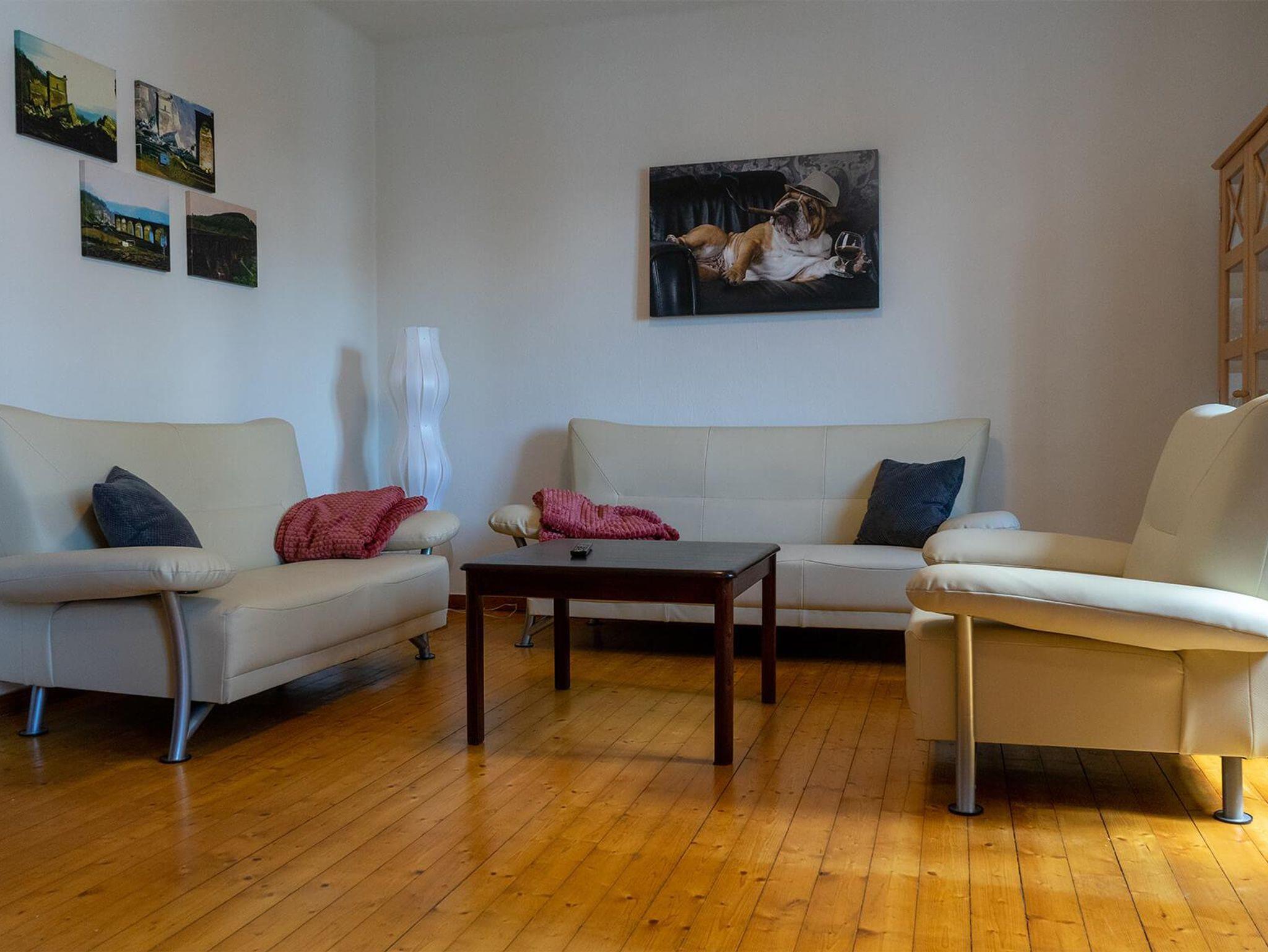 Die voll ausgestattete Küche, Wohn-/Esszimmer und Bad befinden sich in der 1. Etage.