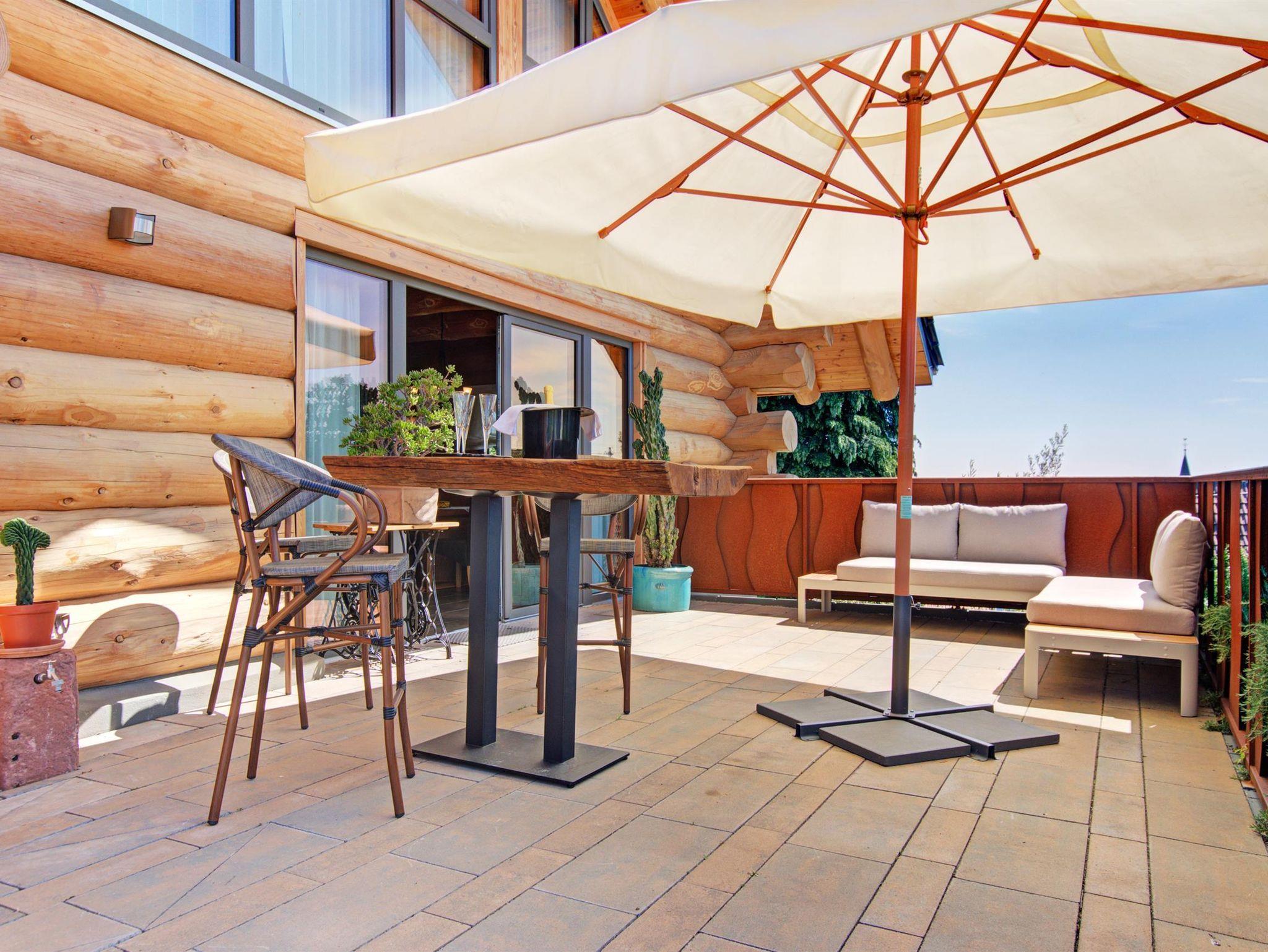 Im Erdgeschoss des Blockhauses bieten wir Ihnen auf 90 qm eine gehobene Ausstattung. Mit der Gestaltung komplett aus Holz, der liebevollen Einrichtung und dem herrlichen Blick ins Grüne fühlt man sich der Natur sehr verbunden. Neben einem Schlafzimmer mit Doppelbett und eigenem Badezimmer finden Sie außerdem eine separate Gästetoilette.