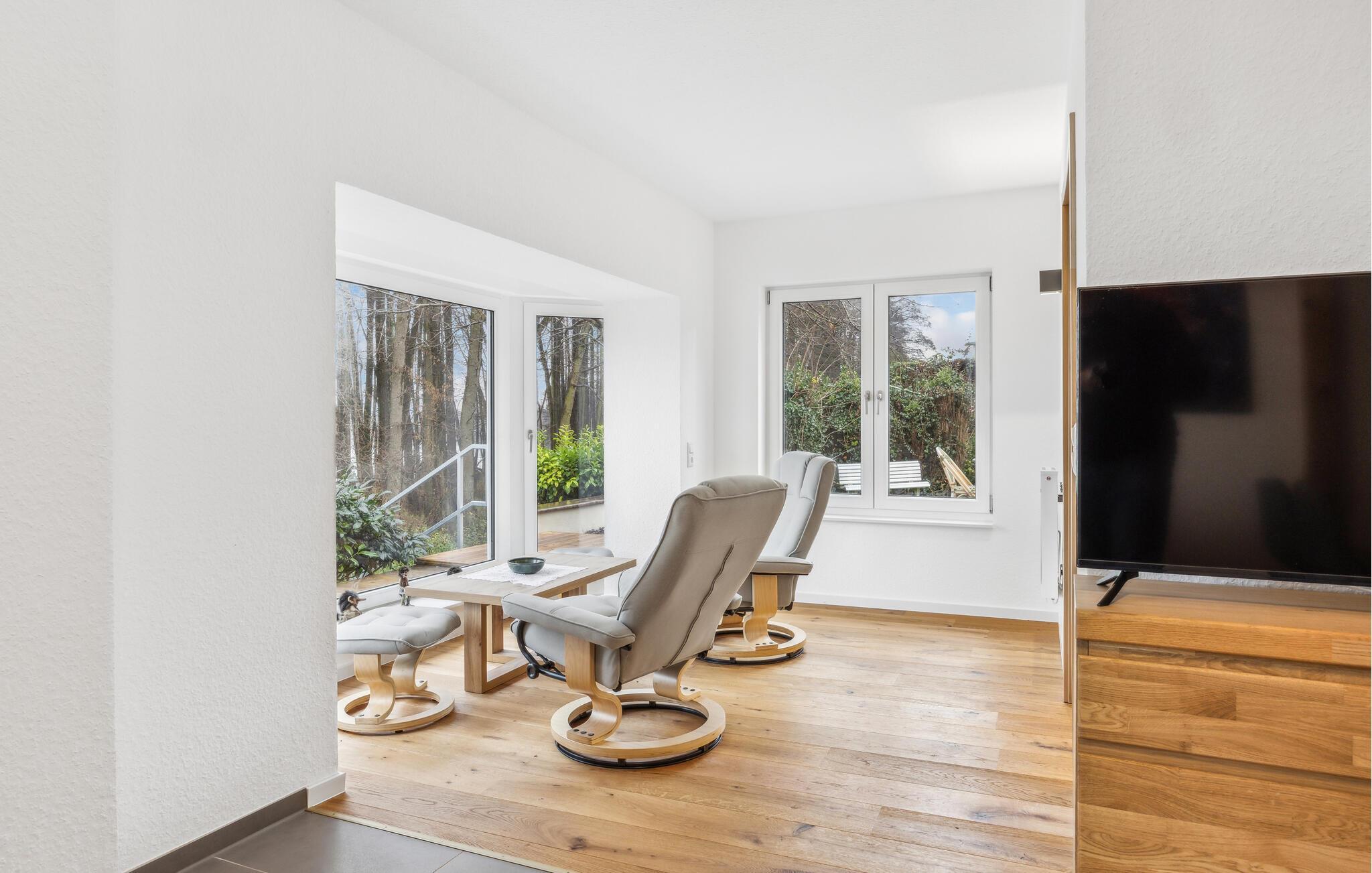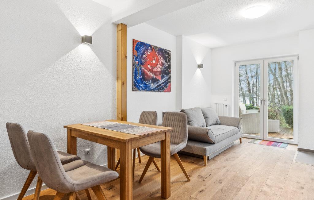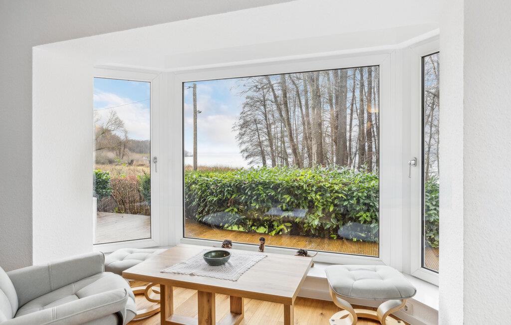 Start dagen med en frisk brise fra vandet på den rummelige træterrasse ved dette hyggelige feriehus. Det lyse og indbydende hus giver jer mulighed for at slappe af og nyde den tætte forbindelse til naturen. Den åbne opholdsstue tilbyder alt, hvad I behøver for afslappende dage: en hyggelig atmosfære, moderne faciliteter og store vinduer med udsigt til det grønne. Lad aftenen falde på i ro og mag, mens I nyder skumringen over søen.
