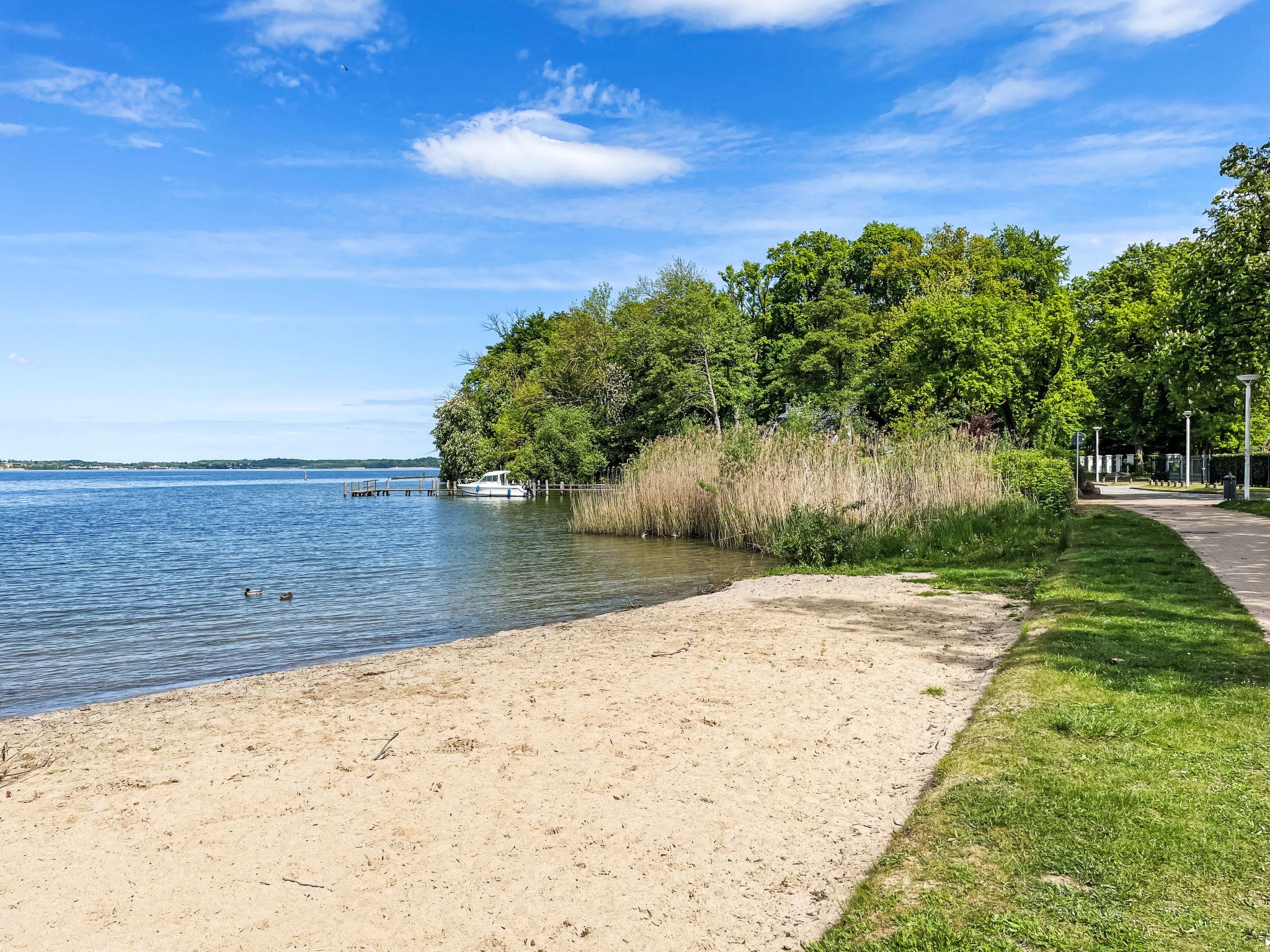 Beautiful, comfortable single-family house "Seeglück", 2 storeys, built in 1960, renovated in 2024. In the district of Zippendorf, on the outskirts, 6 km from the centre of Schwerin, in a quiet position in the residential district, 200 m from the lake, in a cul-de-sac, in the countryside. Private: property 1'800 m2, large garden with lawn and trees, lawn for sunbathing, parking at the house on the premises. Grocery 800 m, café 100 m, tram "Zippendorf Eiche" 1 km, bus stop "Plater Strasse" 950 m, sandy beach "Zippendorf" 200 m. Golf course (18 hole) 13 km, cycle lane 100 m. Nearby attractions: Schweriner Schloss 6 km, Zoo Schwerin 3 km, Schloss Willigrad 26 km, Hansestadt Wismar 48 km, Schloss Ludwigslust 38 km. The owner does not accept any youth groups.