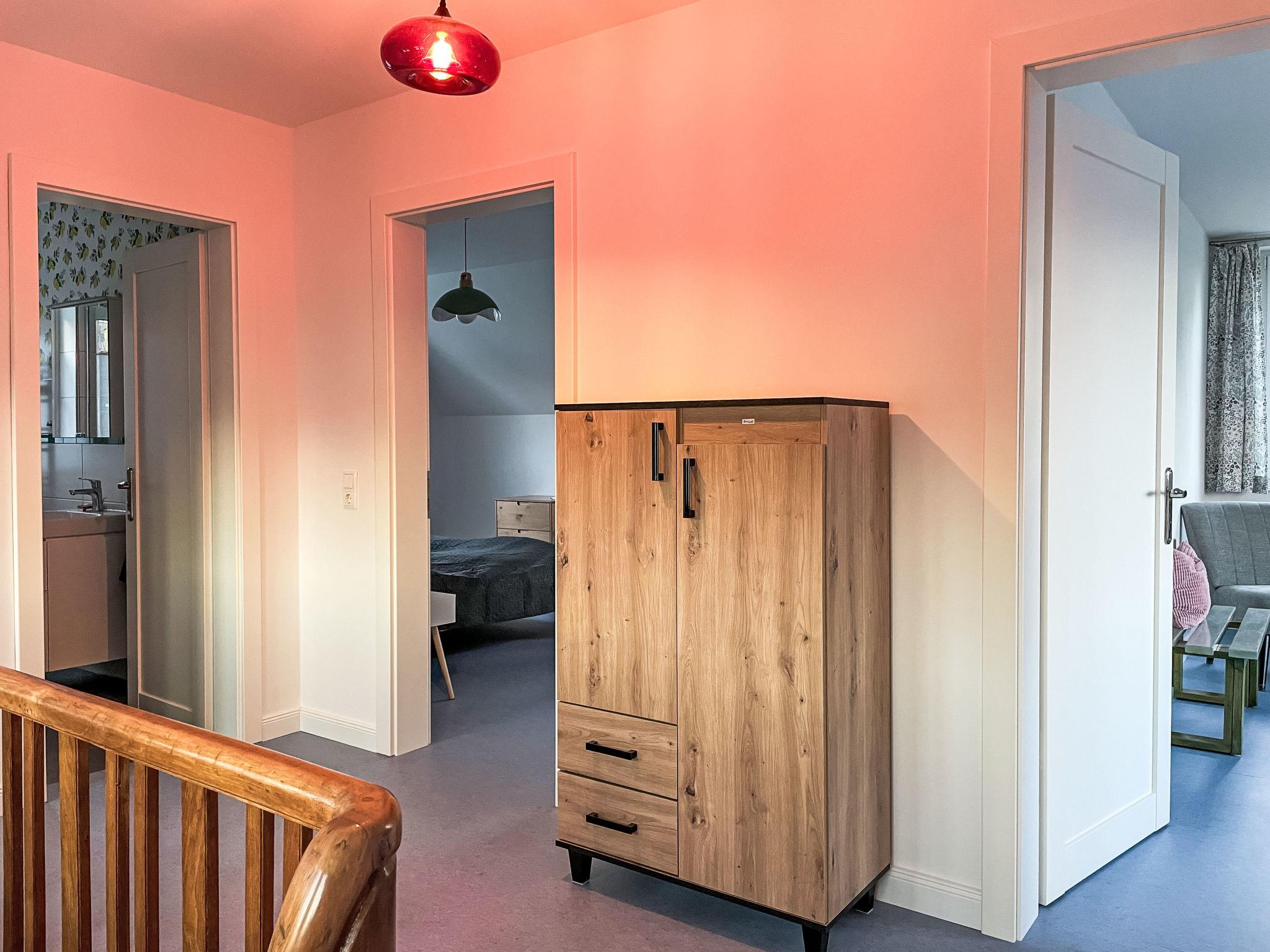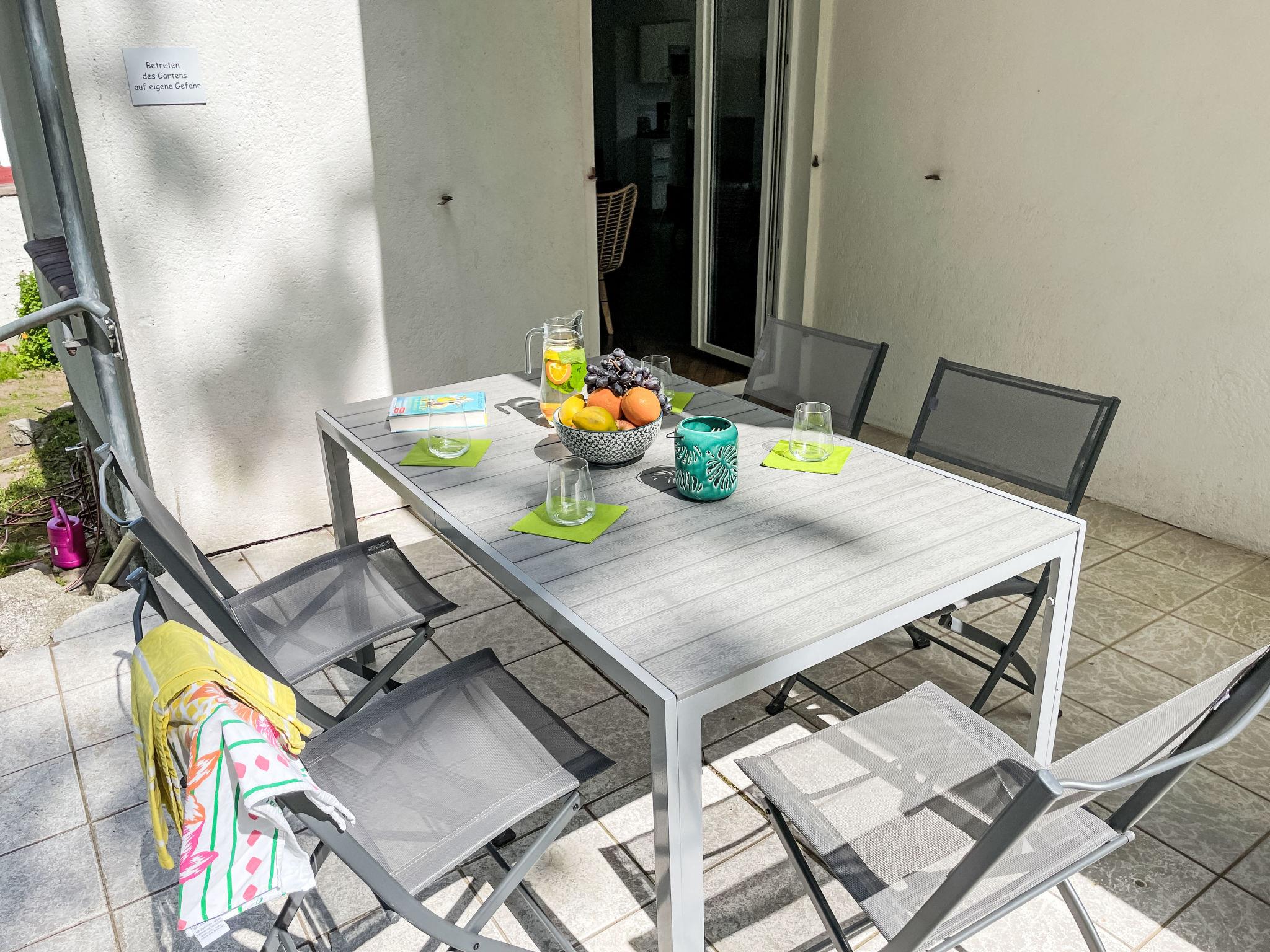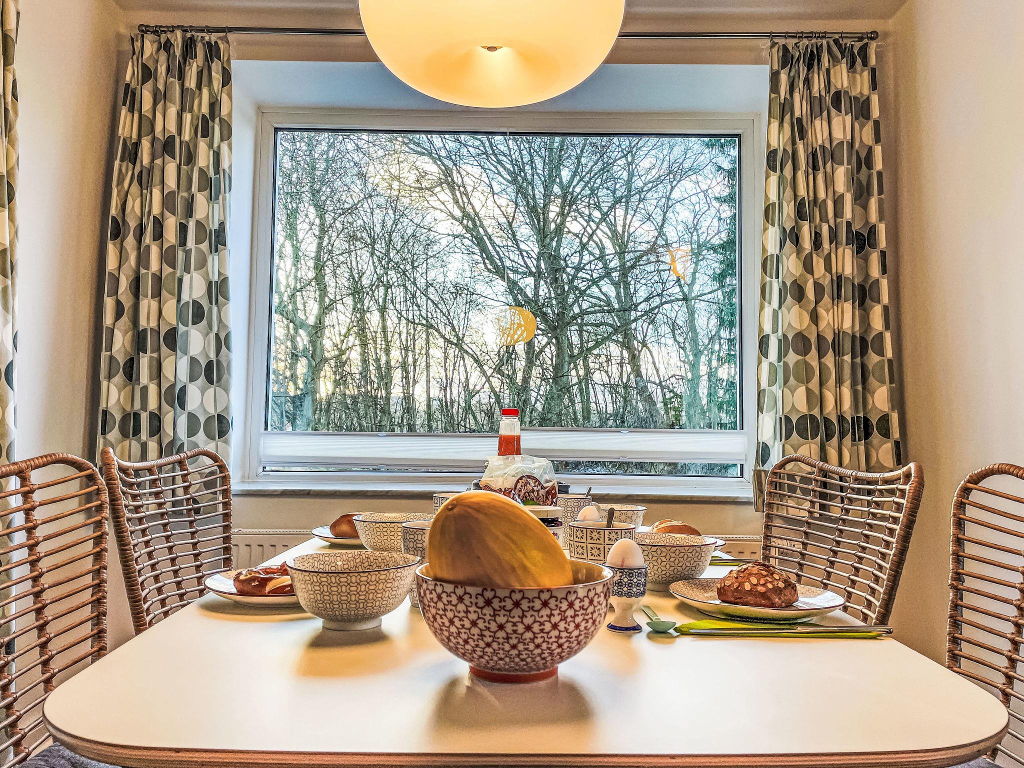 3-room house 110 m2 on 2 levels. Spacious and bright, stylish and cosy furnishings: living/dining room with dining table and satellite TV (flat screen). Exit to the terrace. Open kitchen (oven, dishwasher, 4 ceramic glass hob hotplates, toaster, kettle, microwave, electric coffee machine). Shower/WC. Upper floor: 1 room with 1 double bed (180 cm, length 200 cm). 1 room with 1 double bed (180 cm, length 200 cm), 1 folding bed (90 cm, length 200 cm). Shower/WC. Heating. Wooden floors, parquet floors. Terrace 16 m2 partly roofed. Terrace furniture. Beautiful view of the garden and the forest. Facilities: children's high chair, baby cot, hair dryer. Internet (WiFi, free). Parking (1 car) at the house. Please note: suitable for families. Non-smoking house. Smoke alarm.