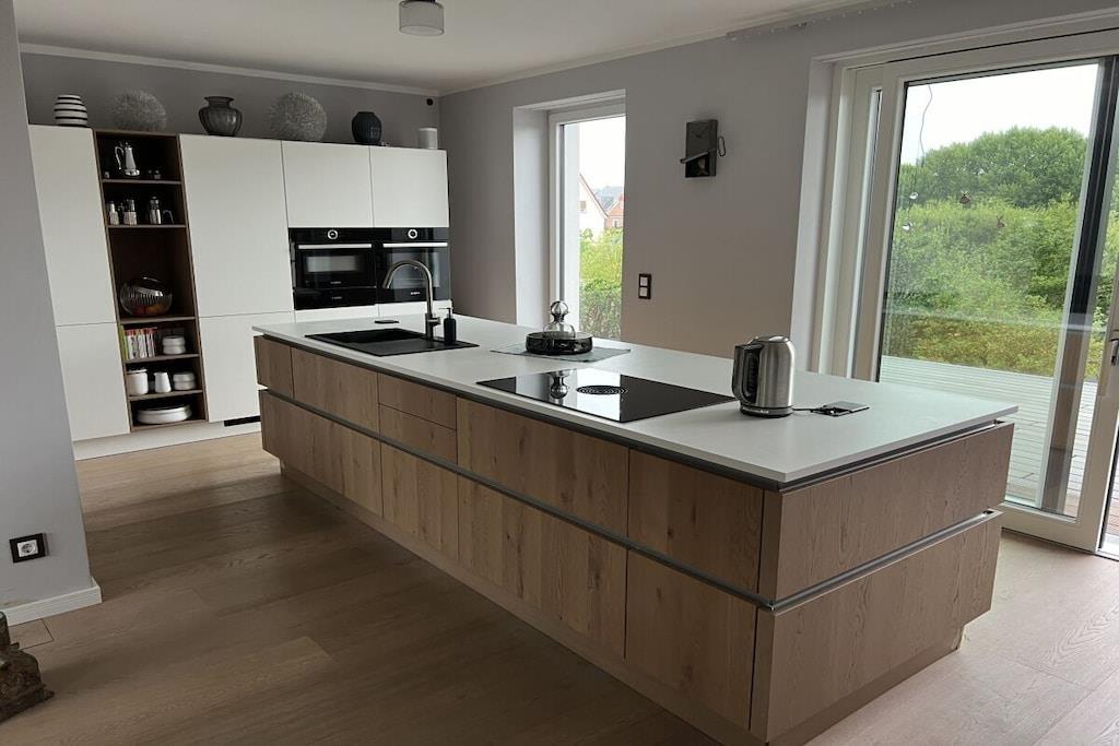 Stueetage: (åbent køkken(, kogeplade, elkedel, brødrister, komfur, kaffemaskine, ovn, mikrobølgeovn, opvaskemaskine , køleskab, ), stue / spisestue(enkeltsovesofa, Fjernsyn, spisebord, ), soveværelse(dobbeltseng, ), soveværelse(, dobbeltseng, ), badeværelse(, håndvask, toilet, )) , , , Internetadgang, varme, terrasse(havemøbler, solstole), parkering, Ladestation til el-biler
