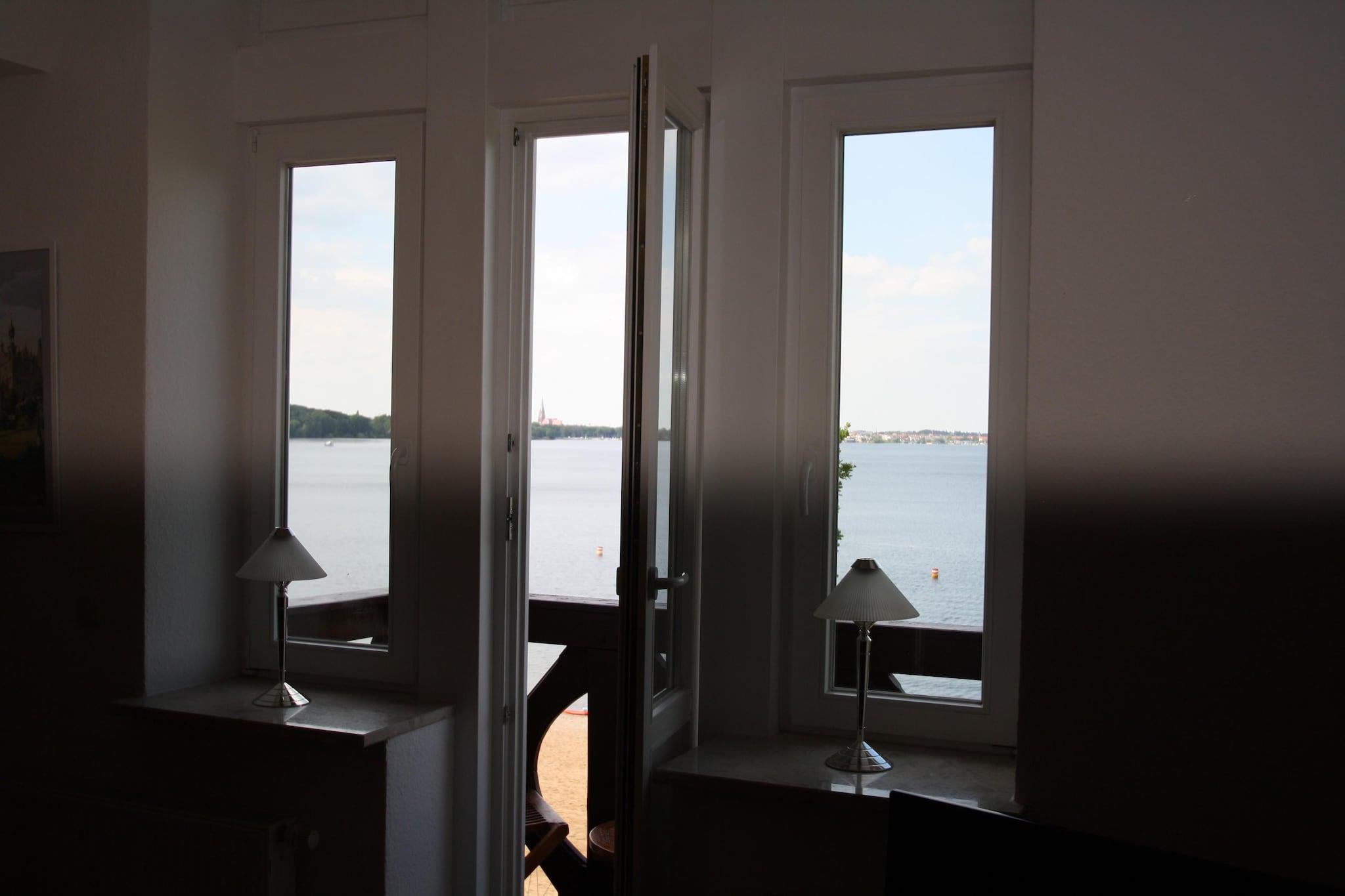 Denne ferielejlighed er smagfuldt indrettet til en høj standard og ligger på anden sal i en fredet lejlighedsbygning, direkte på byens strand i Schwerin-kvarteret Zippendorf. Din feriebolig med luksuriøs indretning, herunder gratis WiFi og to små altaner, tilbyder dig en fantastisk panoramaudsigt over Schwerins indre sø og den fine sandstrand. Lejligheden blev renoveret i 2021 og ligger uden for Schwerin i Zippendorf-kvarteret. Alle seværdigheder i delstatshovedstaden såsom Schwerin Slot, katedralen, markedet, statsteatret og alle museerne kan nås på få minutter i bil. Eller du kan købe SchwerinTicket (Schwerin-oplevelsespas) og modtage mange tjenester til nedsatte priser, du kan endda bruge den lokale transport gratis. Forskellige indkøbscentre og boulevarder inviterer dig også til at slentre i Schwerin. Detaljer: forbrugsbaserede energiomkostninger, sengelinned, håndklæder, slutrengøringTourismusgeböhrWLAN Aktiviteter i nærheden: Under din ferie i delstatens hovedstad Schwerin, kan du kombinere kultur og afslapning på en vidunderlig måde. Arkitektoniske højdepunkter venter i byen, såsom Schwerin Slot, hvortil en smuk cykelsti fører, den gamle bydel med gyder og bindingsværkshuse, forskellige museer, haver og parker. Derudover bør du udforske Schweriner-landskabet på cykel, opdage vandrestierne uden for byportene eller endda padle i kano eller kajak Ikke egnet til personer med nedsat mobilitet